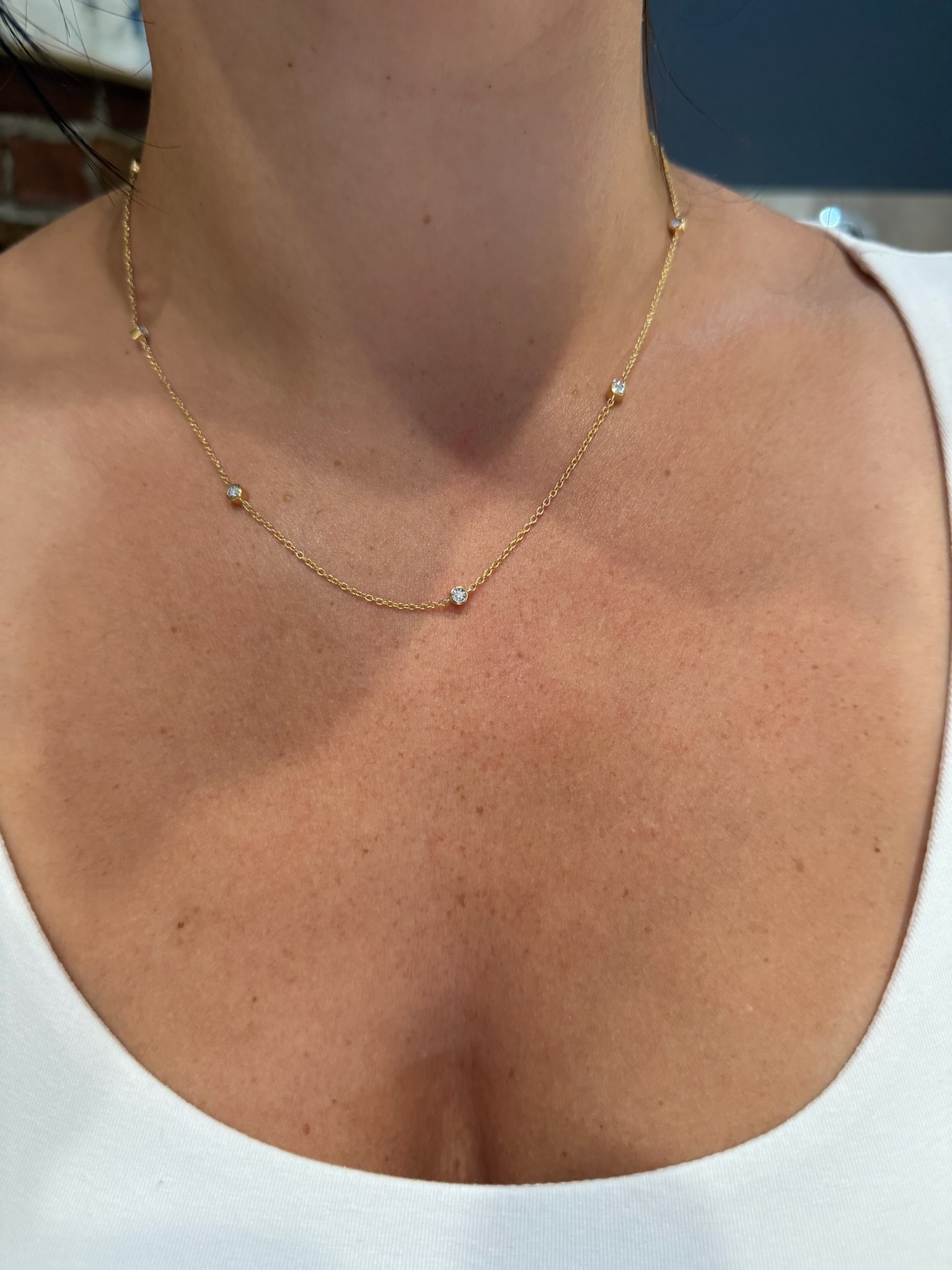 18" 14KY GOLD 1/4CTTW DOUBLE-SIDED ILLUSION BEZEL DIAMOND-BY-THE-YARD NECKLACE