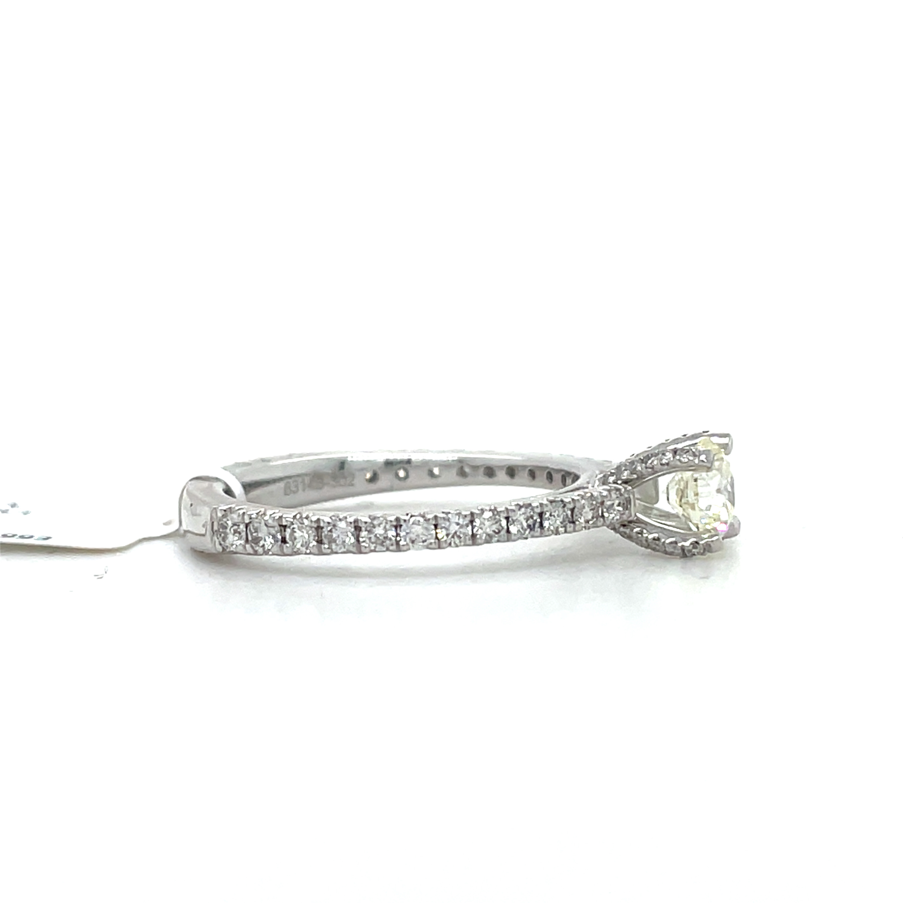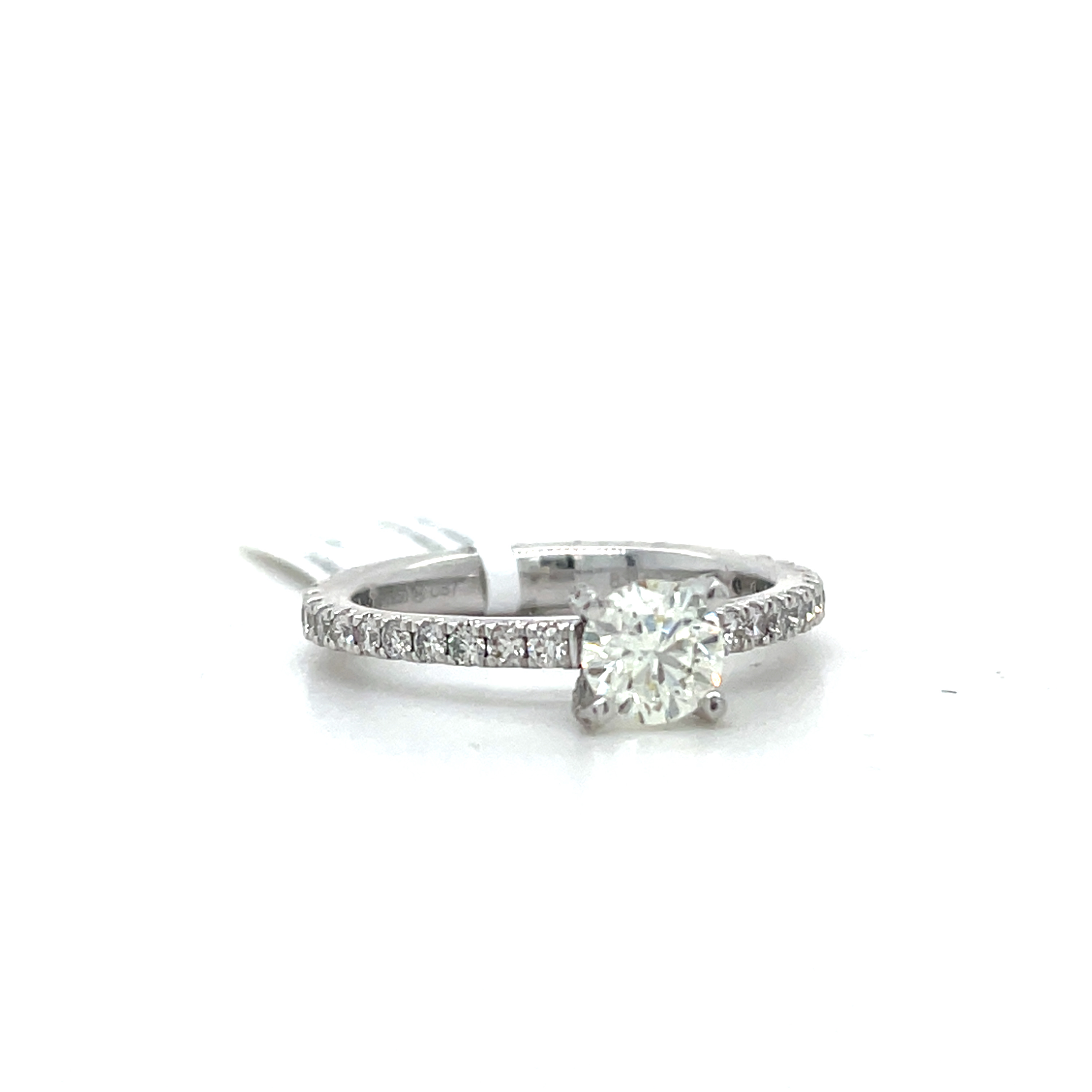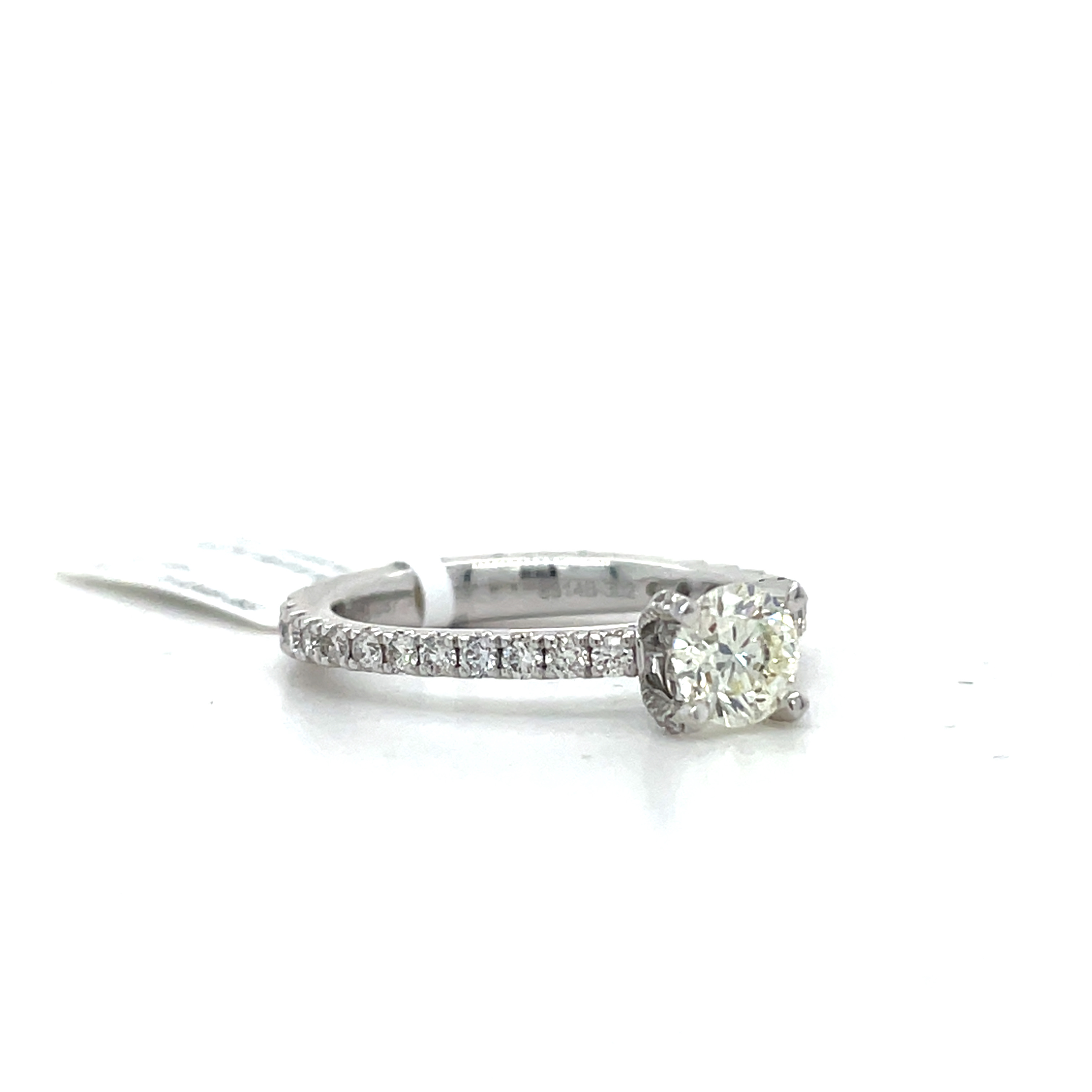 PLATINUM DIAMOND SOLITAIRE ENGAGEMENT RING FEATURING DIAMOND ACCENTED HEAD & SHANK