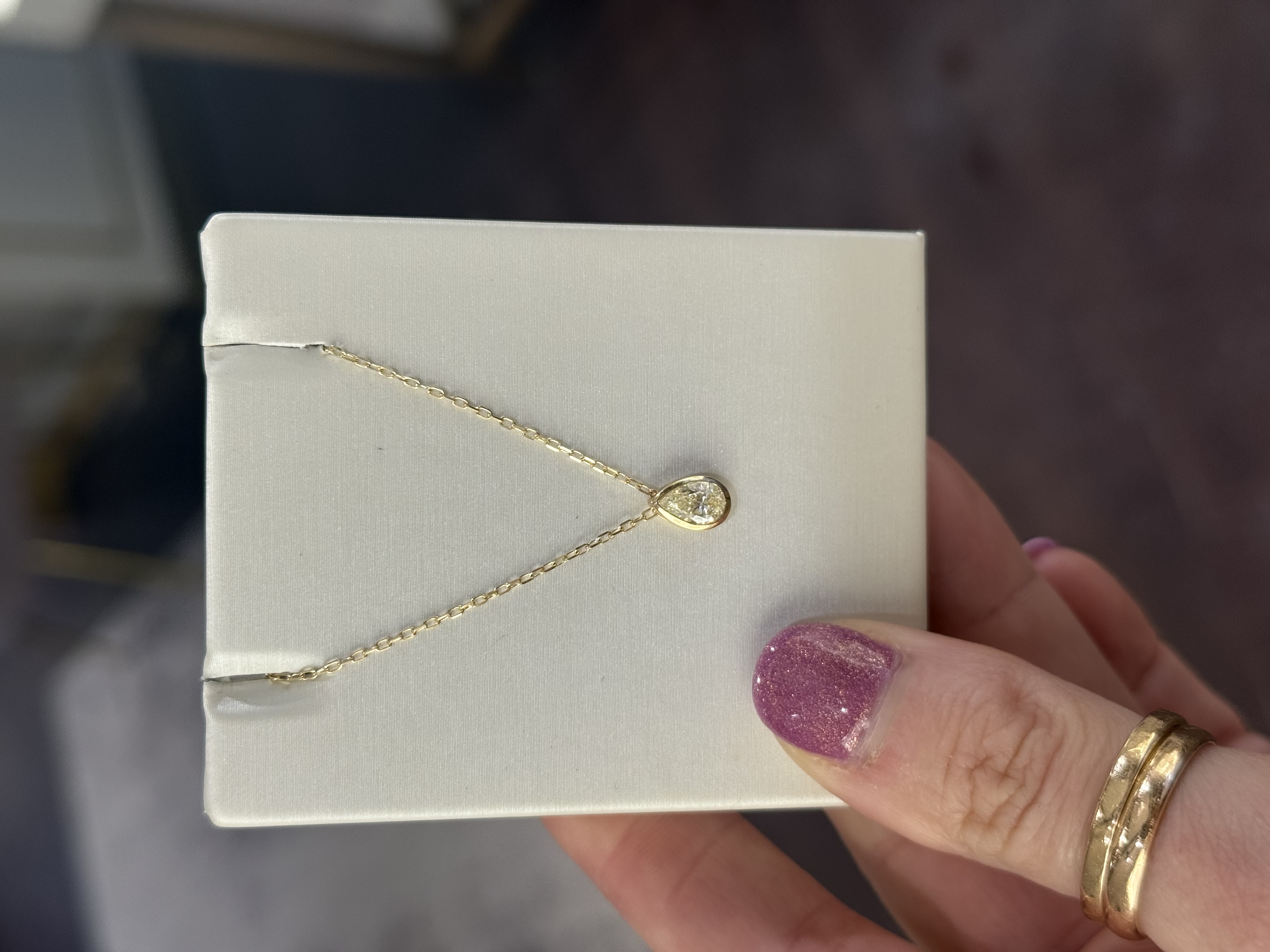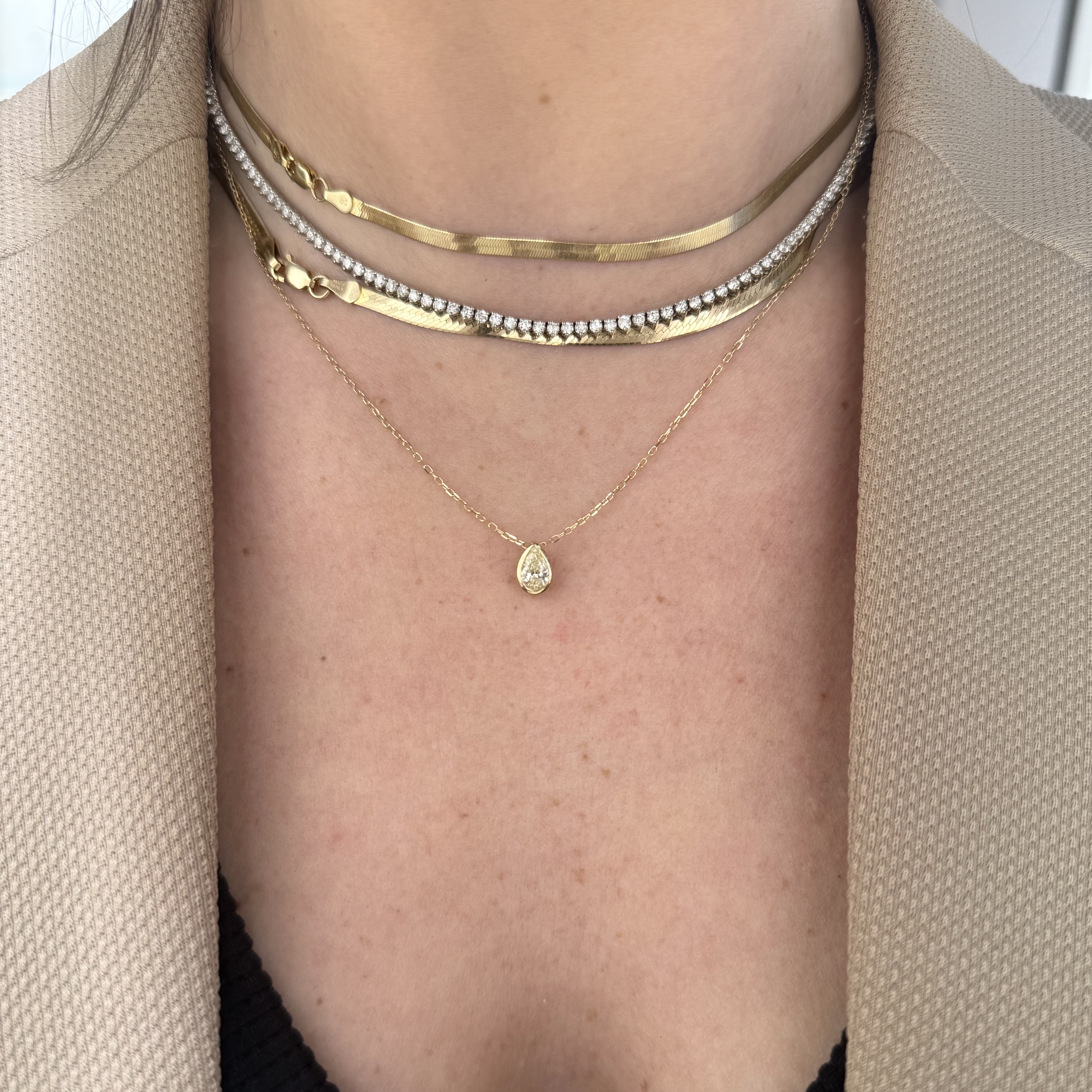 14KY GOLD BEZEL-SET PEAR SHAPED LIGHT YELLOW DIAMOND SLIDE PENDANT
