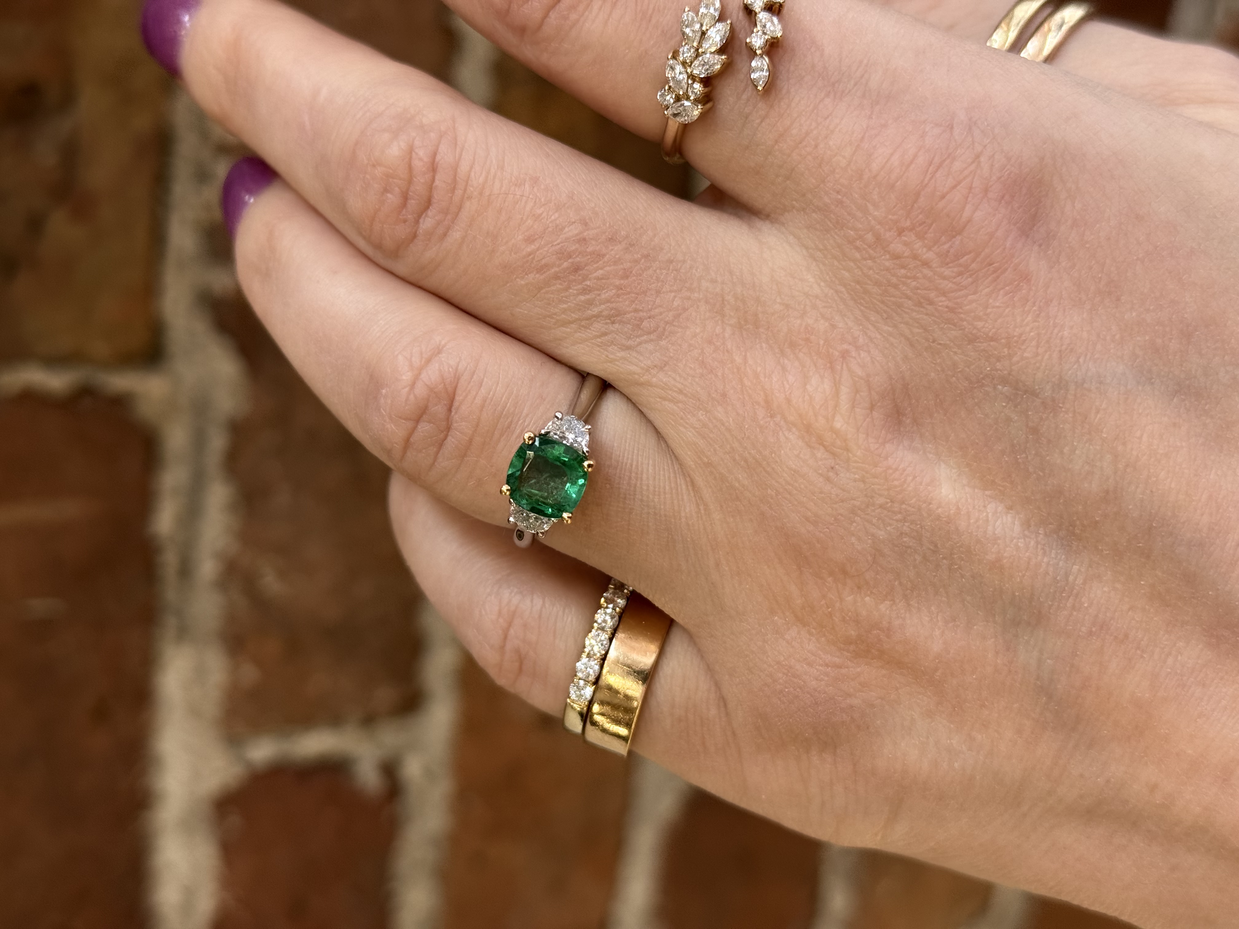 1=1.35CT CUSHION CUT EMERALD, PRONG SET IN 18KY GOLD AT CENTER