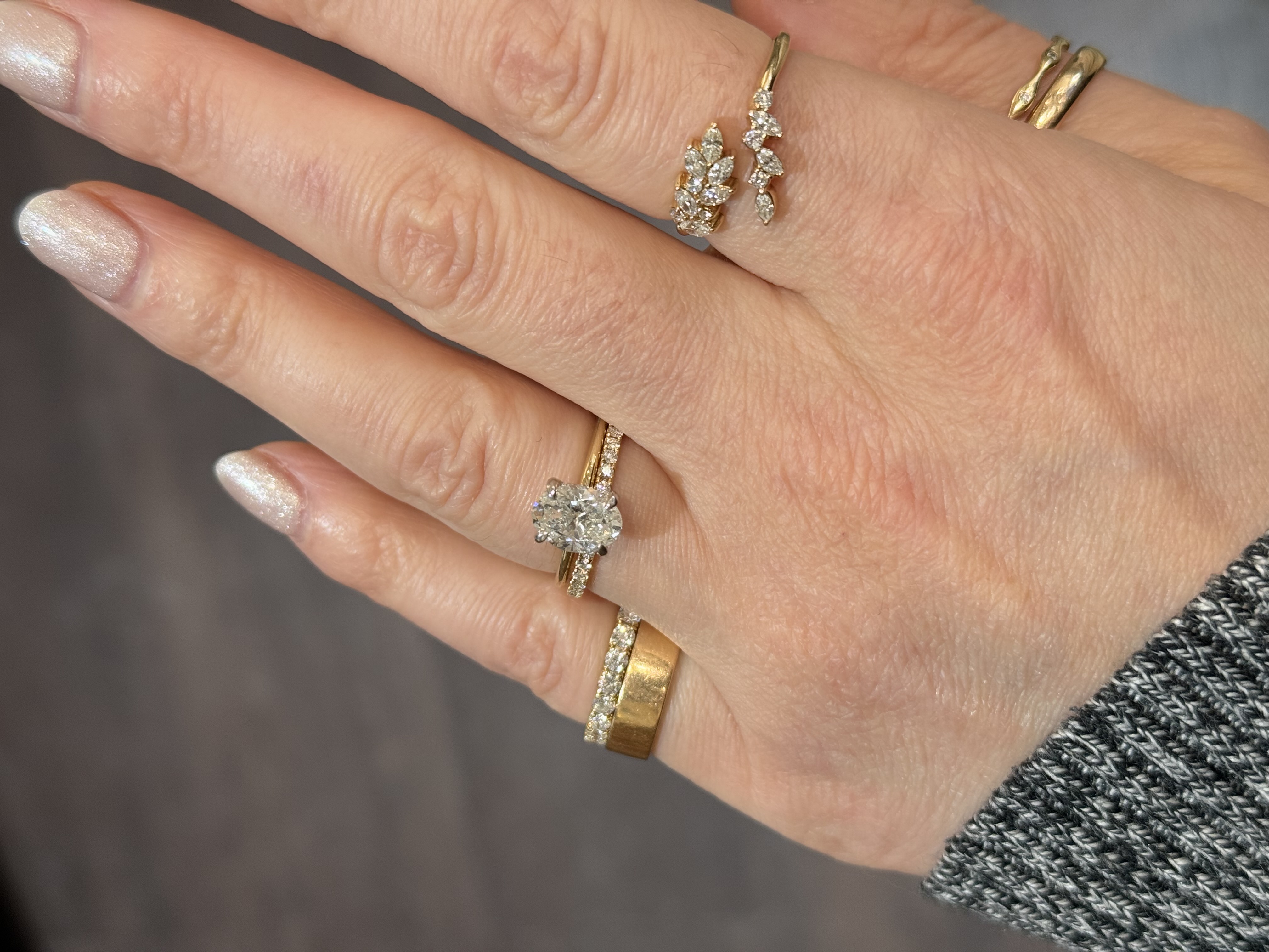 Description 14k gold half round diamond ring .33cttw g-h, si finger size 6 3/4 Details: Diamonds: QTY 21 Available in expanded finger sizes, gold tones, 18k or 14k, and platinum.