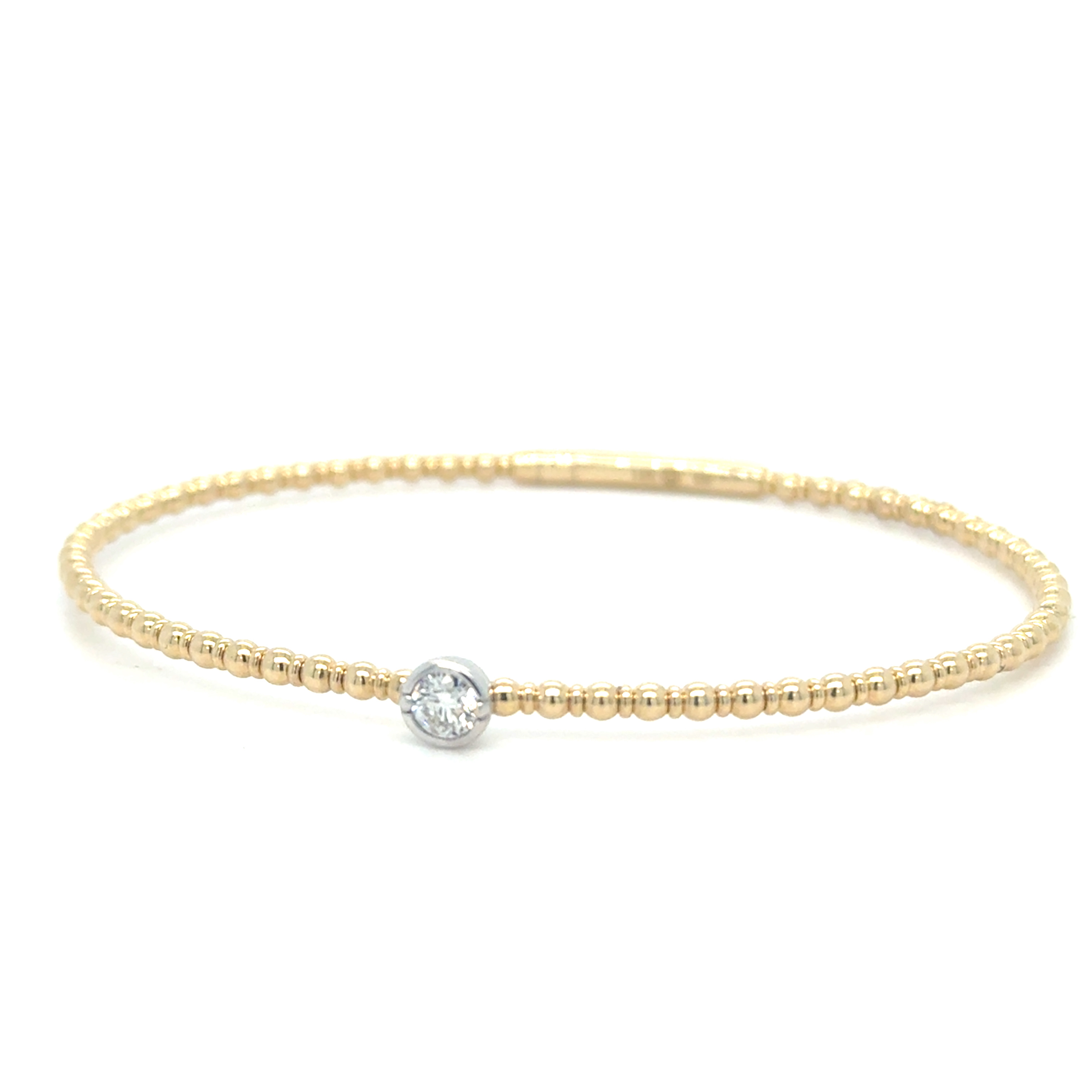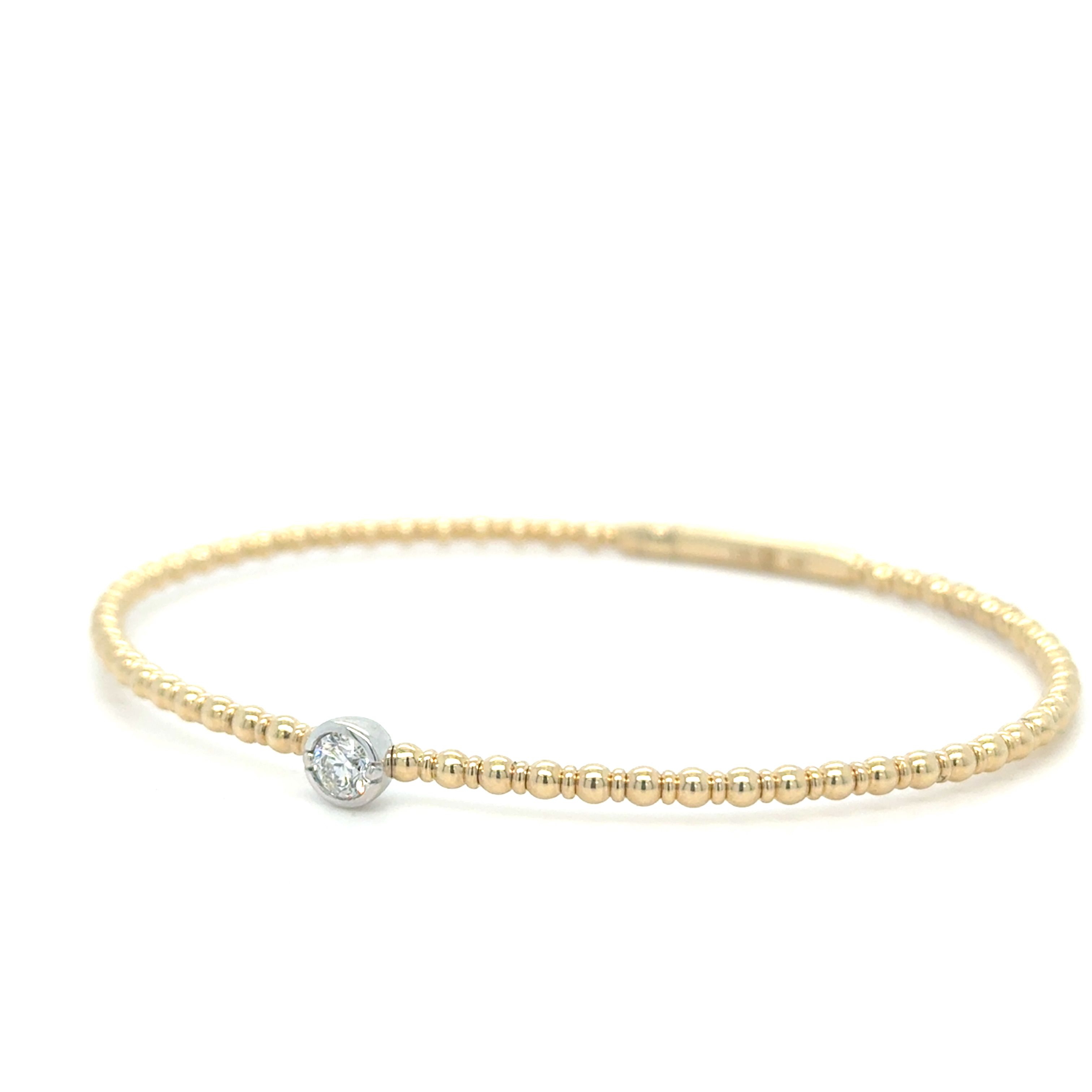 14KY&W GOLD FLEXIBLE BEADED BANGLE BRACELET WITH BEZEL-SET DIAMOND STATION