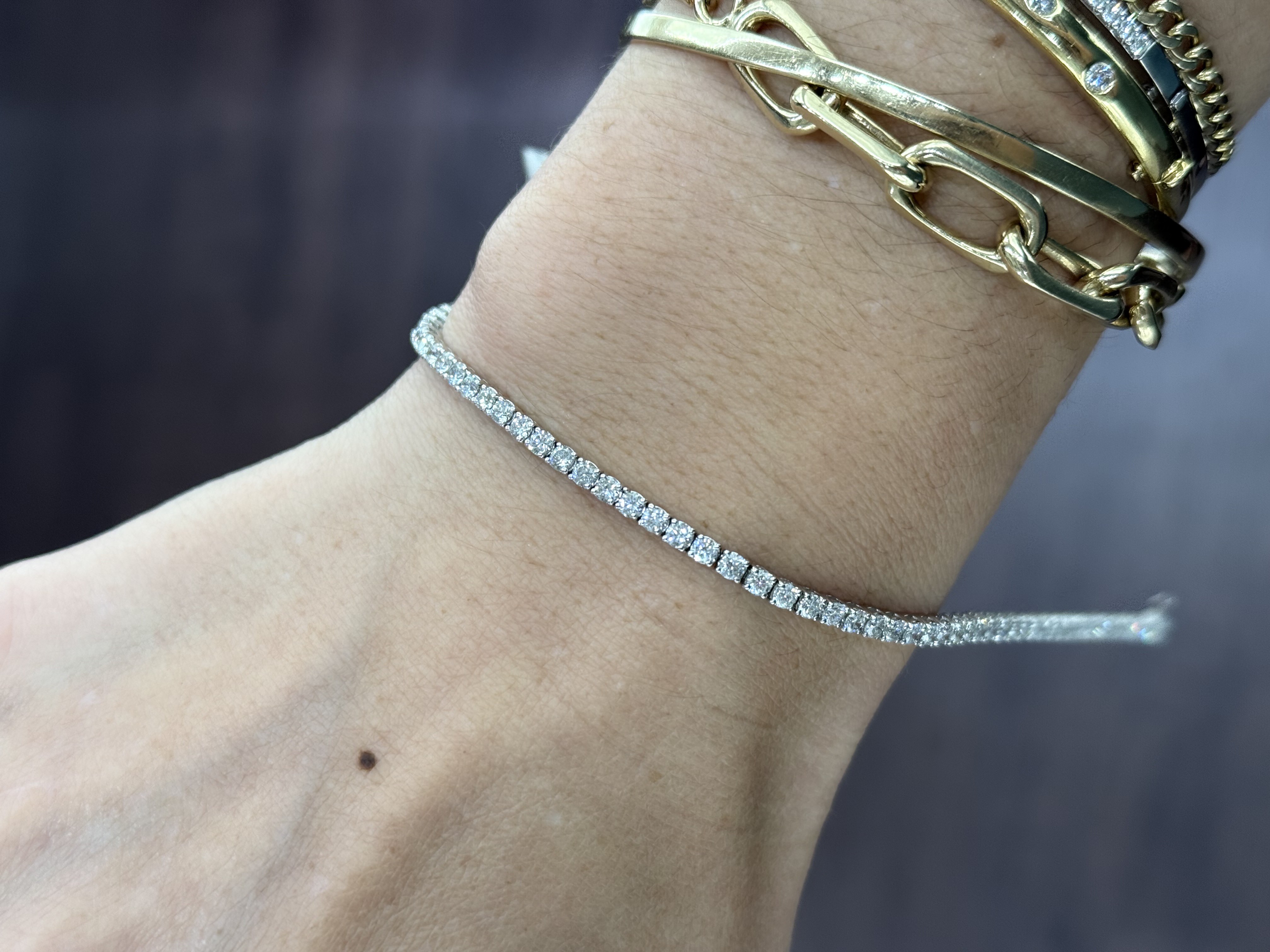 Description 7" 14kw gold diamond tennis bracelet with hidden box & safety clasp 14k solid gold Natural Earth-mined Diamonds Near colorless, eye clean diamonds *Jewelry over 40% off is Final Sale