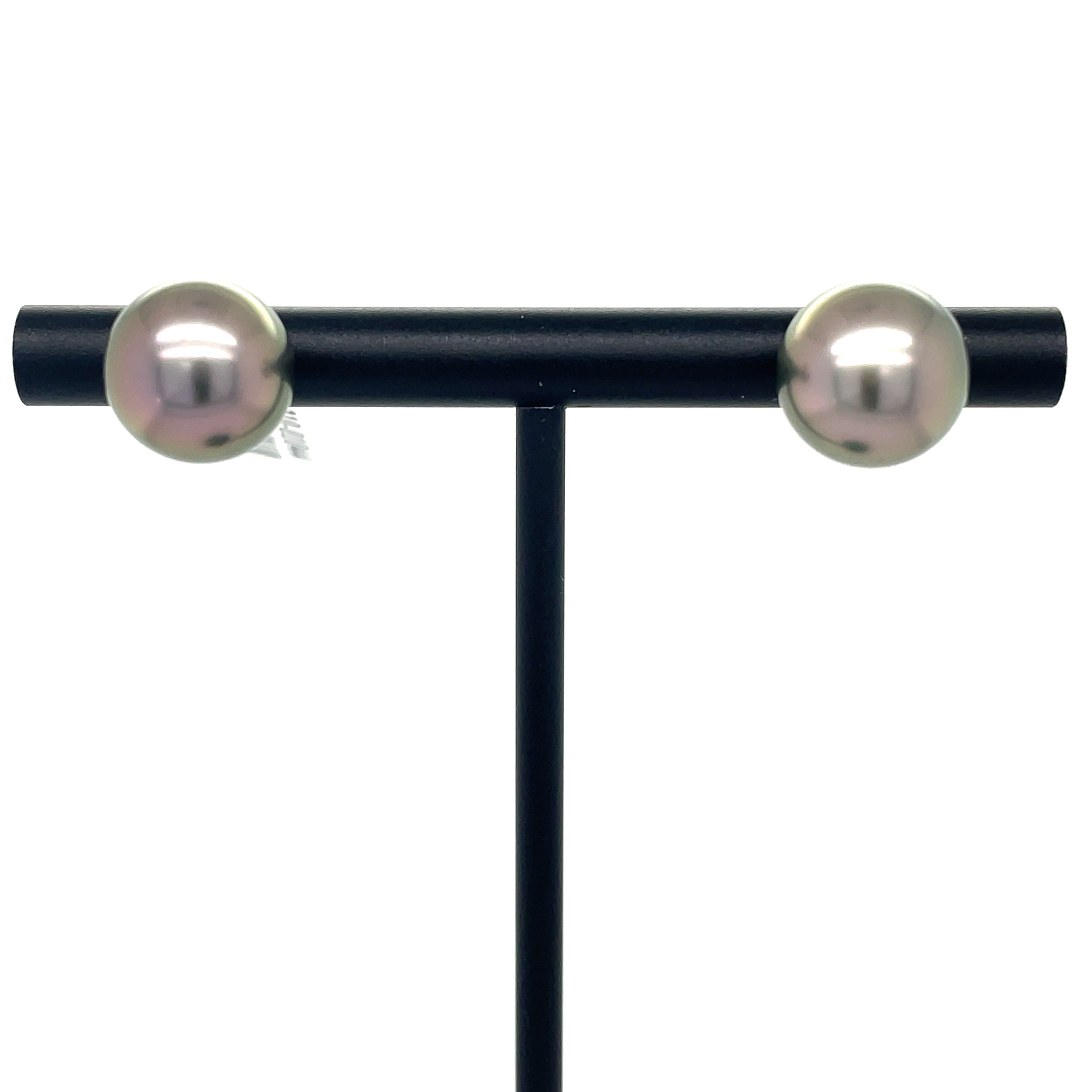 Description 14KW GOLD 10MM BLACK TAHITIAN PEARL STUD EARRINGS 14KT WHITE GOLD- 585, HIGH POLISH2= 10MM BLACK TAHITIAN PEARLS, EPOXIEDDOUBLE NOTCH POST WITH FRICTION BACKS *all earrings are on-of-a-kind, exact shade may vary