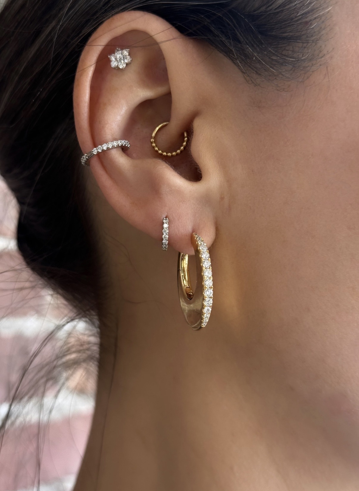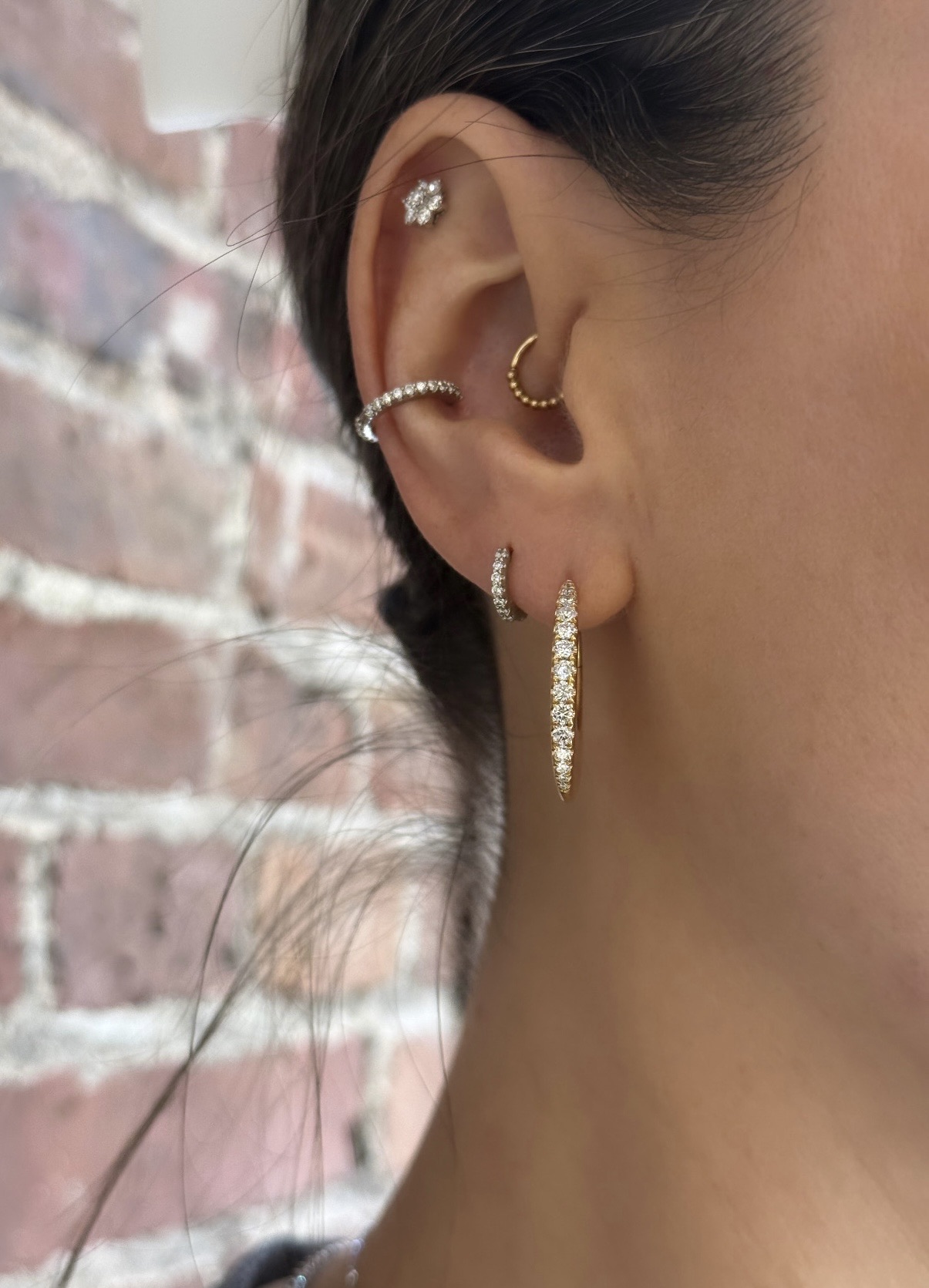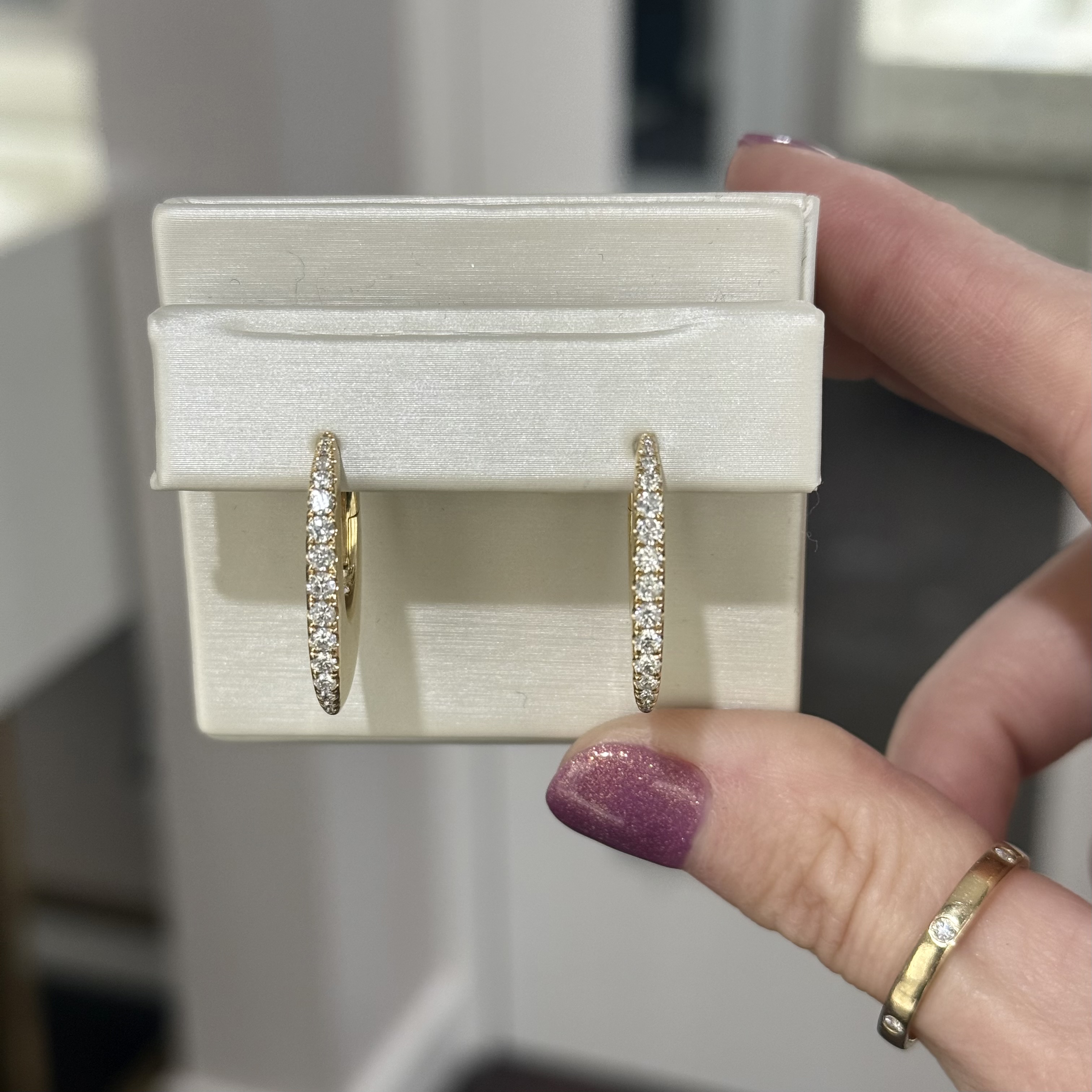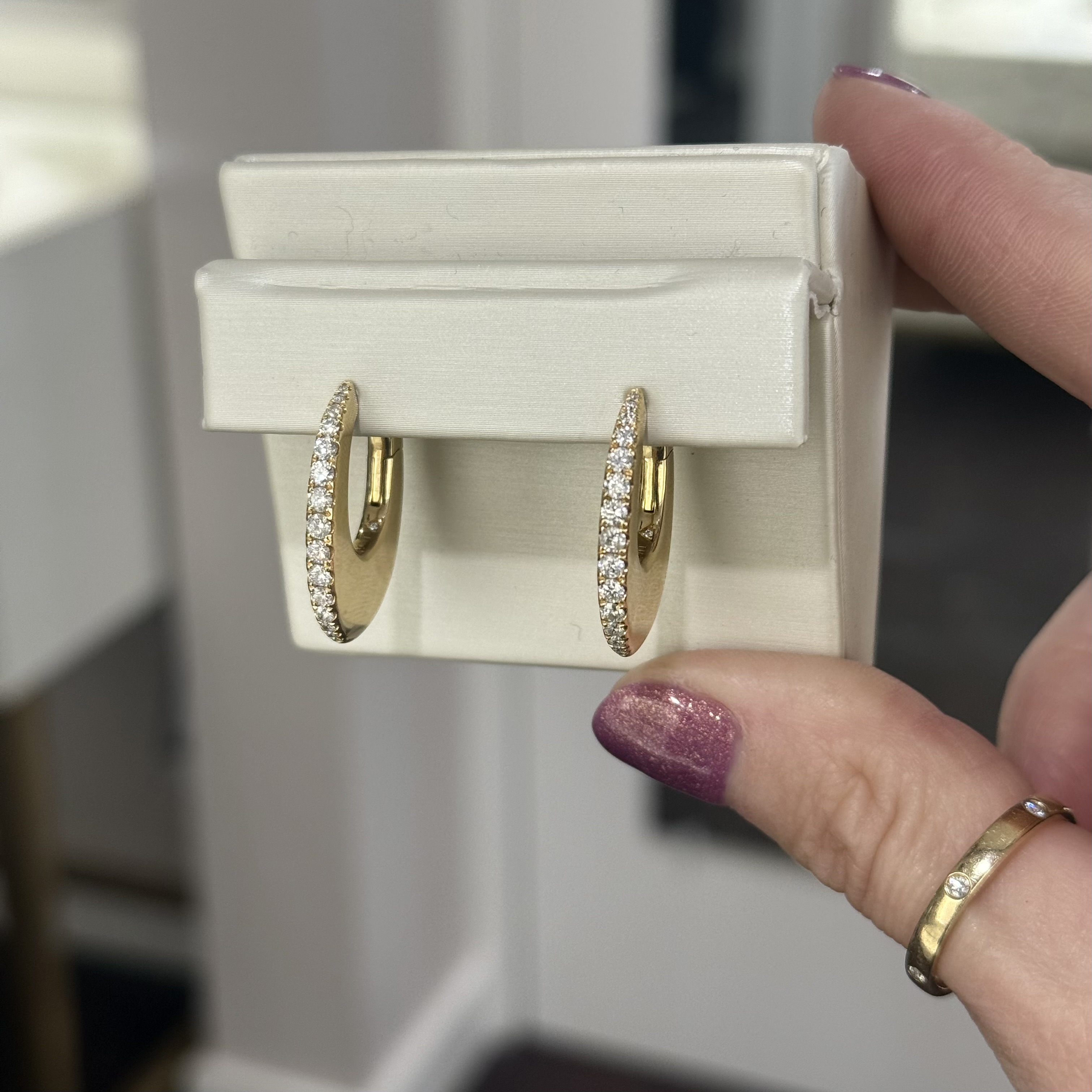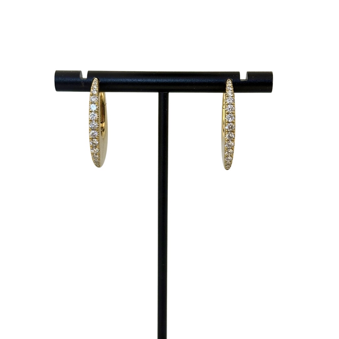 18KY GOLD DIAMOND ELONGATED FLAT HOOP EARRINGS