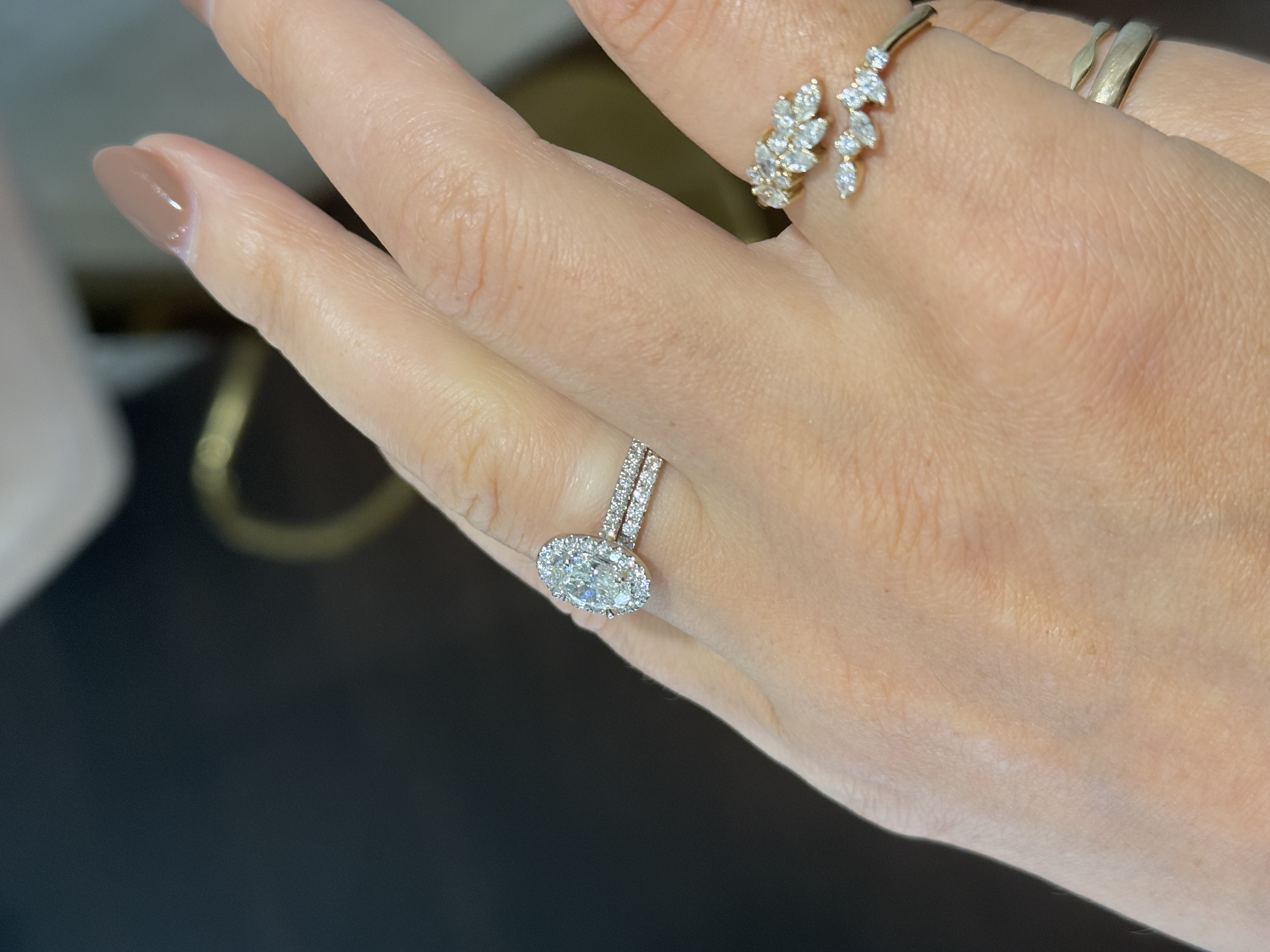 PLATINUM MARTIN FLYER FLYERFIT® ENGAGEMENT RING WITH 1.00CT OVAL BRILLIANT DIAMOND I, SI1 ACCENTED WITH DIAMOND HALO AND SHANK
