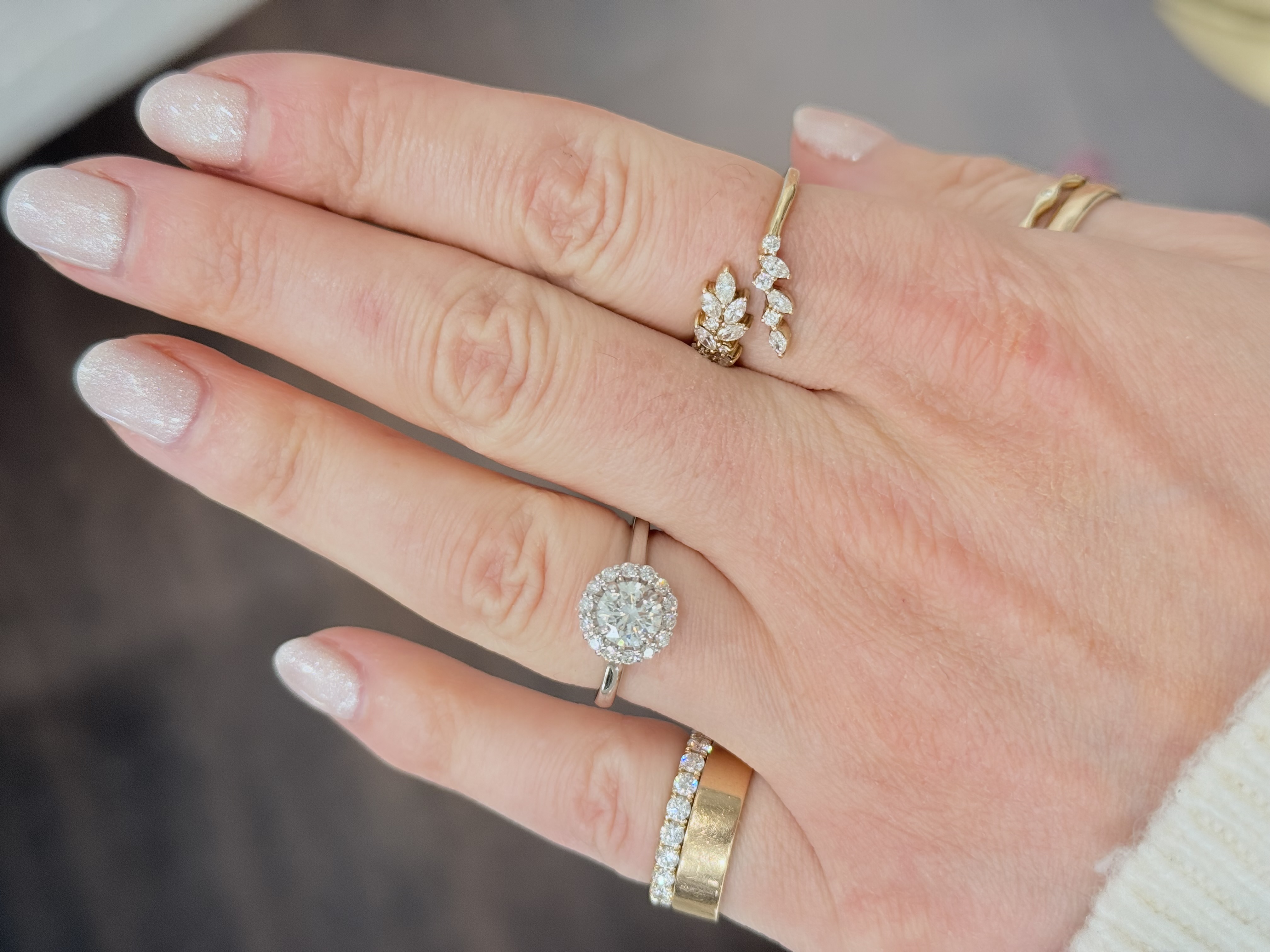 14=.25CTTW ROUND FULL CUT DIAMONDS G-H COLOR, SI2-3 CLARITY, PRONG SET IN HALO