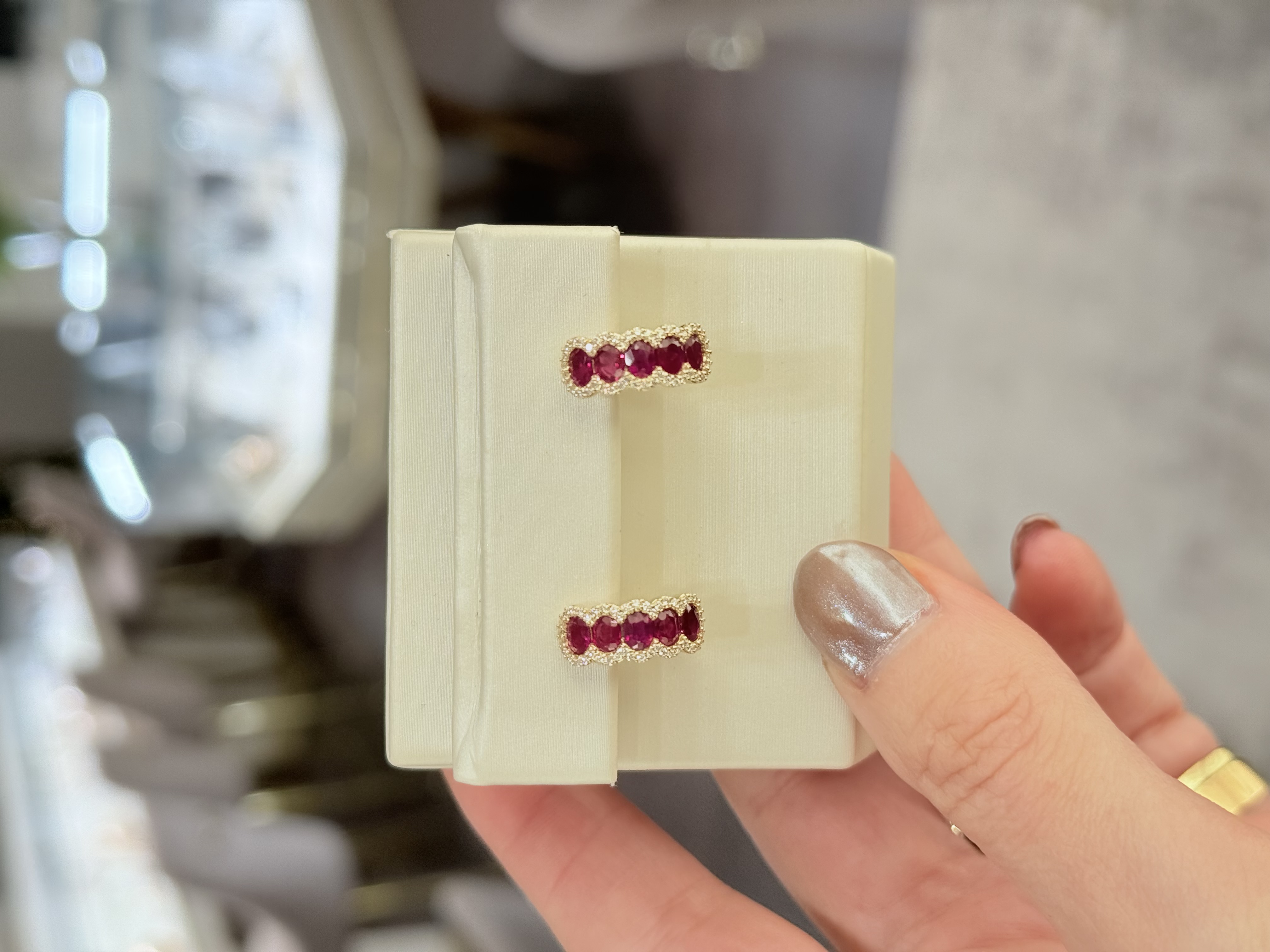 14KY GOLD RUBY & DIAMOND ACCENTED HOOP EARRINGS