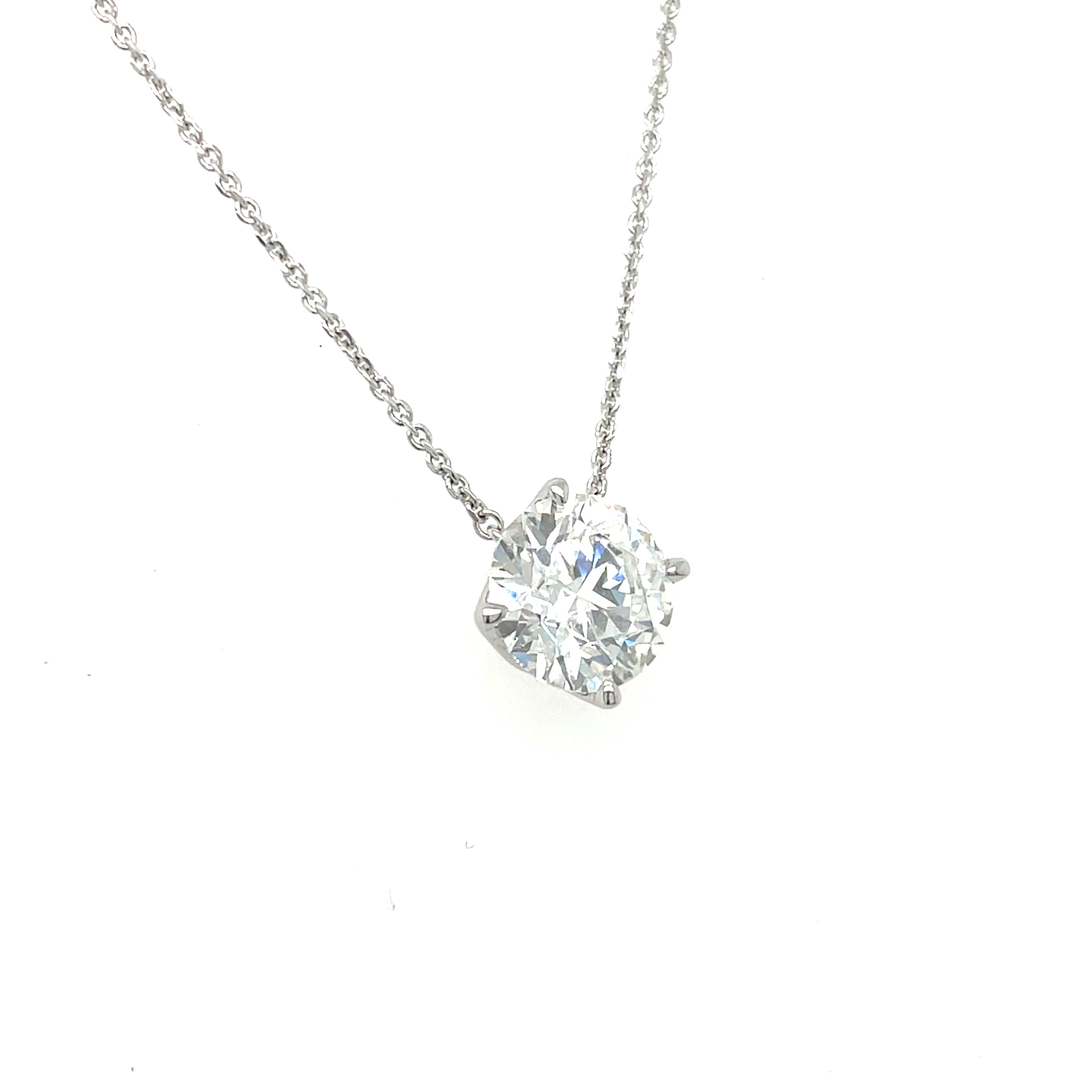 18KW GOLD 2CT LAB GROWN DIAMOND SOLITAIRE PENDANT ON 16-18" CABLE CHAIN