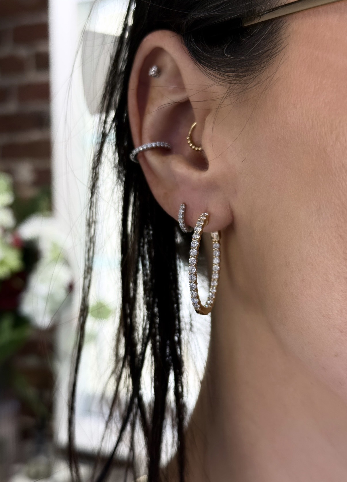 18KY GOLD OVAL 2CTTW INSIDE-OUT DIAMOND HOOP EARRINGS