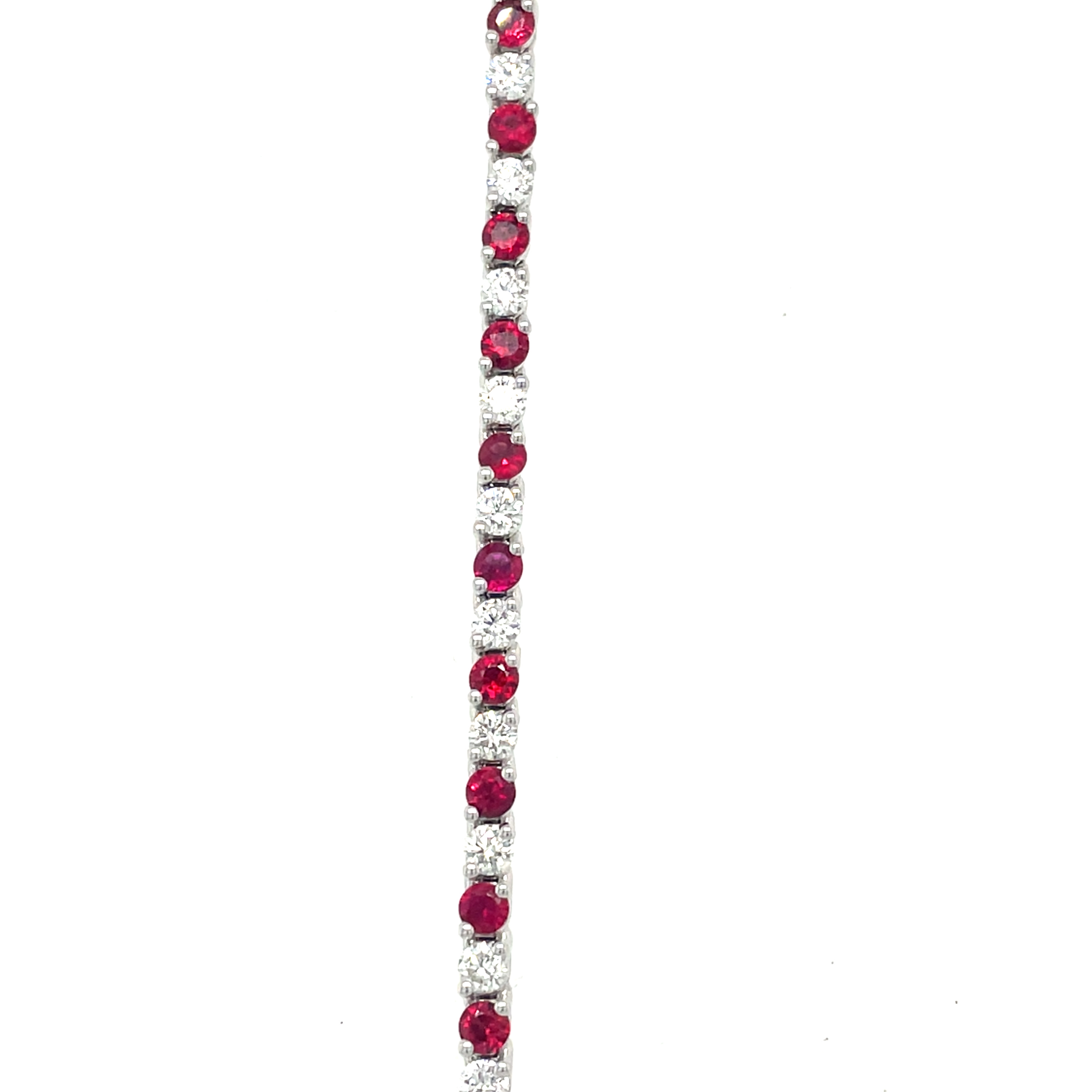 6 3/4" 14KW GOLD 3.27TGW RUBY AND DIAMOND TENNIS BRACELET WITH SAFETY CLASP