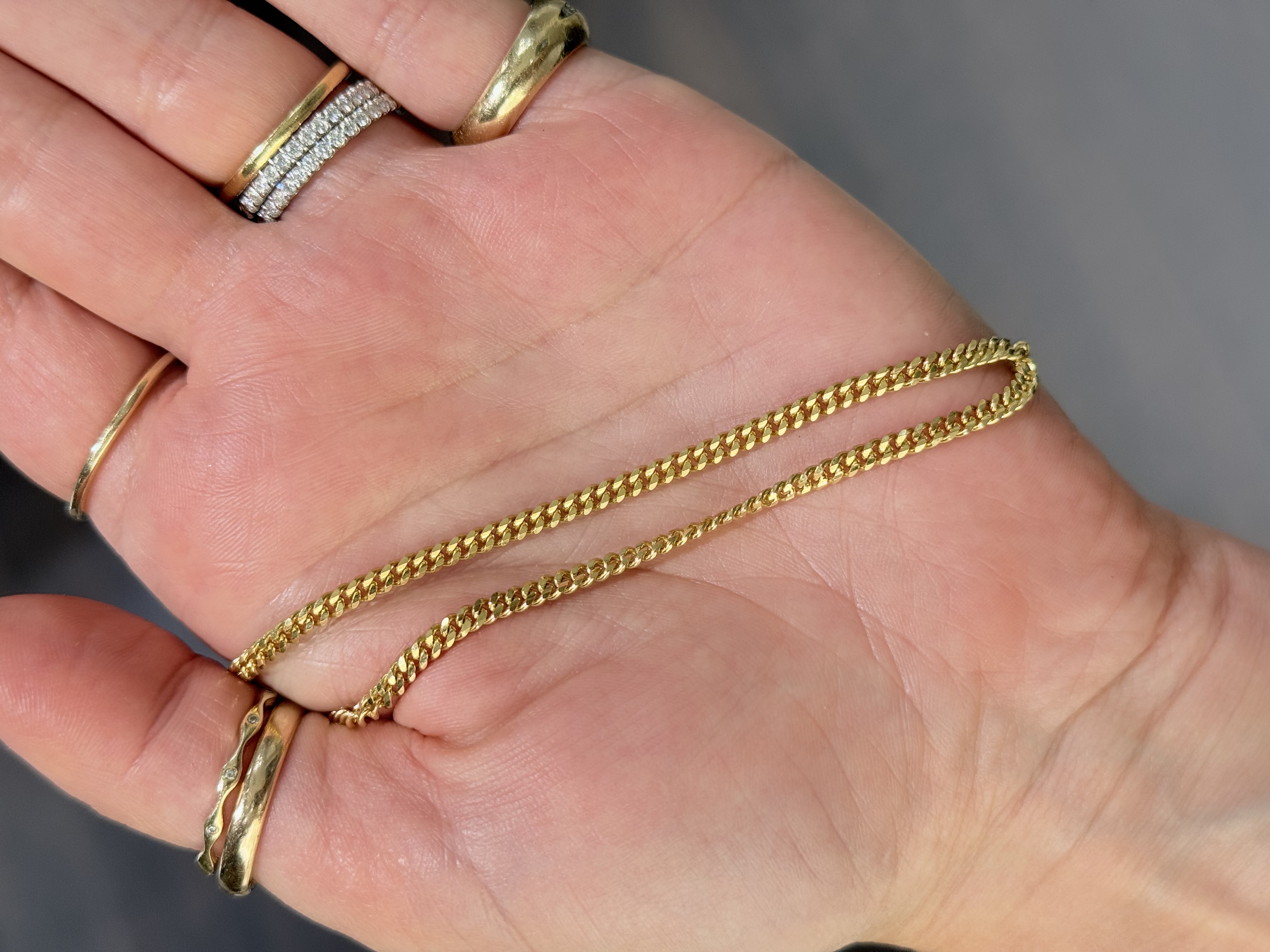 The gourmette chain, with its distinctive flat and closely interlocking links, draws inspiration from ancient Roman jewelry, where chains symbolized strength and unity. This particular piece echoes the elegance of those times, capturing the essence of opulence and timeless style. The chain’s design is also inspired by the smooth, flowing lines of classic European architecture, reminiscent of the intricate ironwork found in historic cities like Paris and Florence.