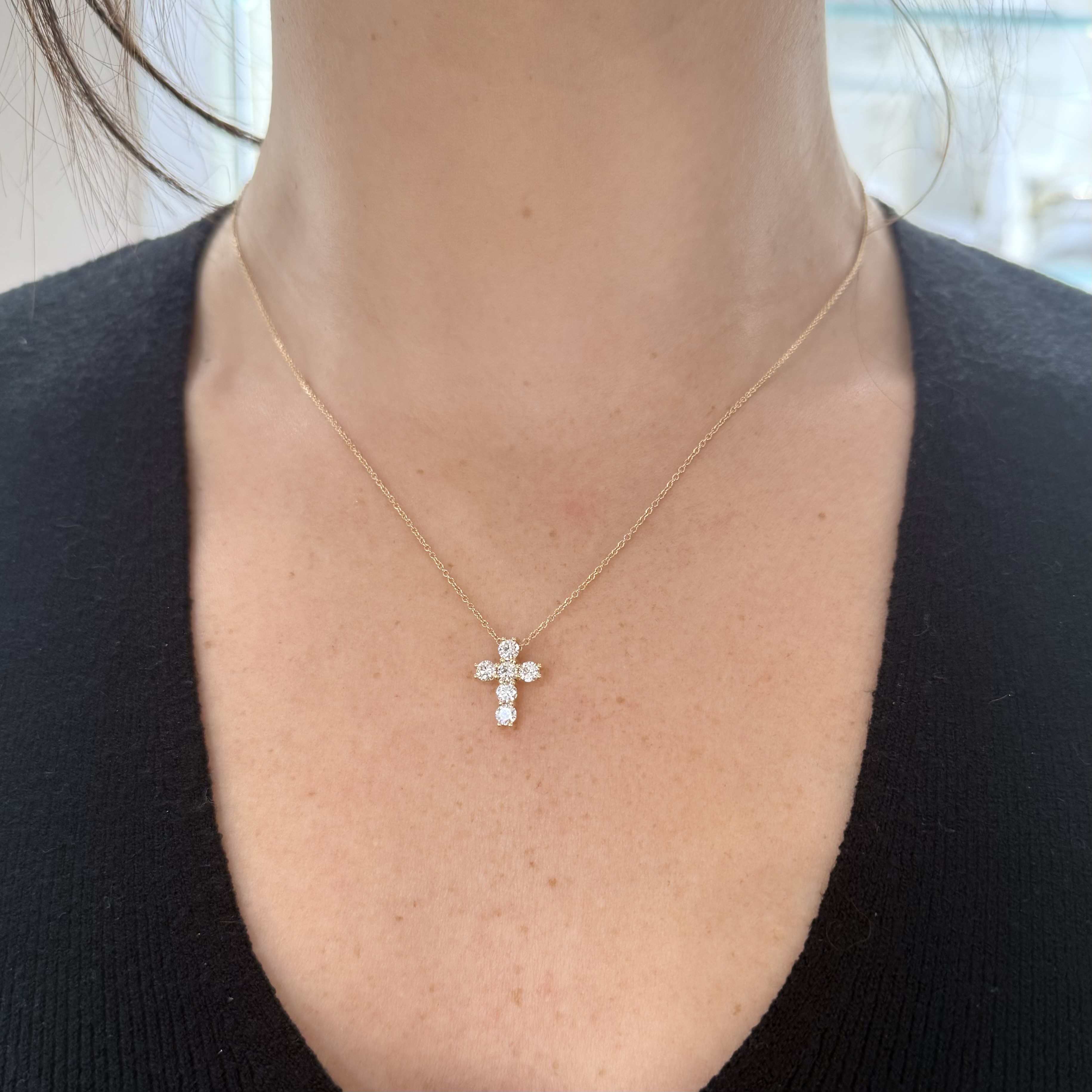 14KY GOLD LAB-GROWN 3/4CTTW DIAMOND CROSS PENDANT ON CABLE CHAIN