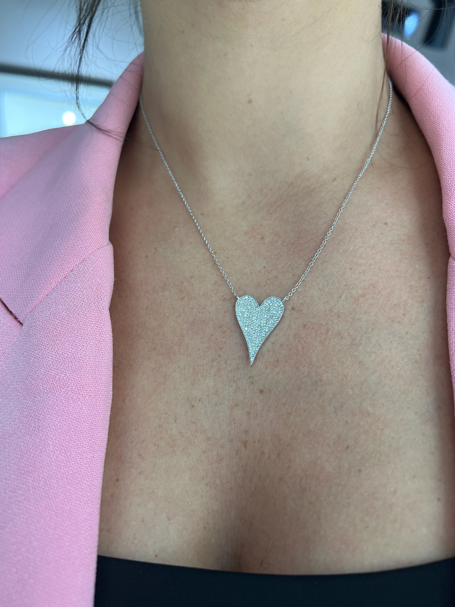 14KW GOLD PAVE 3/4CTTW DIAMOND HEART PENDANT ON ADJUSTABLE 16-18" 14KW GOLD CABLE CHAIN