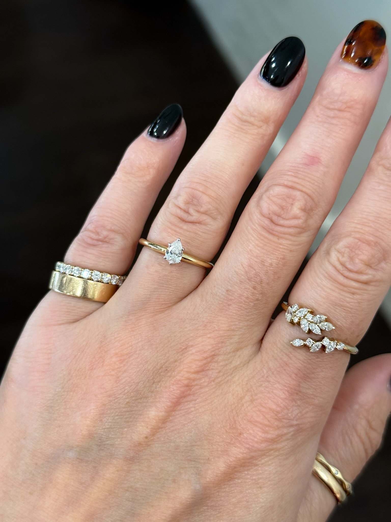 1=.39CT PEAR SHAPE DIAMOND E COLOR, SI-1 CLARITY, PRONG SET IN 14KW GOLD