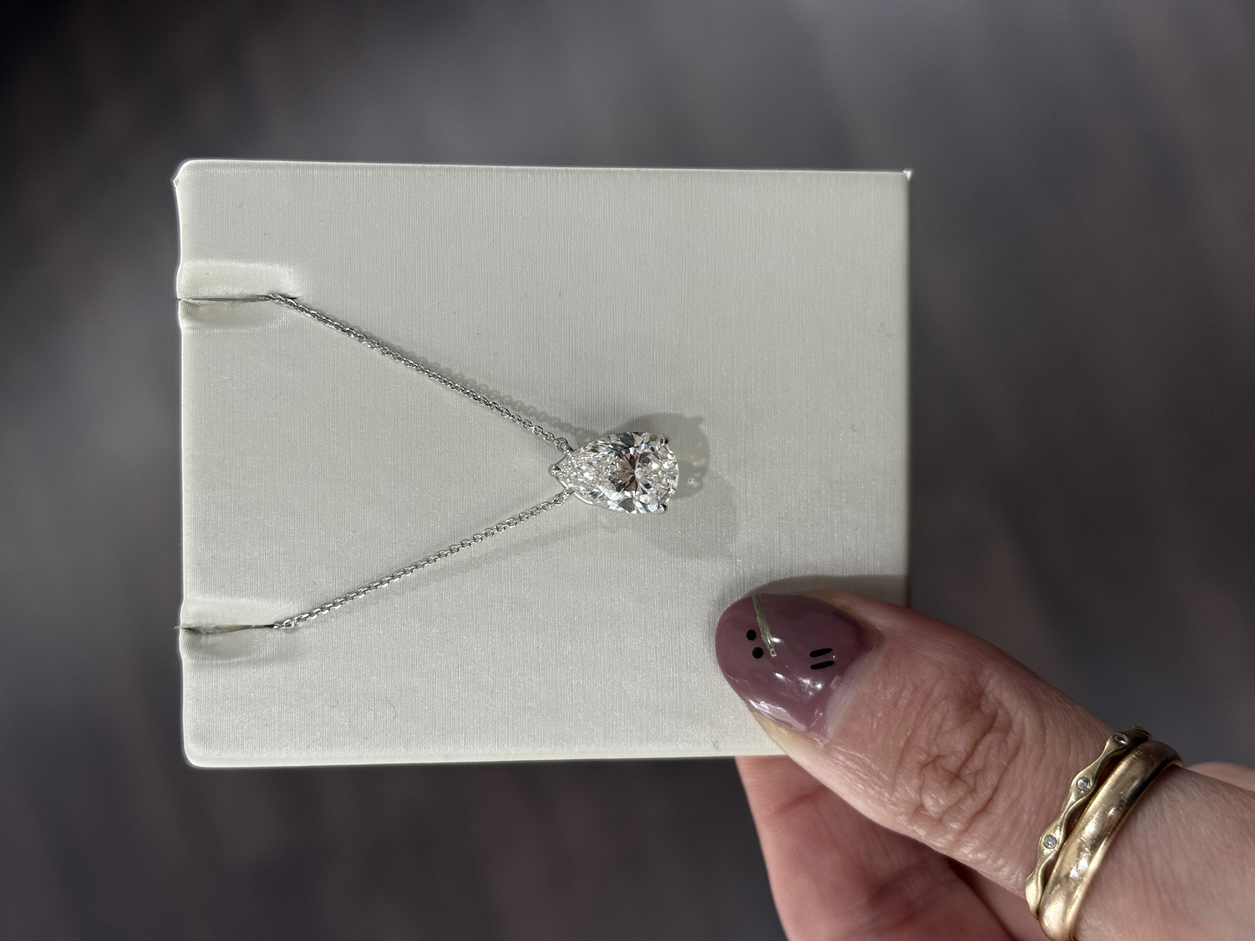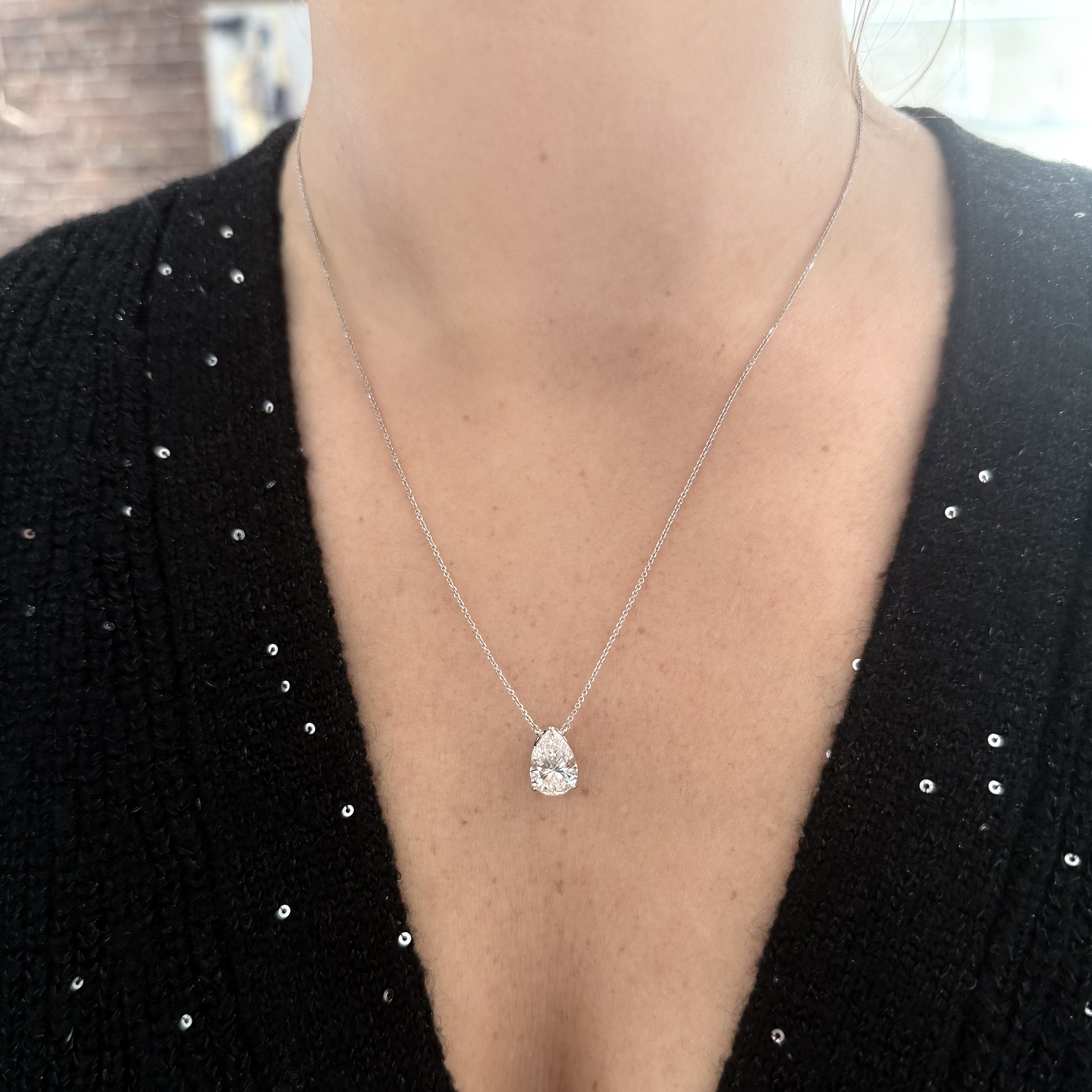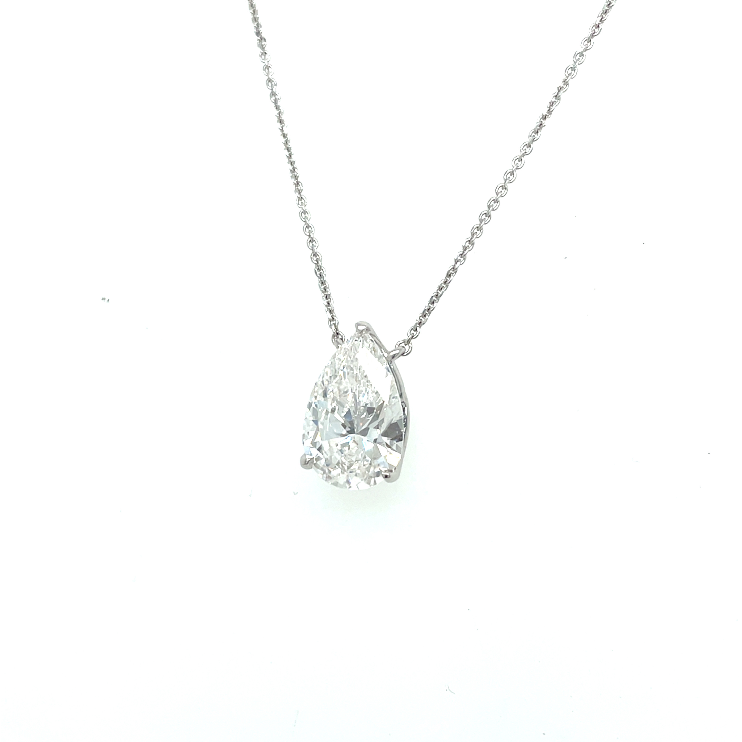 18KW GOLD 3CT PEAR SHAPED LAB GROWN DIAMOND SOLITAIRE PENDANT ON 16-18" CABLE CHAIN