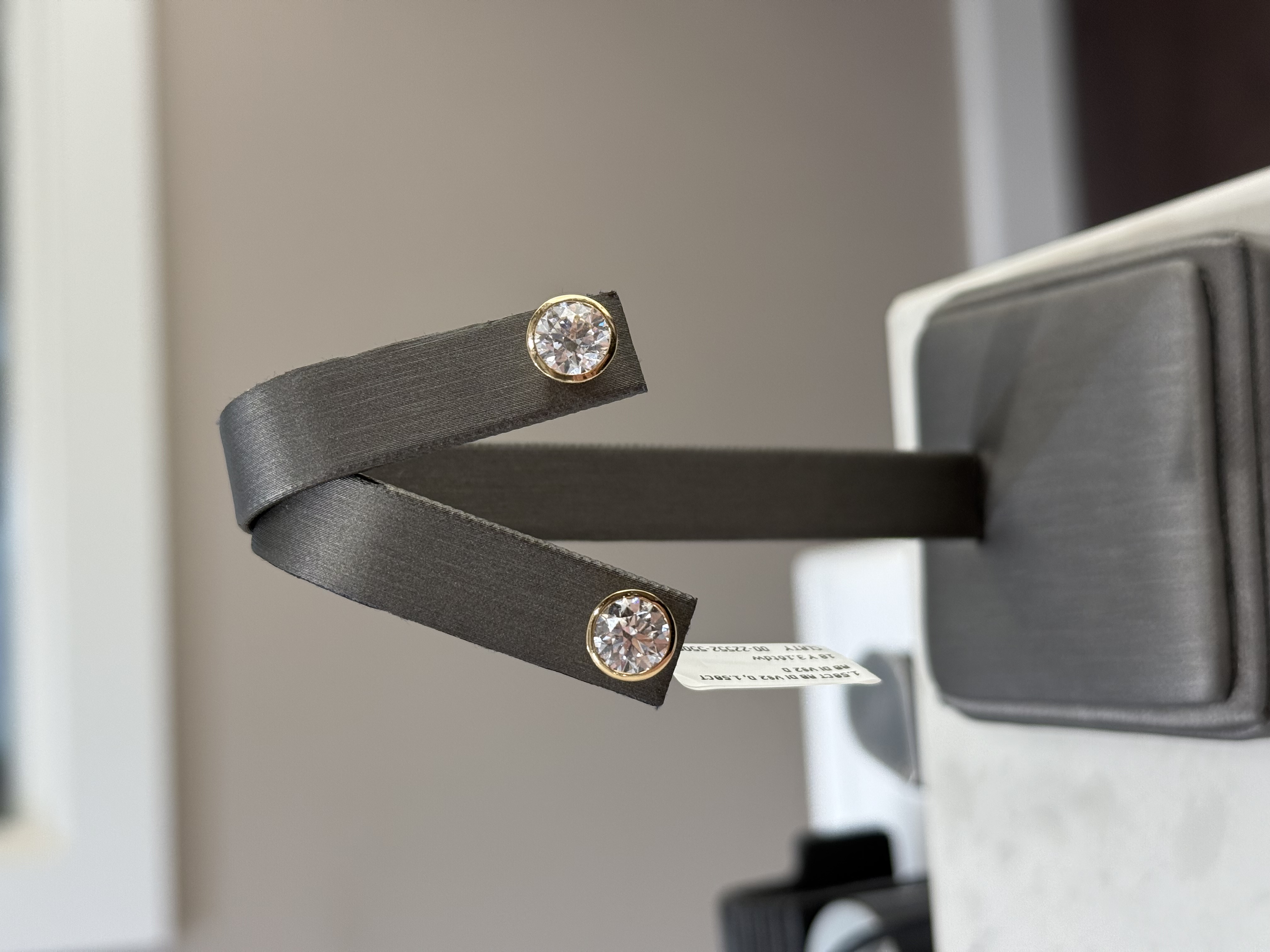 18KY GOLD BEZEL SET 3CTTW LAB GROWN DIAMOND STUD EARRINGS