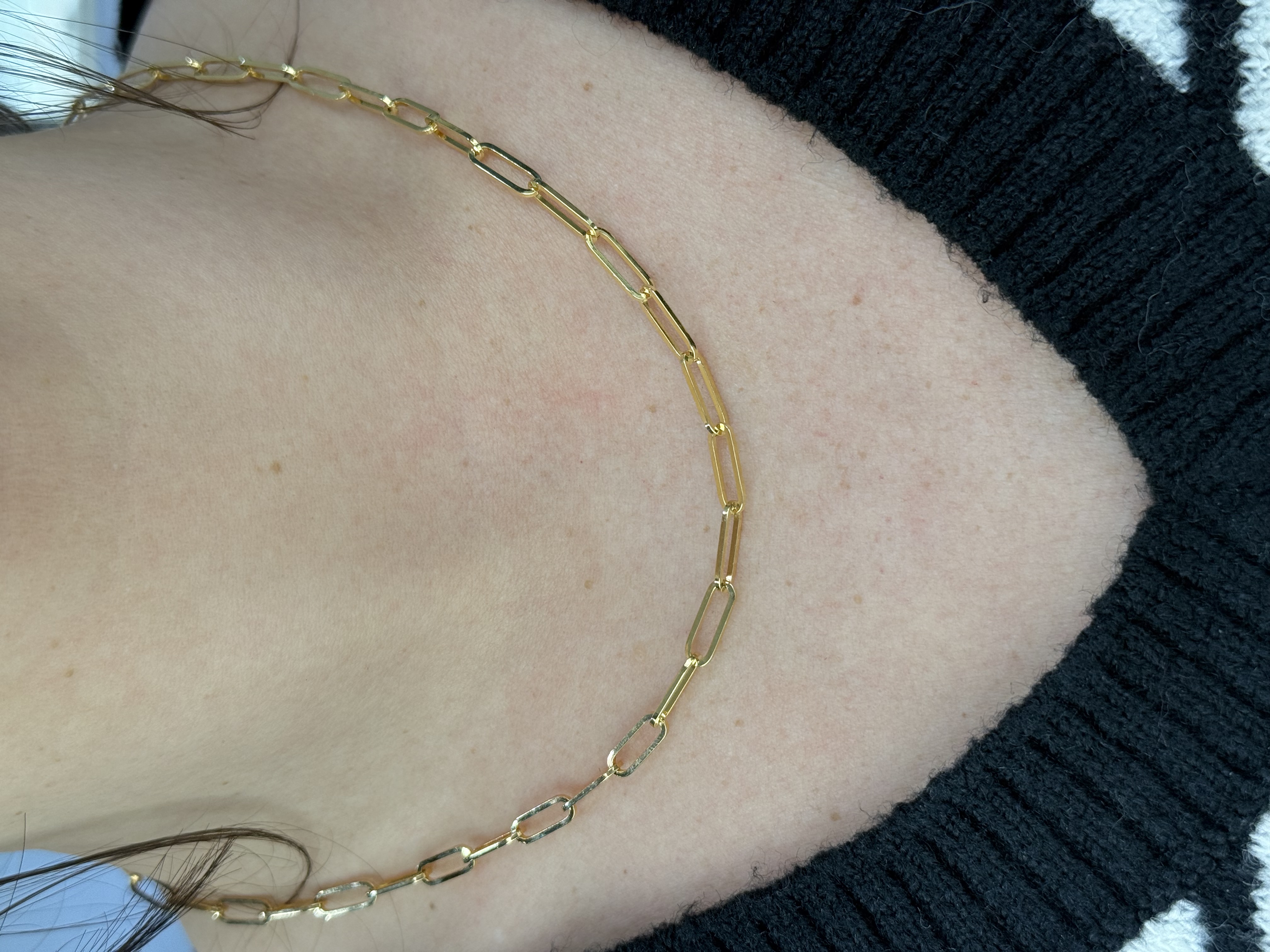 Description 18" 14KY GOLD 4.1MM POLISHED PAPERCLIP CHAIN WITH PEAR SHAPED LOBSTER CLASP 14KT YELLOW GOLD- 585, HIGH POLISHTOTAL LENGTH: 18 INCHESONE INDIVIDUAL LINK MEASURES 12.2MM LONGMETAL WEIGHT: 11 GRAMS