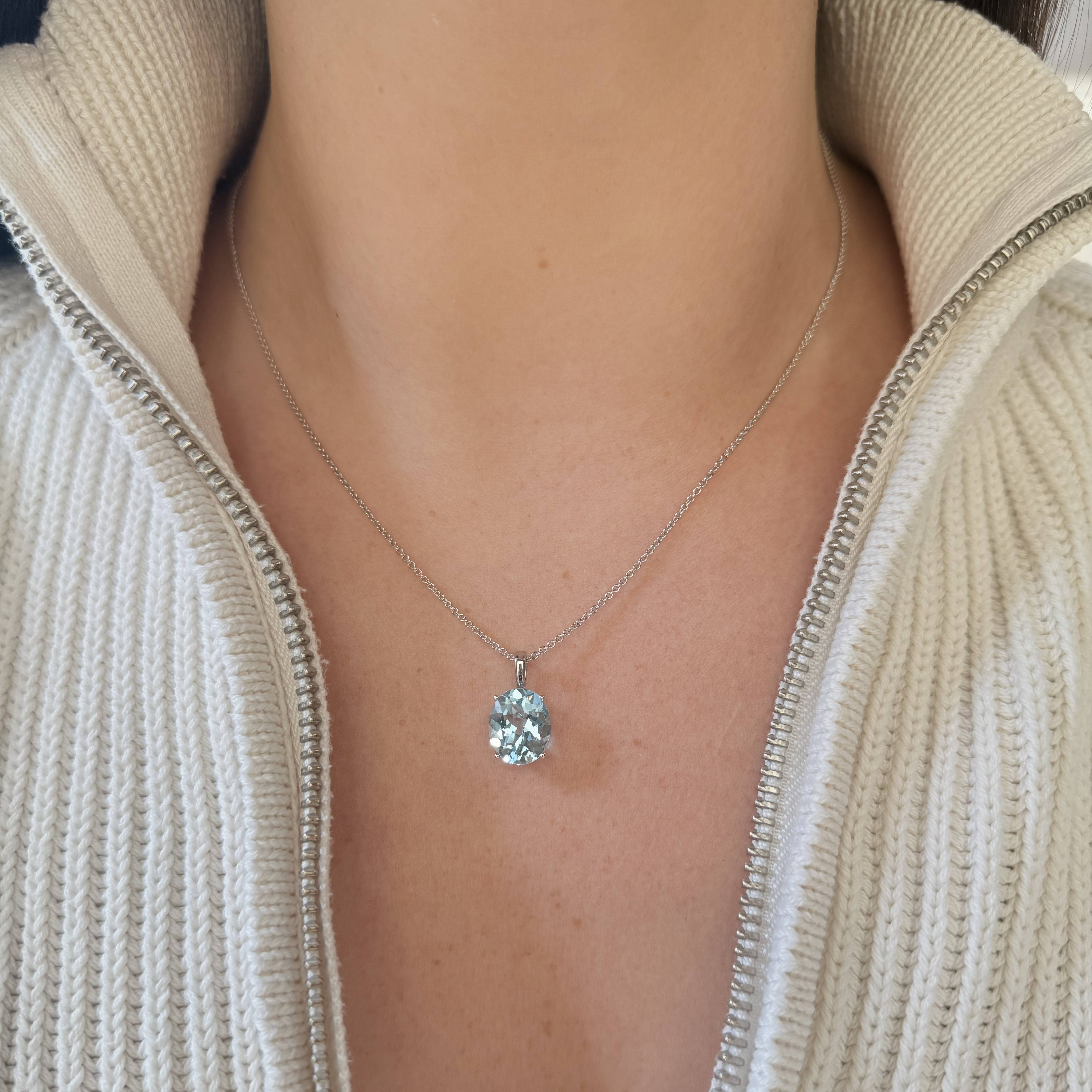 14KW GOLD "SUMMERWIND COLLECTION: JUICY GEMS" OVAL SKY BLUE TOPAZ 4-PRONG PENDANT