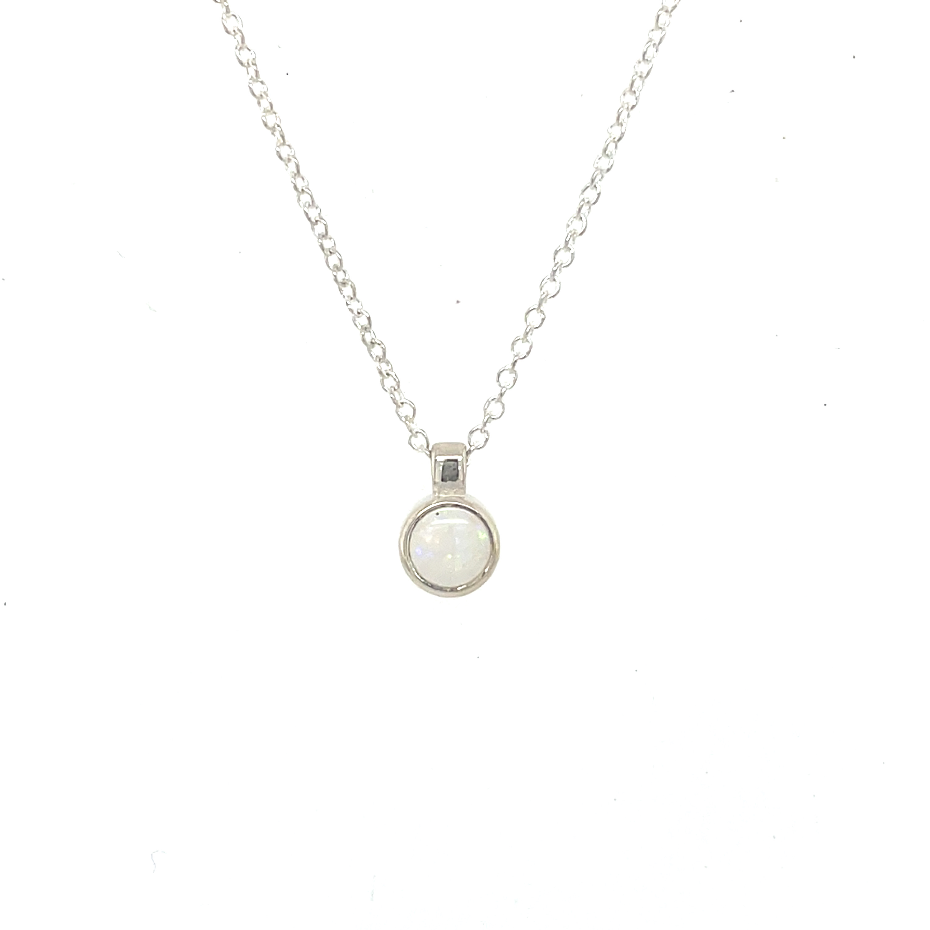 STERLING SILVER "SUMMERWIND COLLECTION" BEZEL SET ROUND OPAL PENDANT ON 16-18" CABLE CHAIN