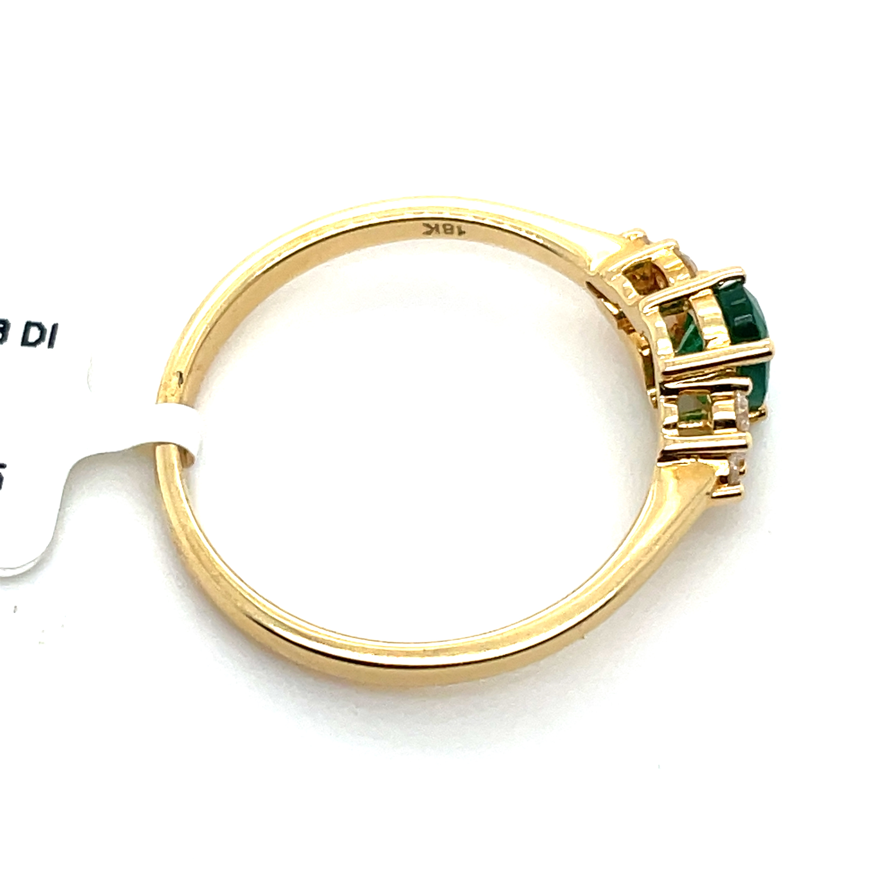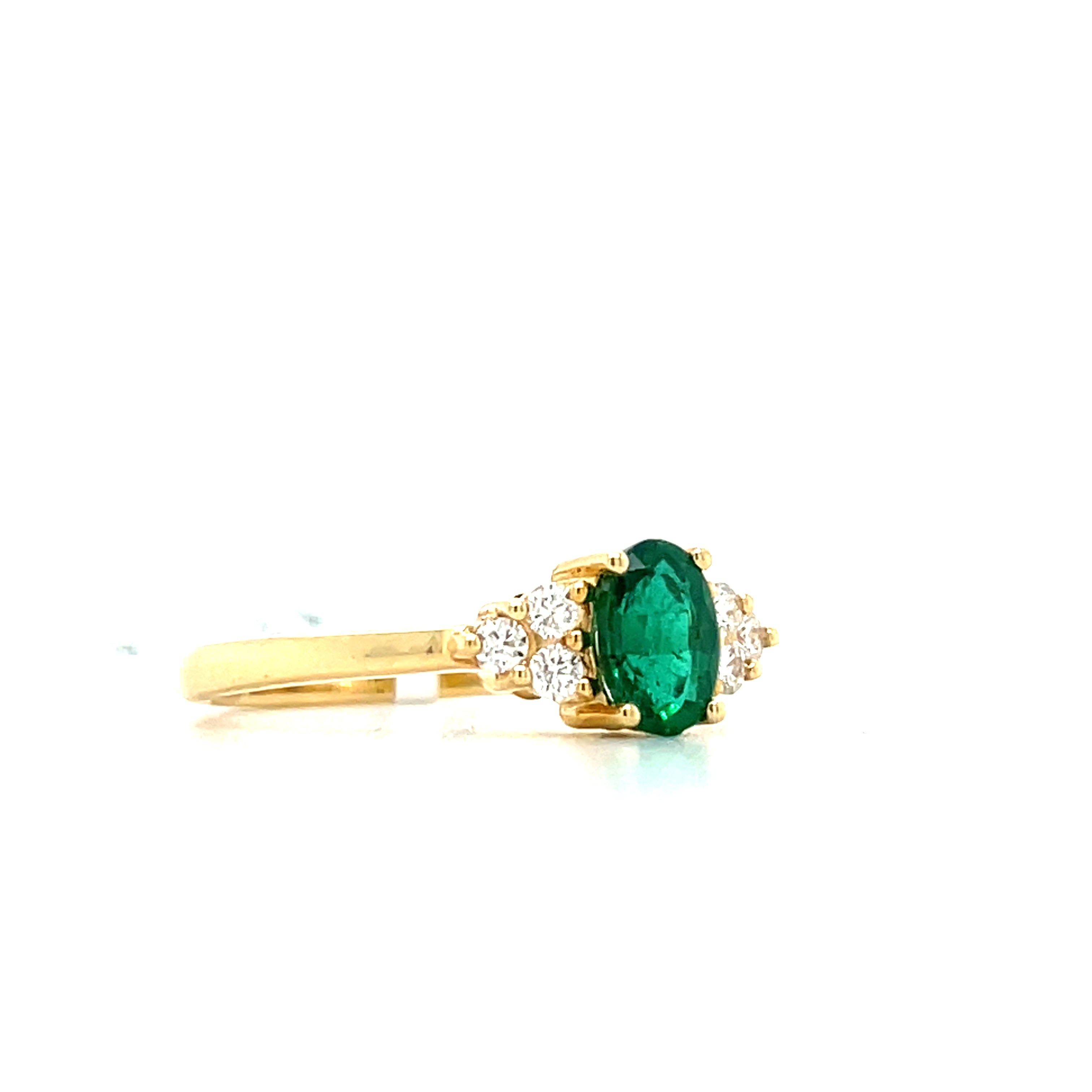 14KY GOLD OVAL EMERALD RING WITH TRIO DIAMOND ACCENTS