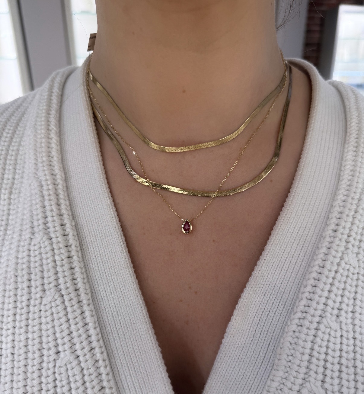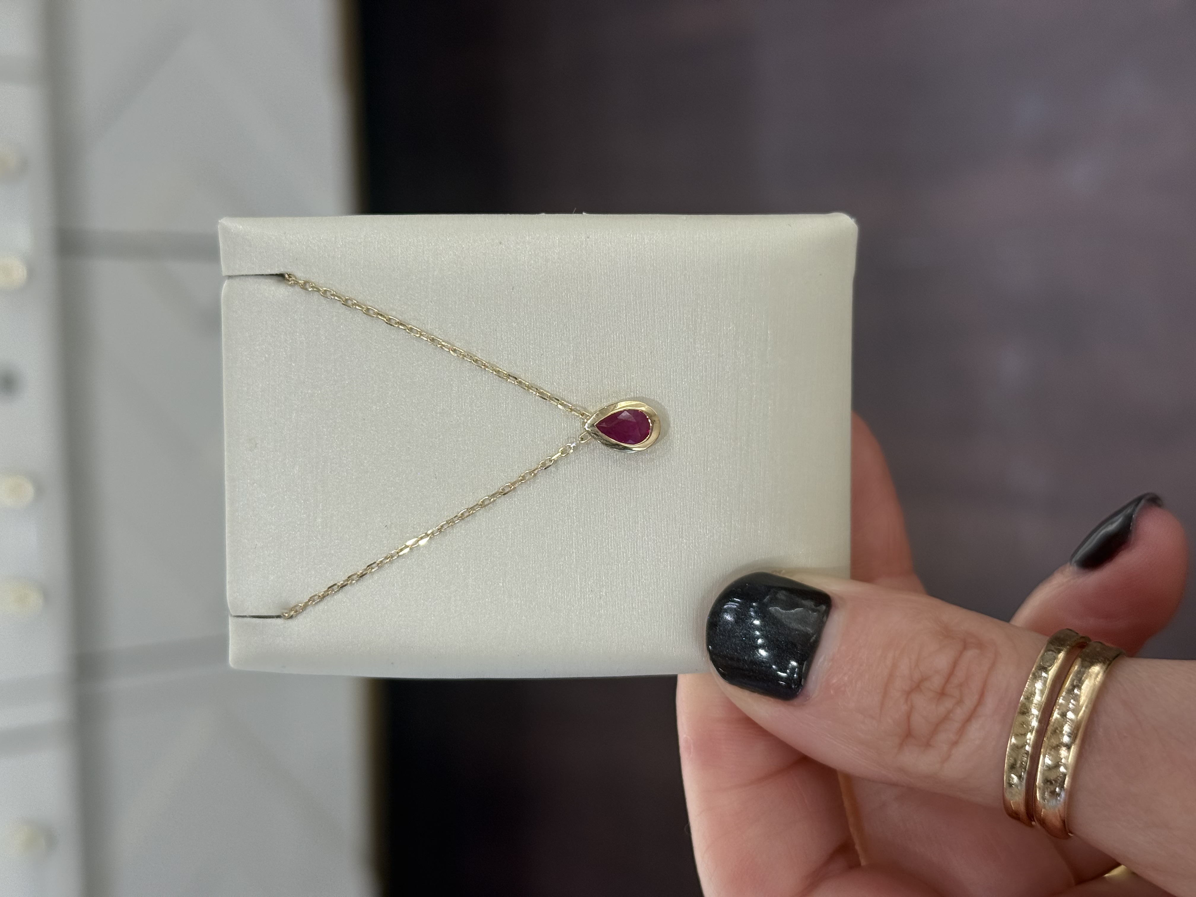 Description 14KY GOLD BEZEL-SET PEAR RUBY PENDANT ON 17-18" CHAIN 14KT YELLOW GOLD- 585, HIGH POLISH1=.51CT PEAR SHAPED RUBY, BEZEL SET14KT YELLOW GOLD DIAMOND CUT CABLE CHAIN WITH LOBSTER CLASPTOTAL LENGTH: 18 INCHES WITH ADJUSTABLE JUMP RING AT 17 INCHES