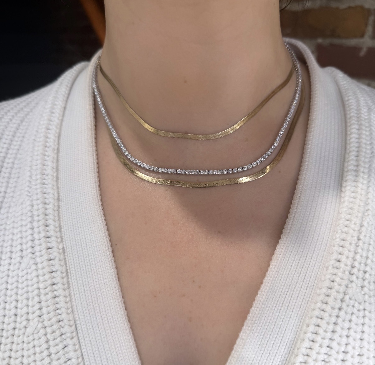 Description 17" 14KW GOLD 8.40CTTW NATURAL DIAMOND TENNIS NECKLACE 14KT WHITE GOLD- 585, HIGH POLISH168=8.40CTTW ROUND BRILLIANT CUT DIAMONDS G-H COLOR, SI CLARITY, PRONG SETTOTAL LENGTH: 17 INCHESHIDDEN BOX CLASP WITH FIGURE EIGHT SAFETY LATCH