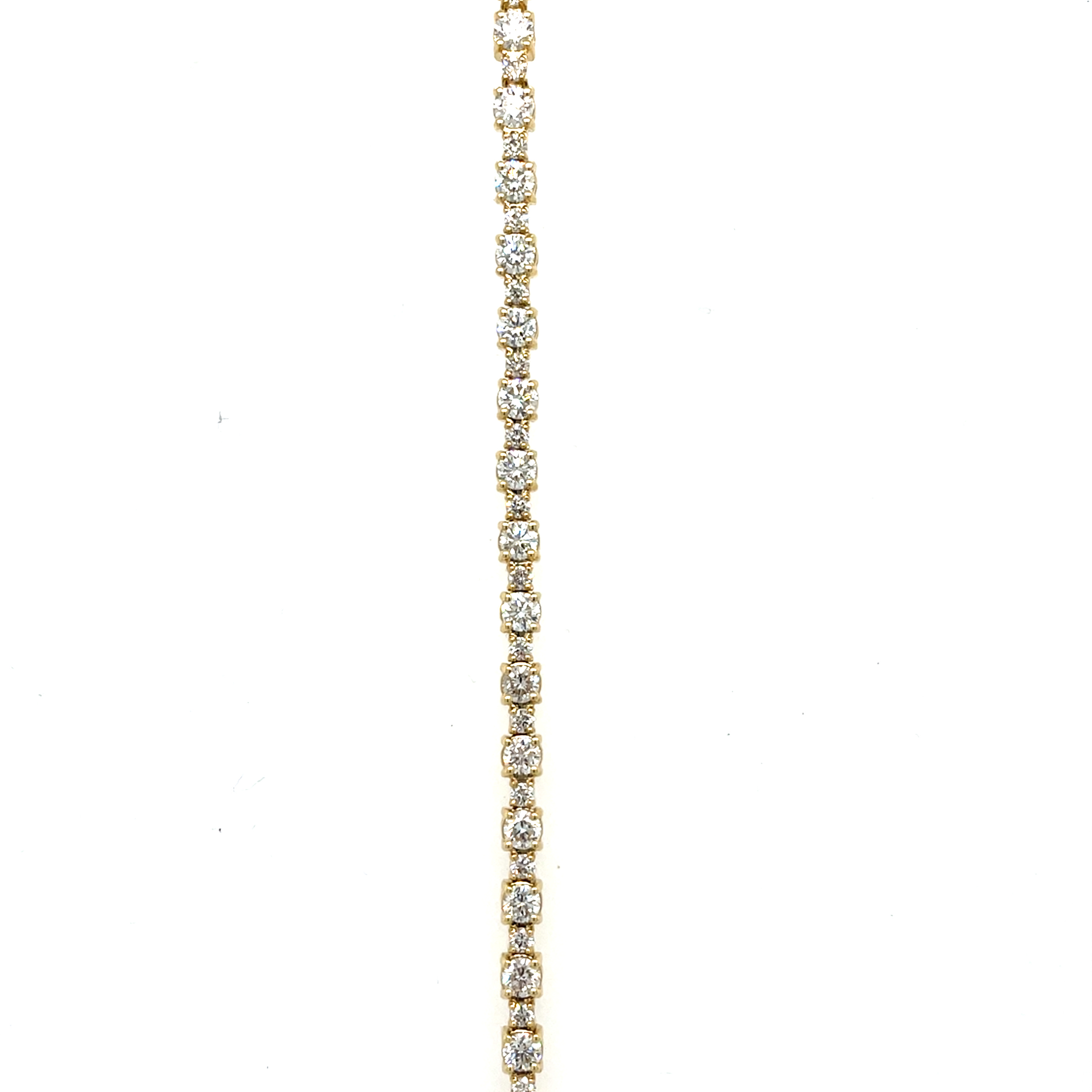 Description 7" 14KY GOLD DIAMOND TENNIS BRACELET WITH ALTERNATING SIZE ROUND DIAMONDS 14KT YELLOW GOLD- 585, HIGH POLISH64=4.21CTTW ROUND BRILLIANT CUT DIAMONDS H-I COLOR, SI CLARITY, PRONG SETTOTAL LENGTH: 7 INCHESHIDDEN BOX CLASP WITH SAFETY LATCH