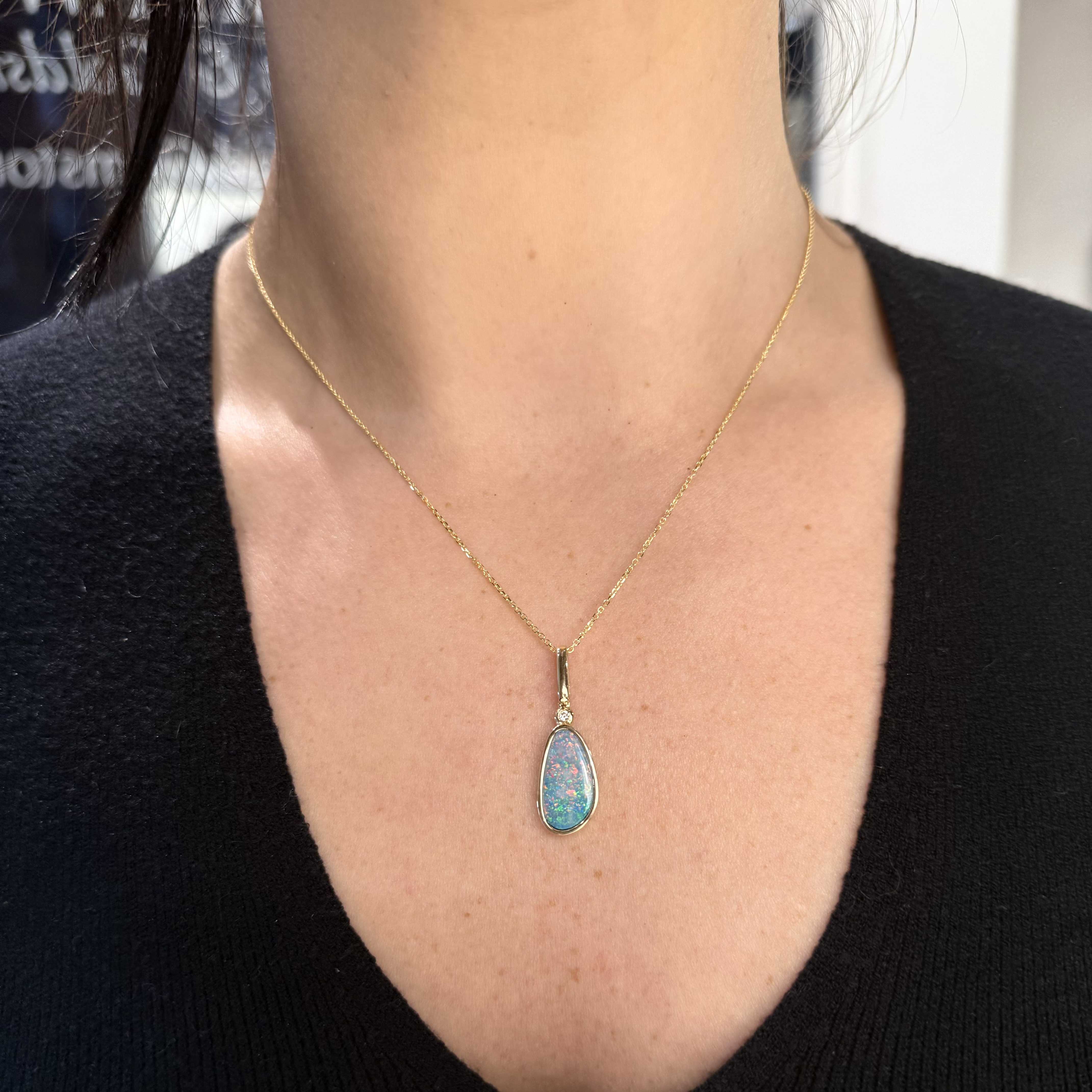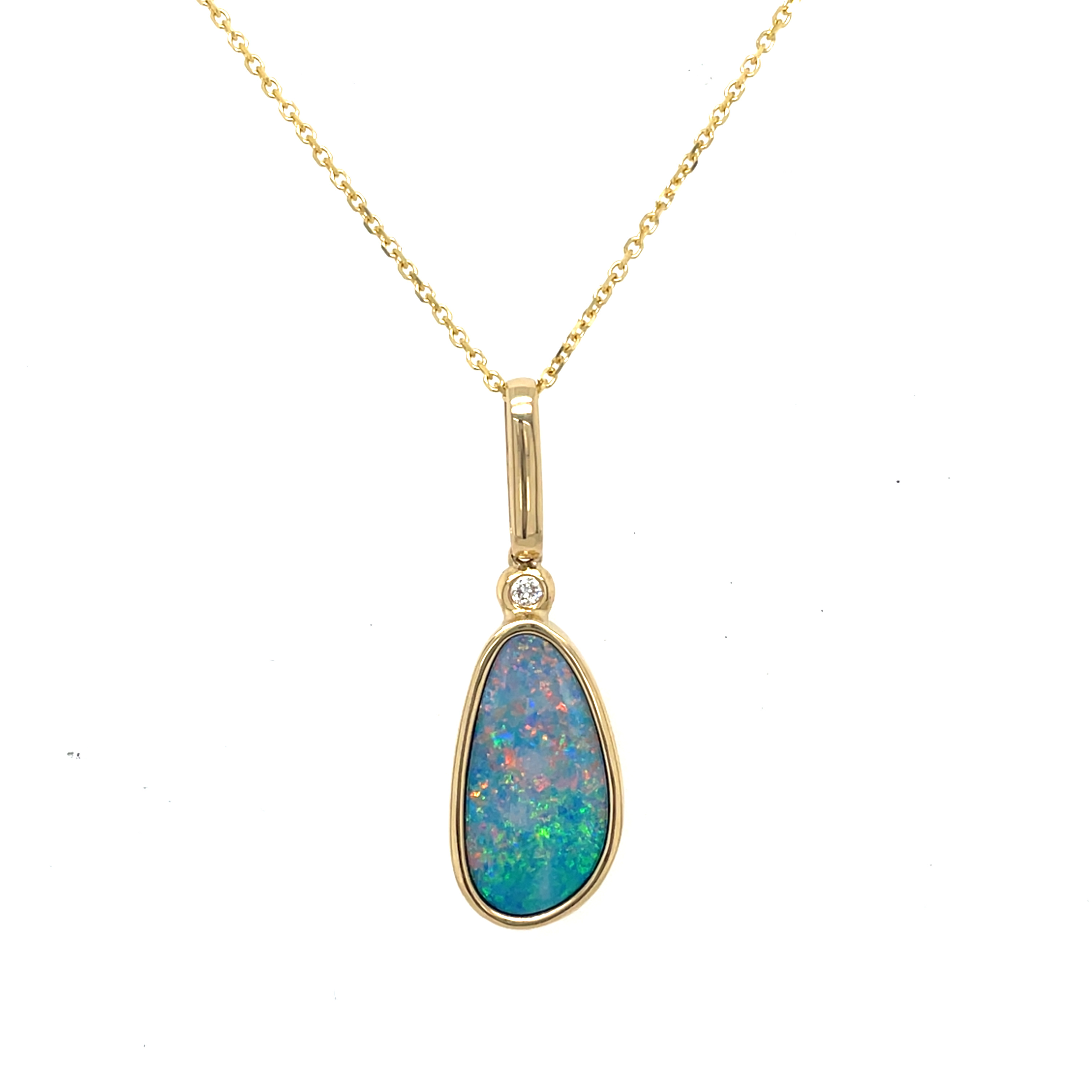 14KY GOLD BEZEL-SET AUSTRALIAN OPAL DOUBLET PENDANT WITH ACCENT DIAMOND