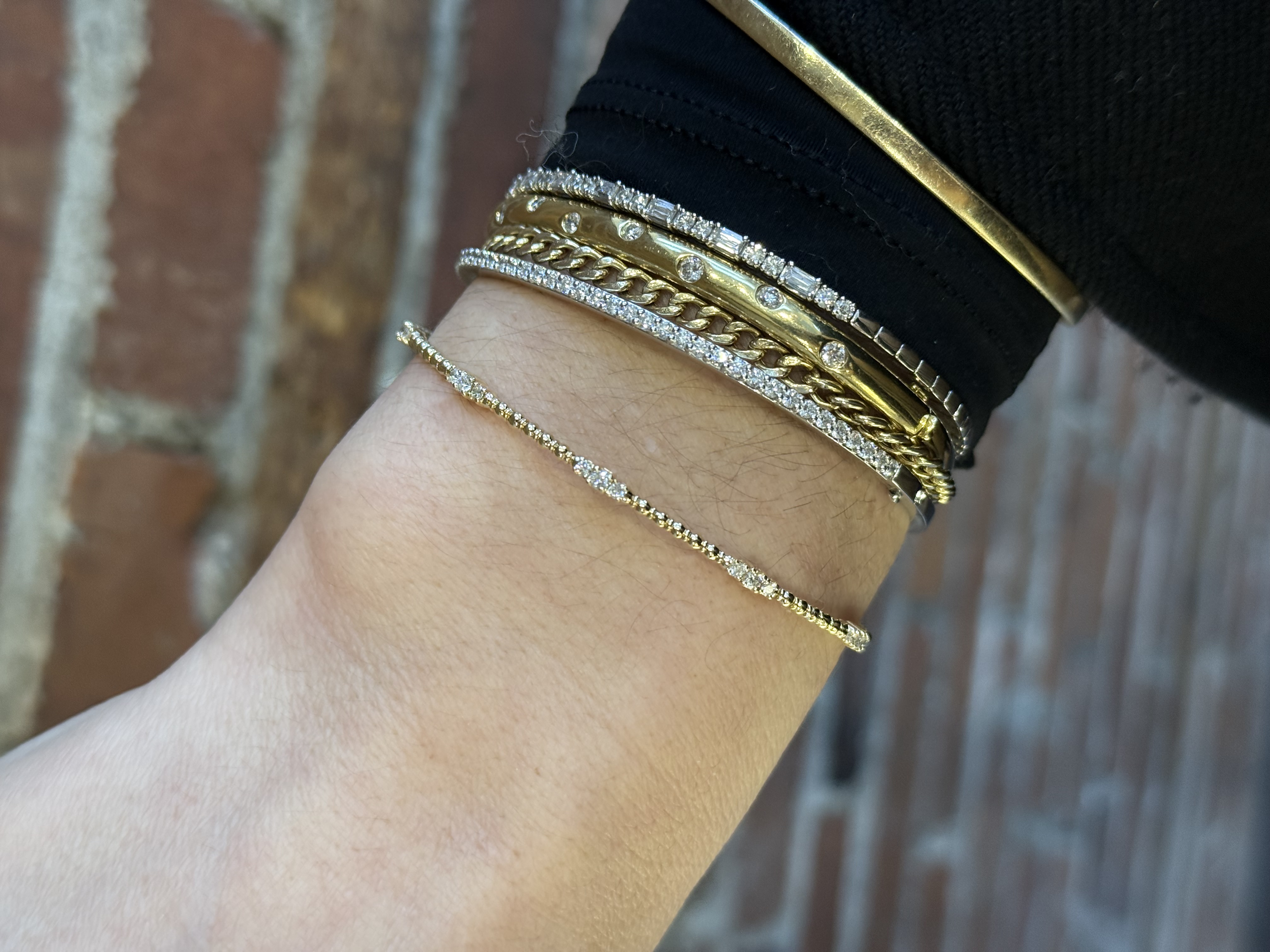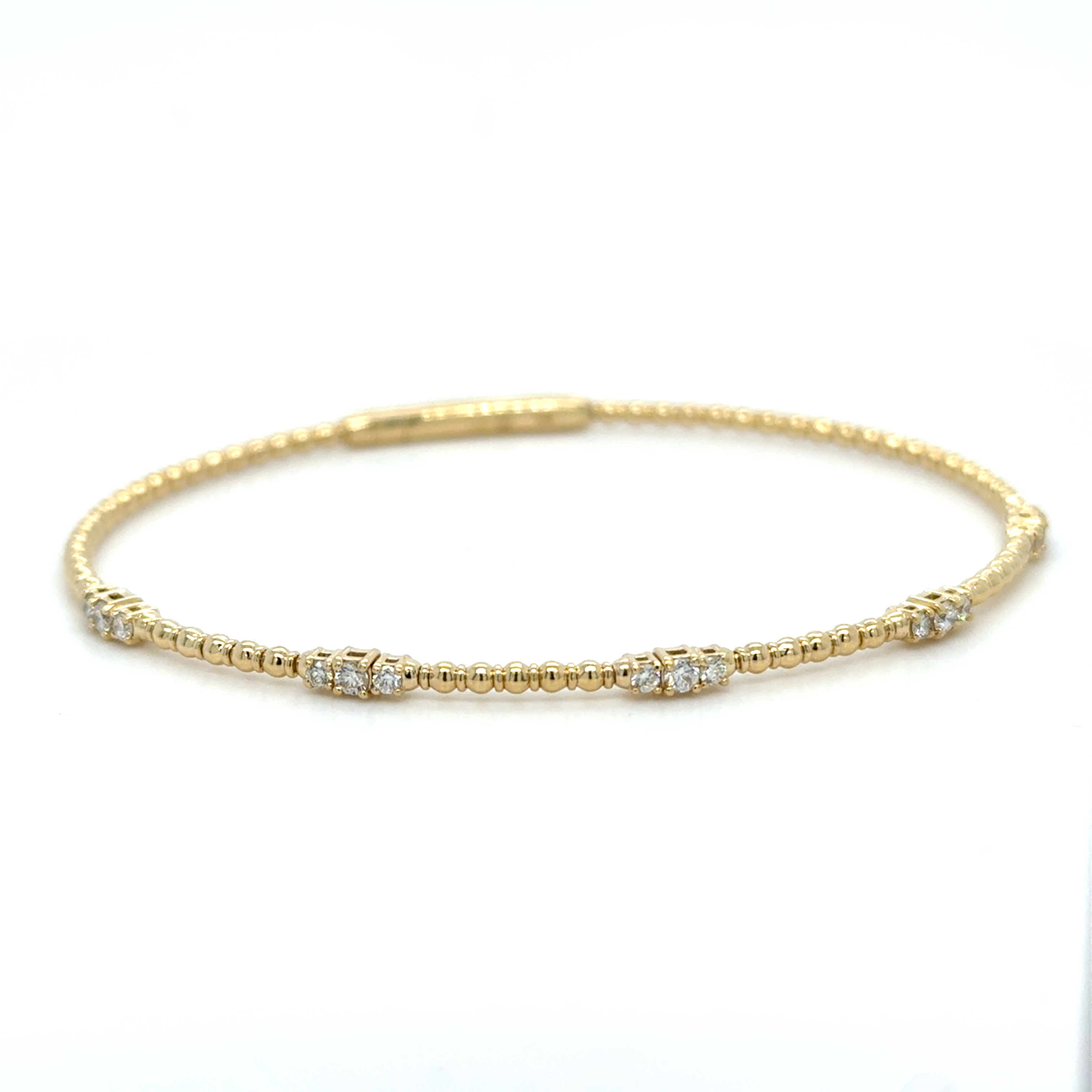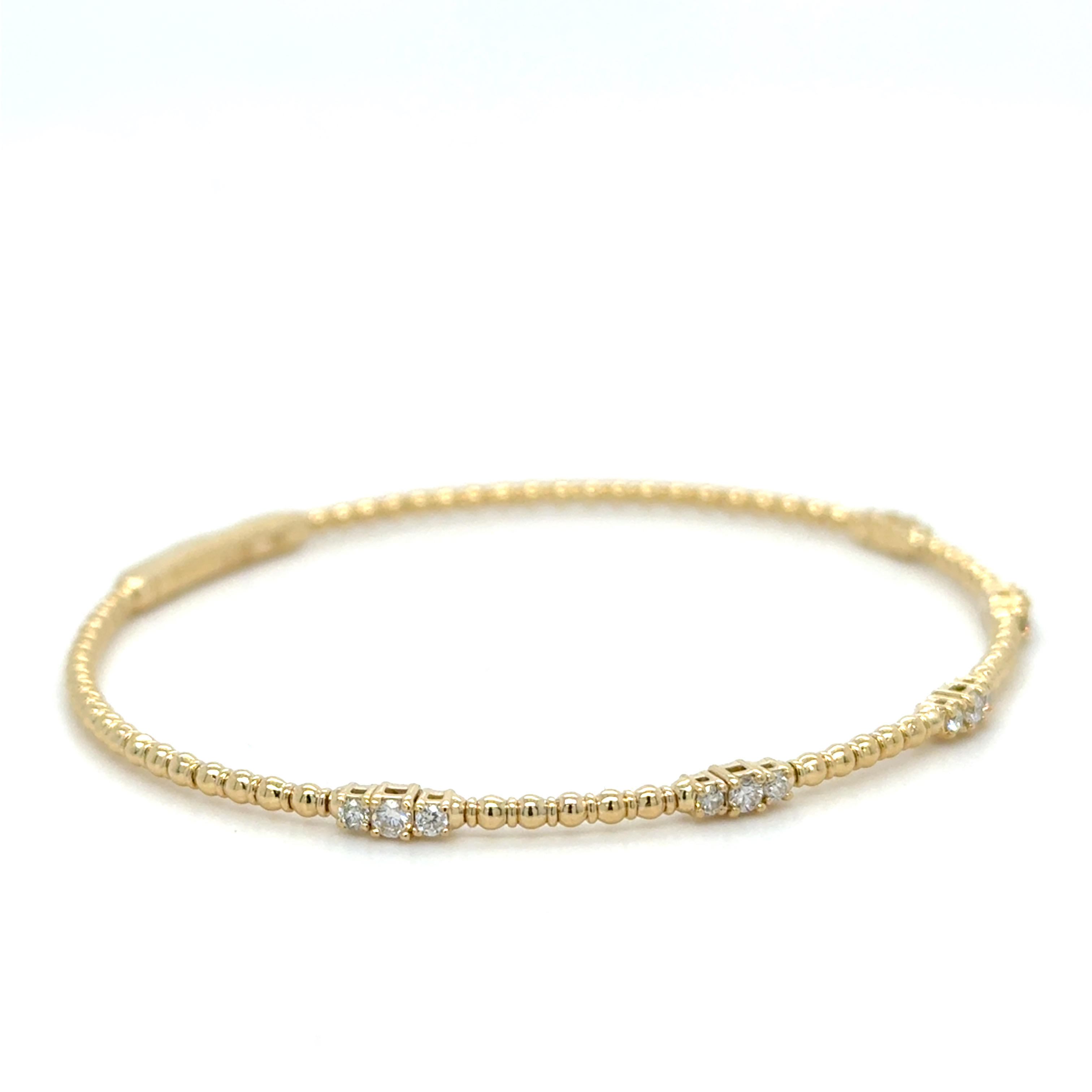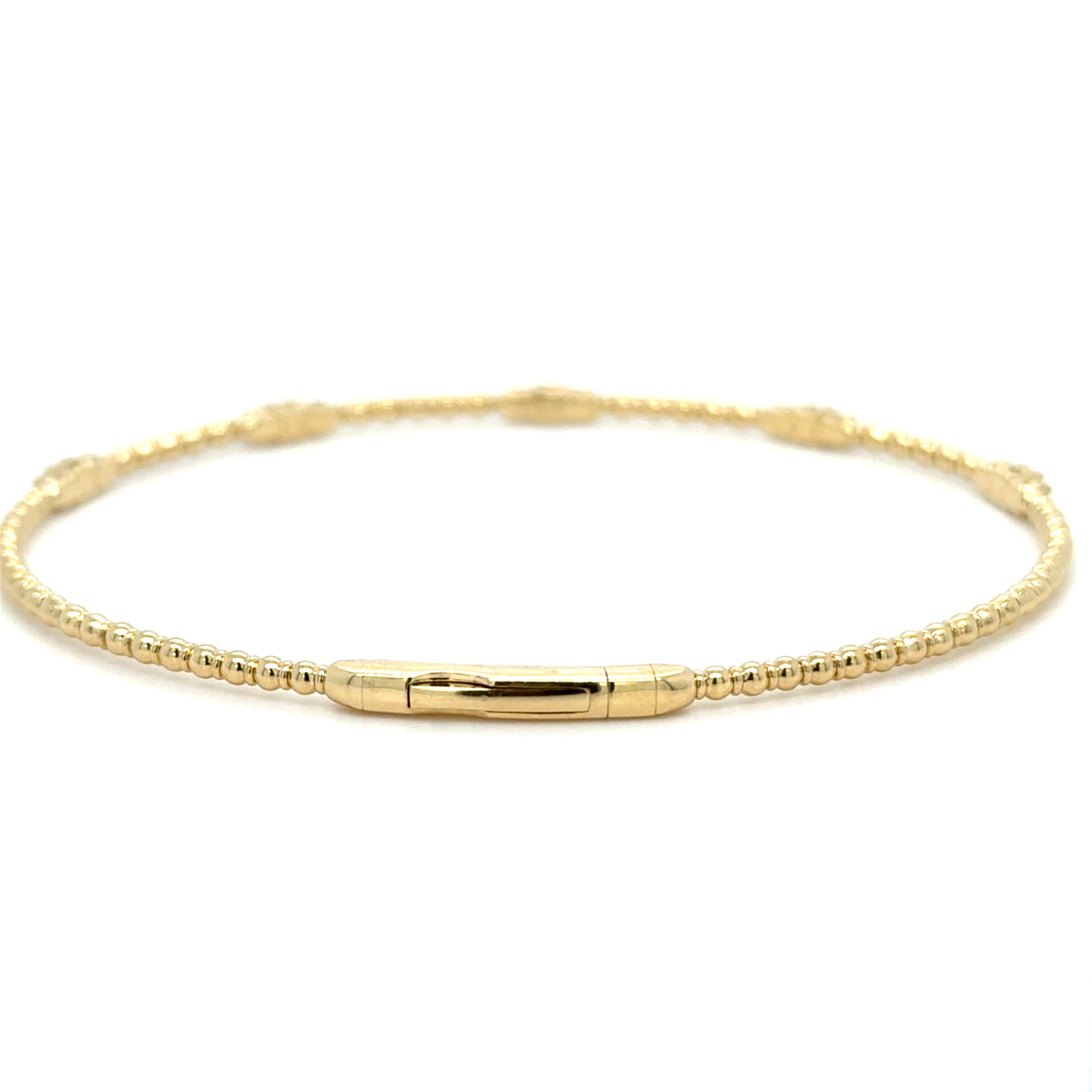 6.75" 14KY GOLD FLEXIBLE BEADED BANGLE BRACELET WITH FIVE TRIO-DIAMOND STATIONS