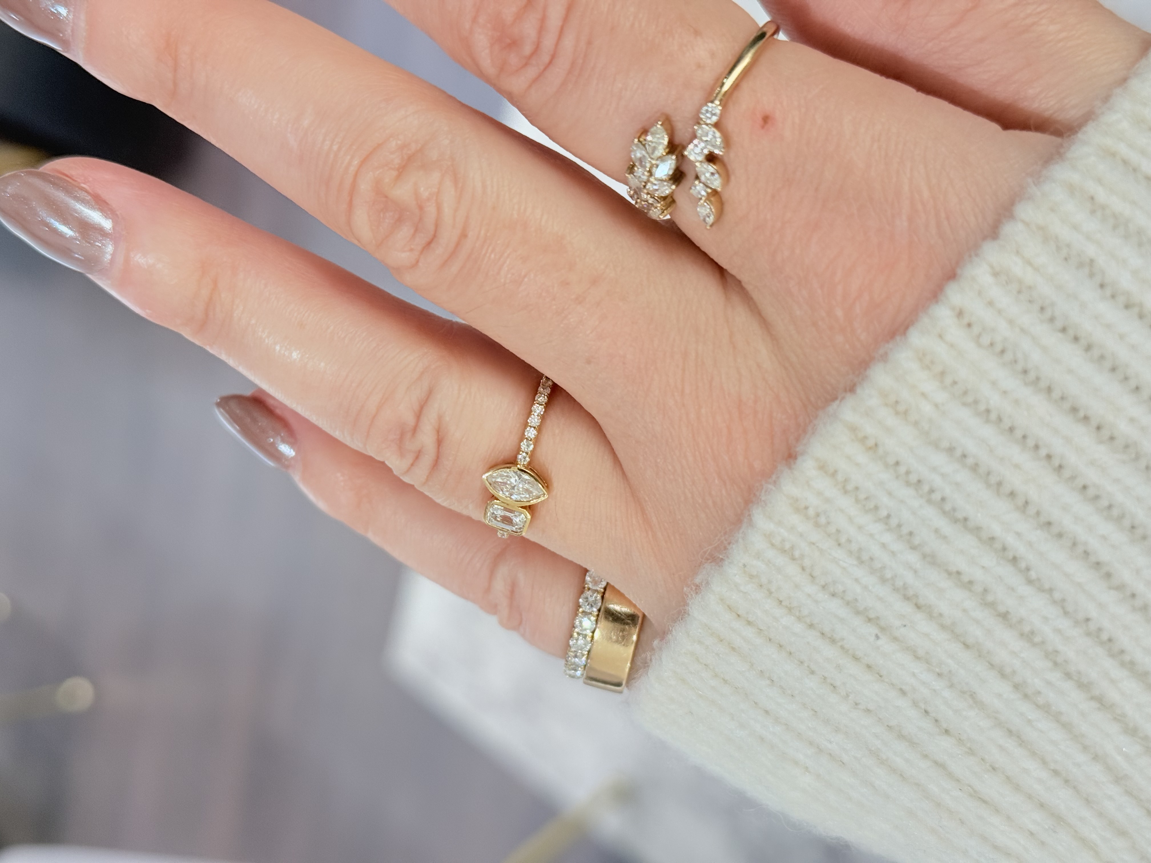 2=.56CTTW MARQUISE & EMERALD CUT DIAMONDS G-H COLOR, VS-SI CLARITY, BEZEL SET