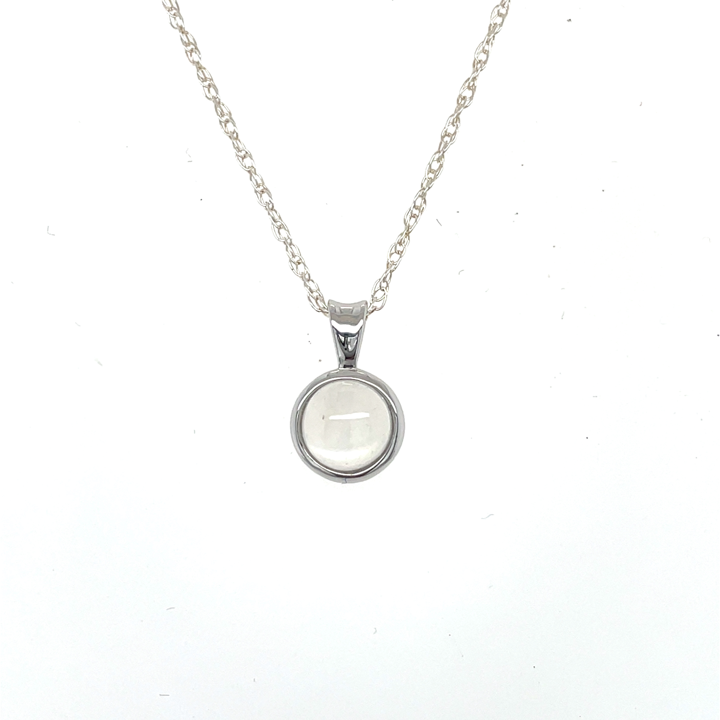 Description STERLING SILVER ROUND CABOCHON MOONSTONE PENDANT BEZEL SET WITH TAPERED BAIL STERLING SILVER- 925, HIGH POLISHQTY (1) ROUND CABOCHON MOONSTONE, BEZEL SETHIGH POLISH TAPERED BAIL