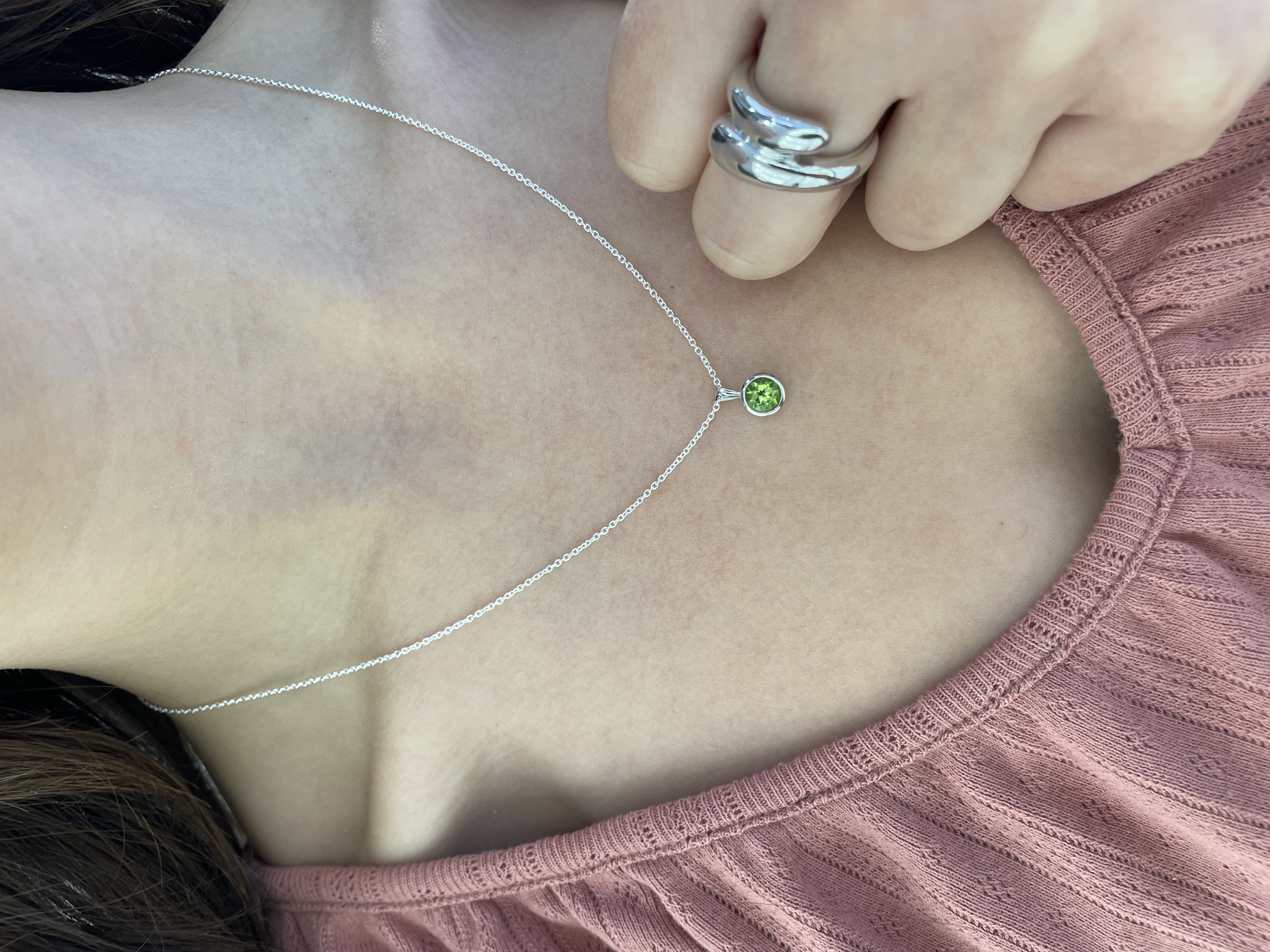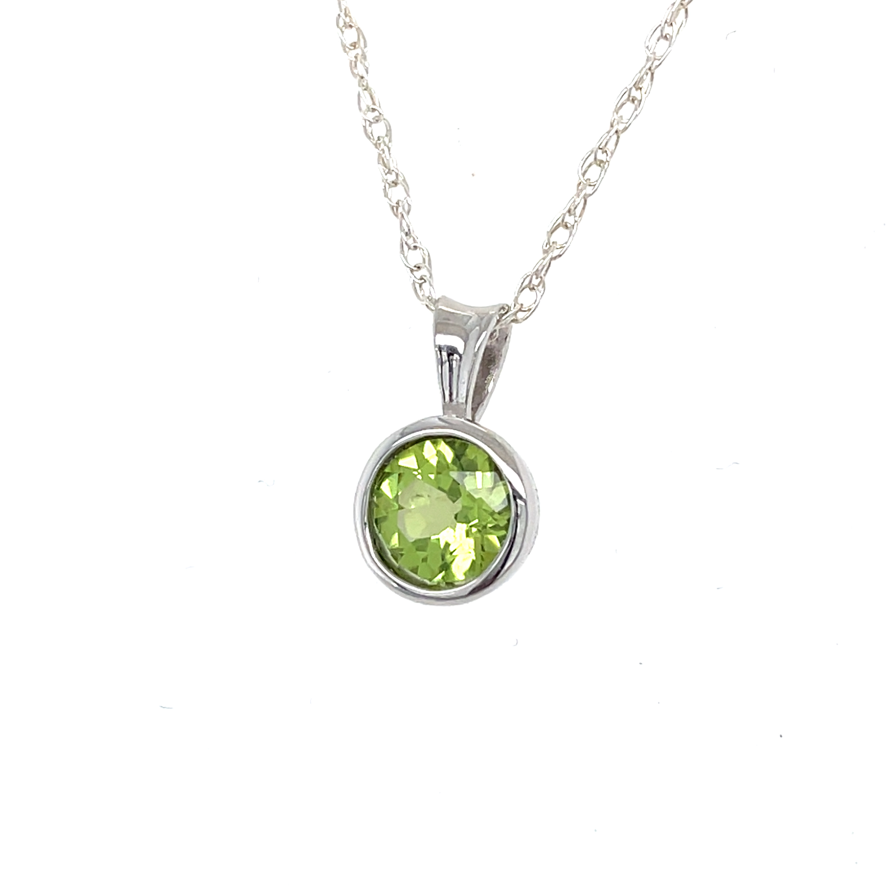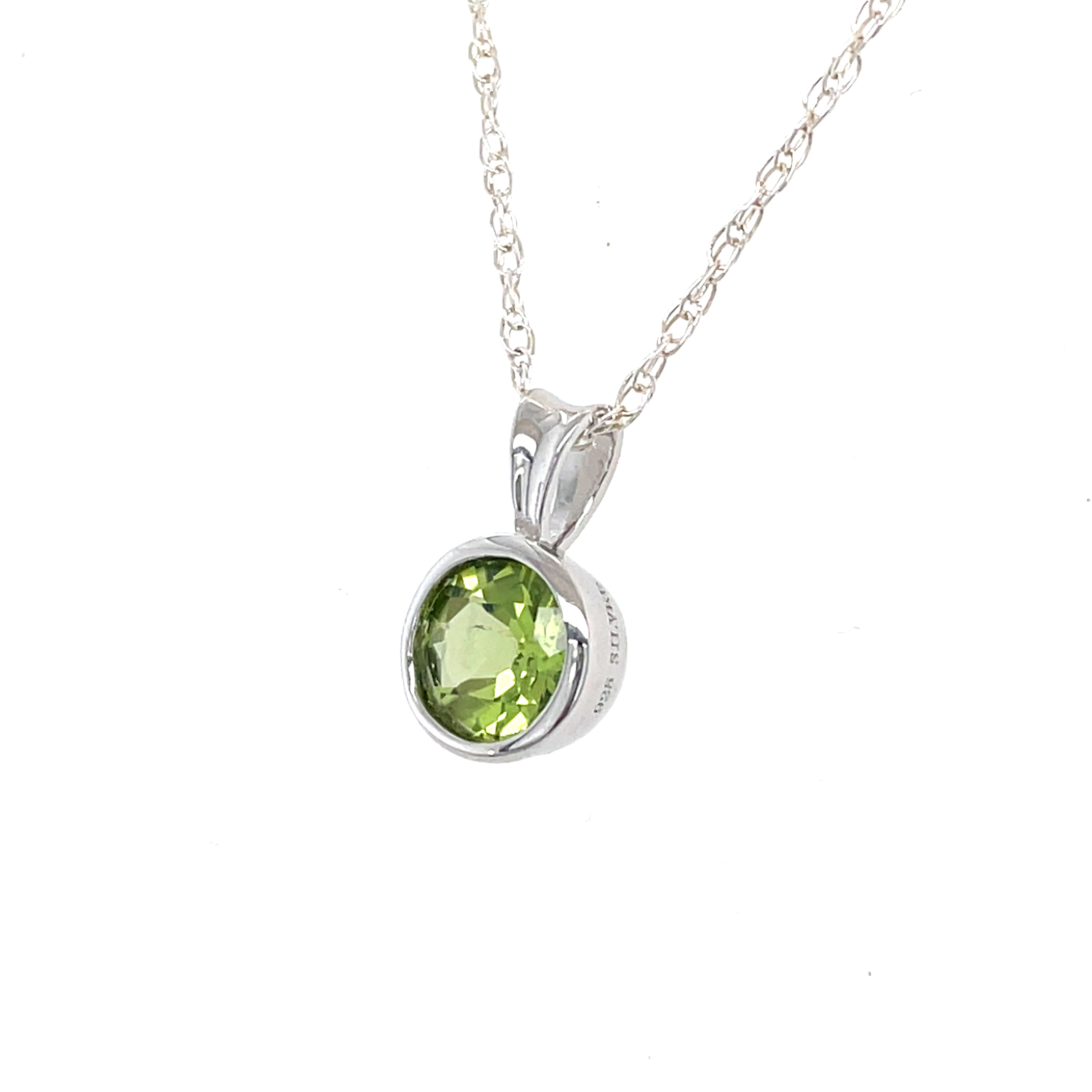 STERLING SILVER ROUND PERIDOT PENDANT BEZEL SET WITH TAPERED BAIL
