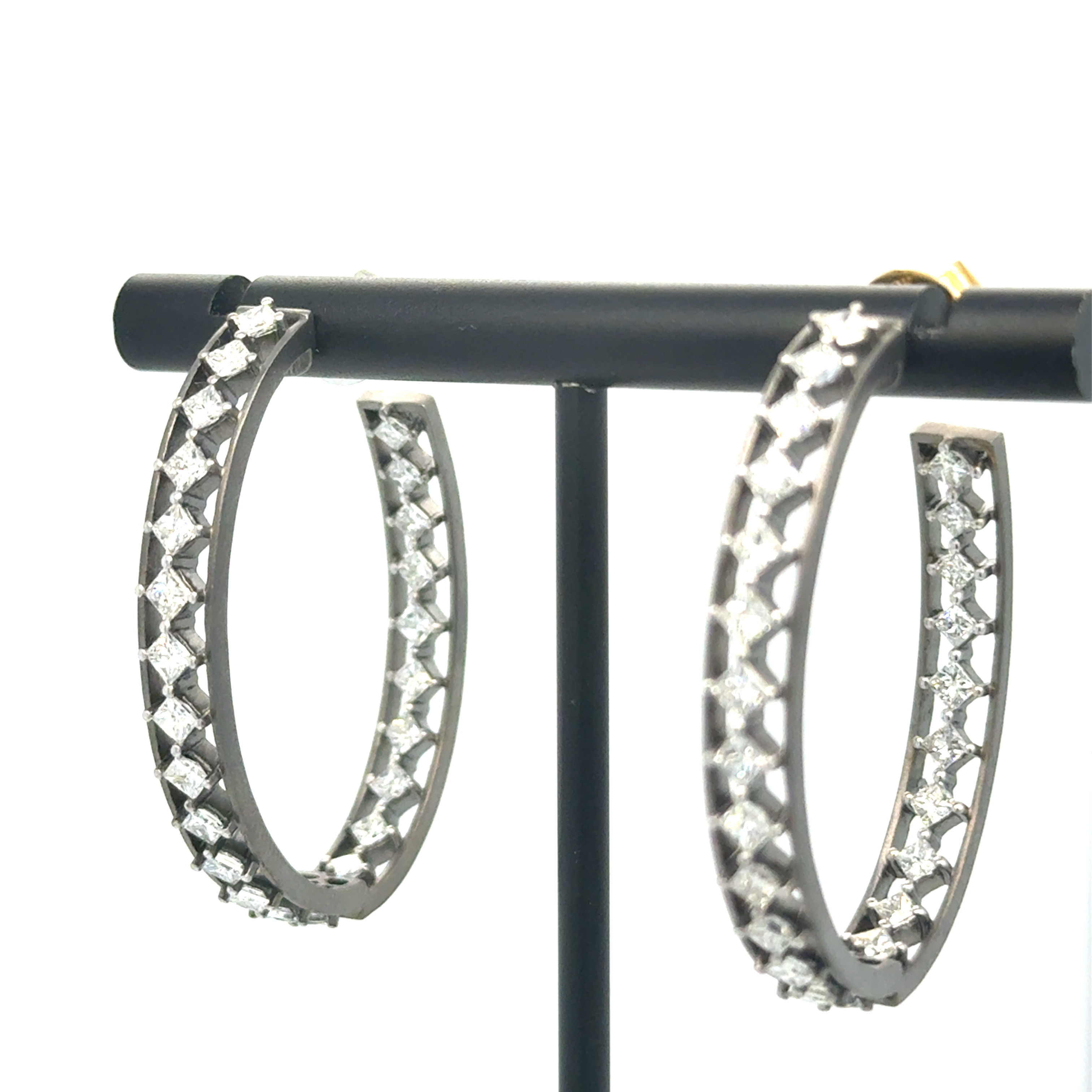 18KT GOLD & BLACK RHODIUM 2.95CTTW DIAMOND J-HOOPS