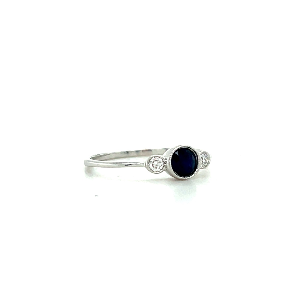 14KW GOLD BEZEL-SET SAPPHIRE & DIAMOND ACCENT RING WITH MILGRAIN TRIM
