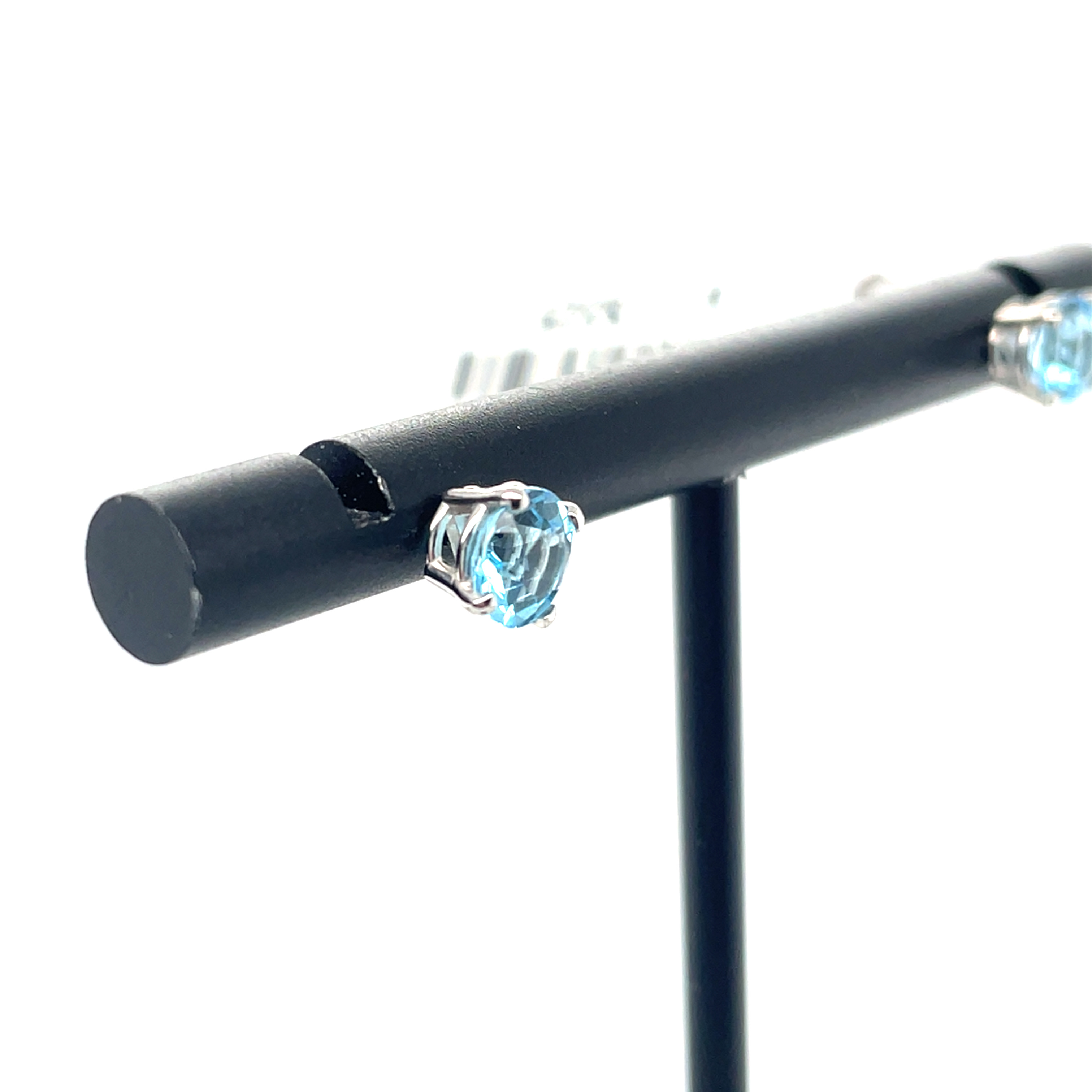 14KW GOLD "SUMMERWIND COLLECTION" 5MM ROUND SWISS BLUE TOPAZ STUD EARRINGS