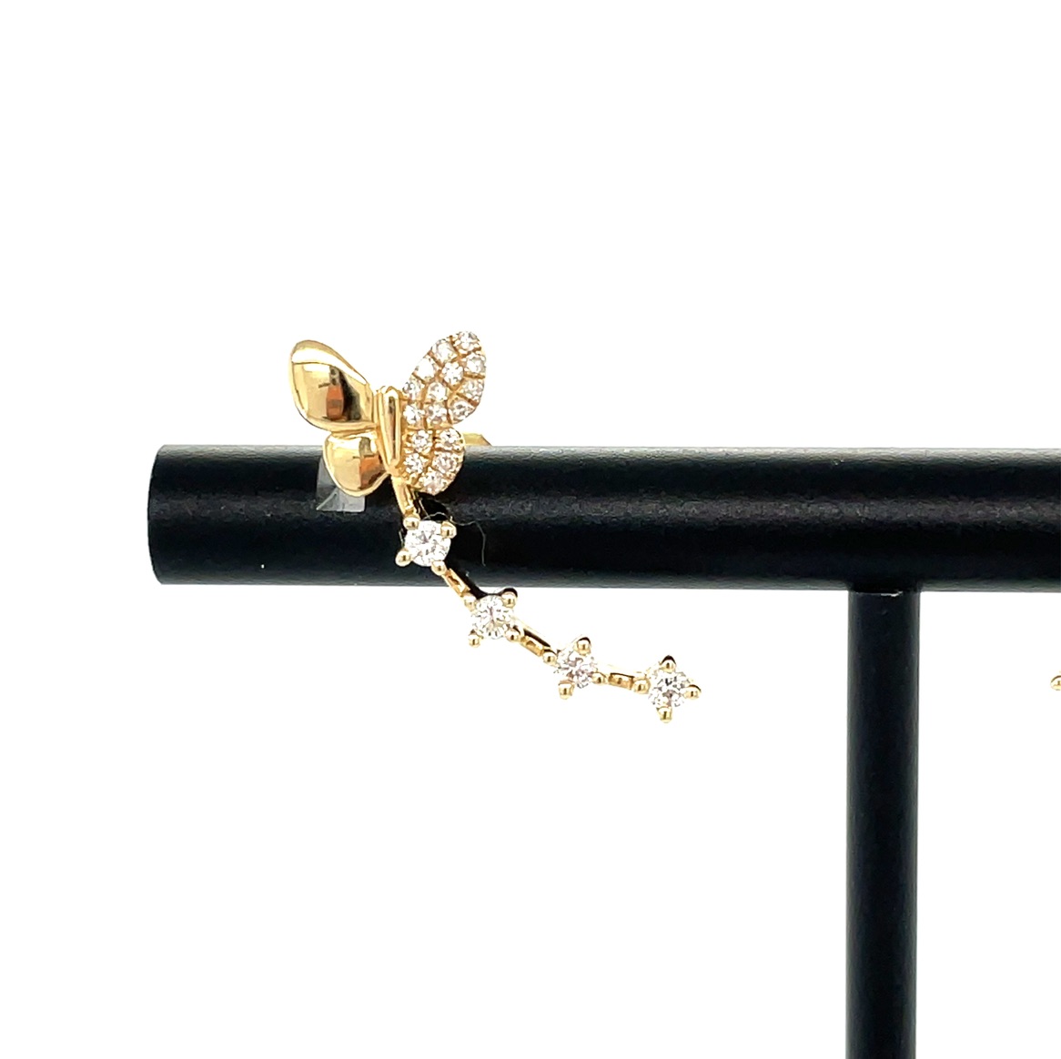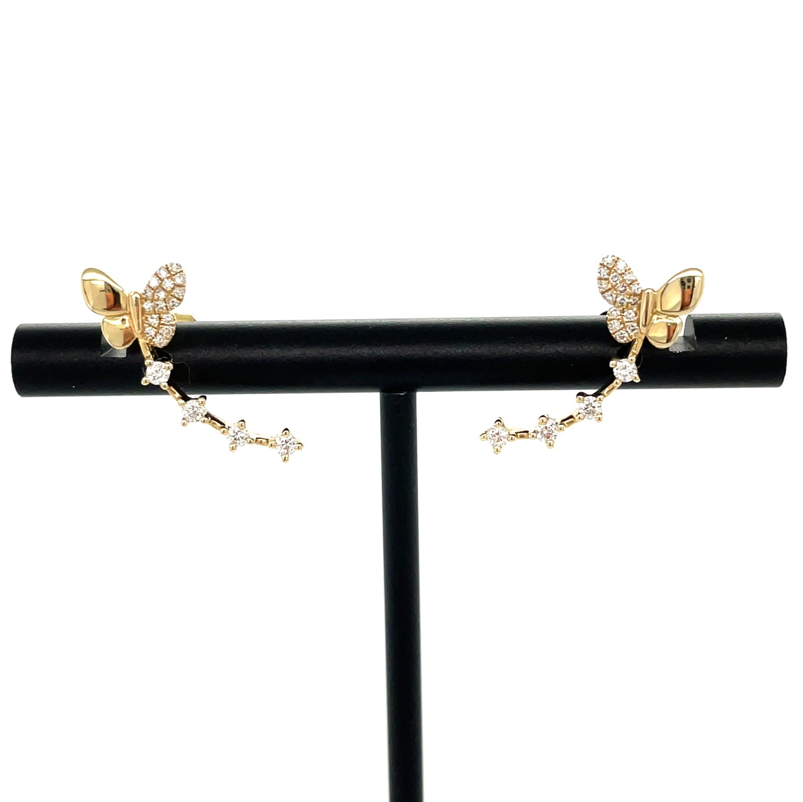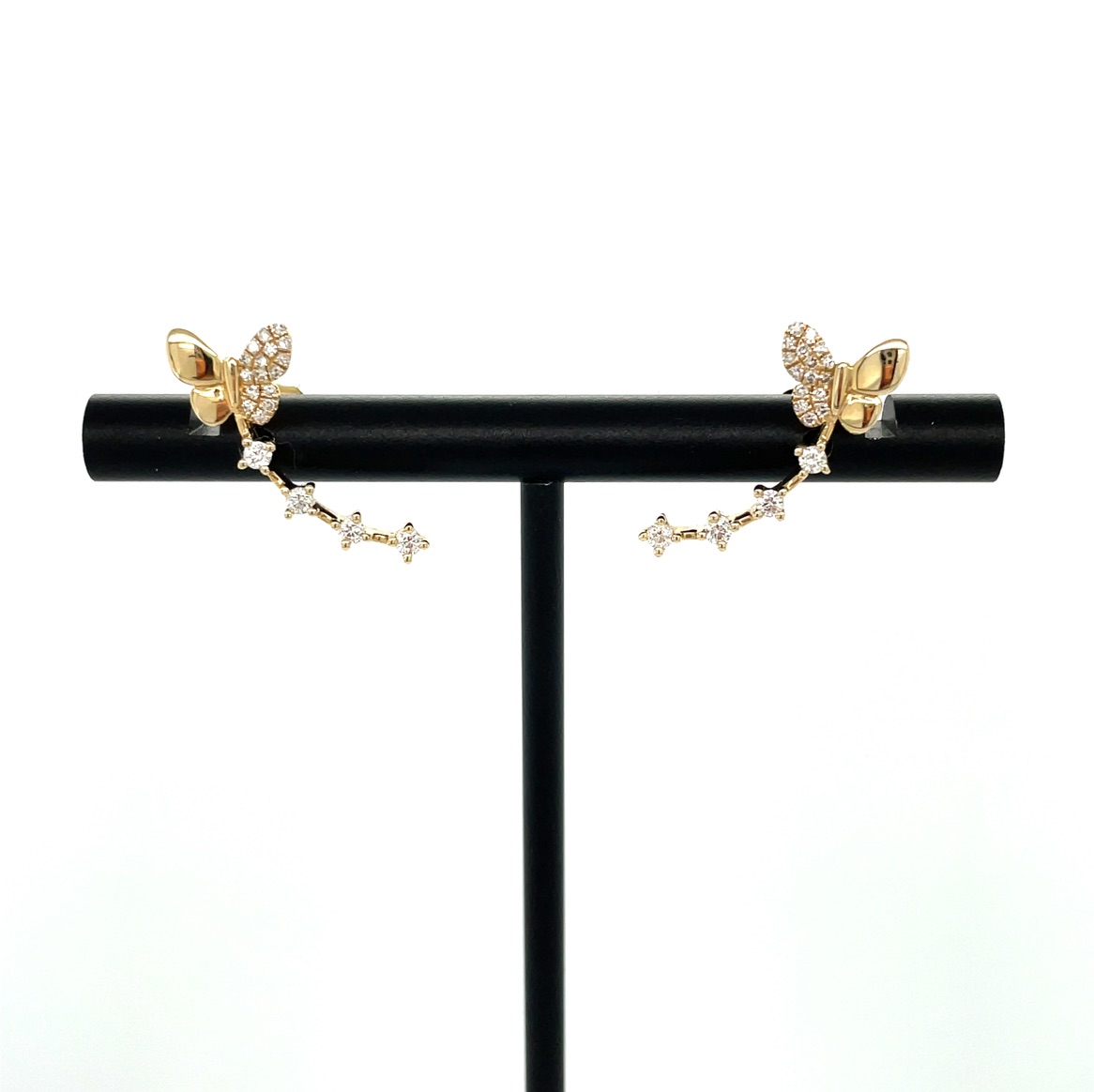 14KY GOLD BUTTERFLY & DIAMOND EAR CLIMBER EARRINGS .32CTTW H-I, SI1-2