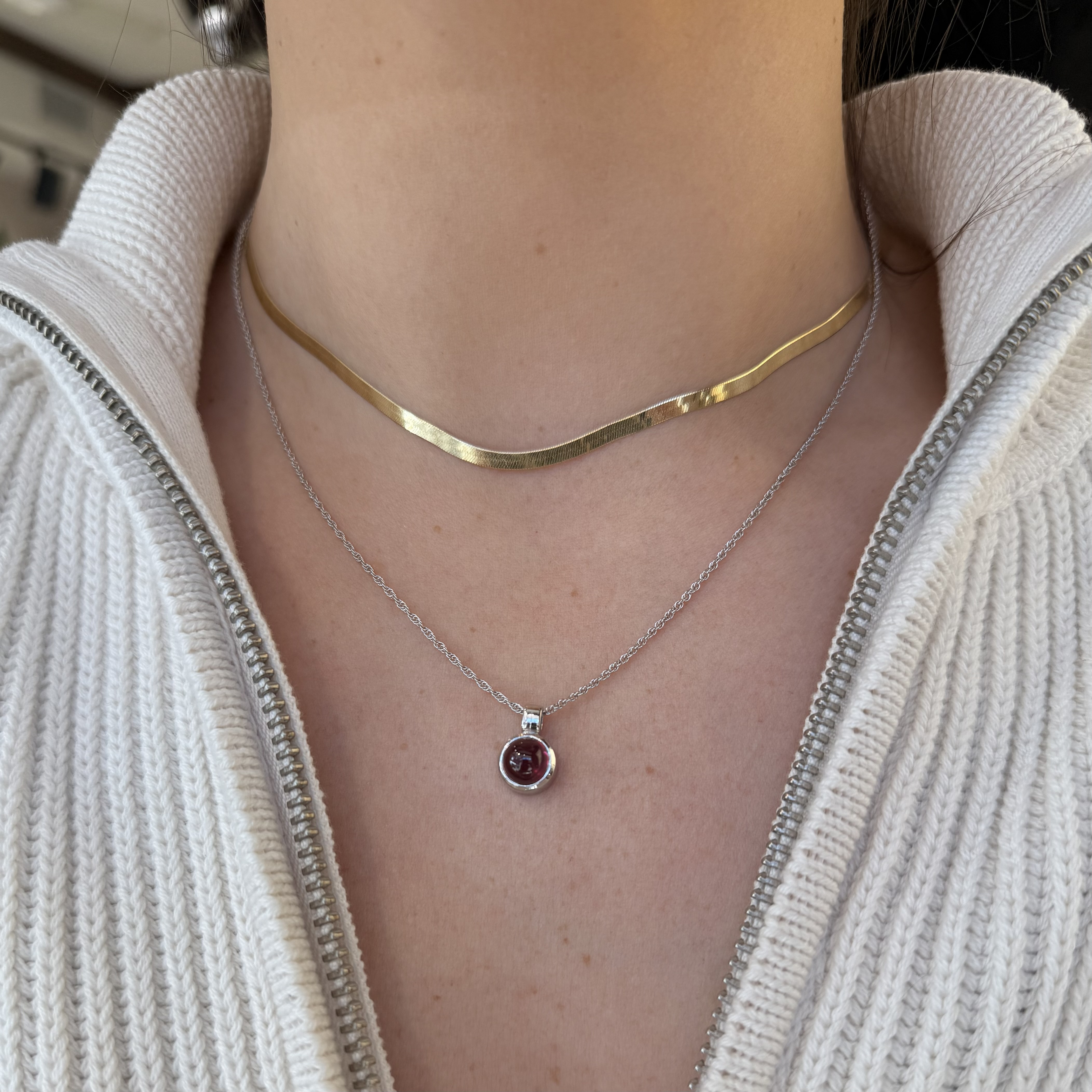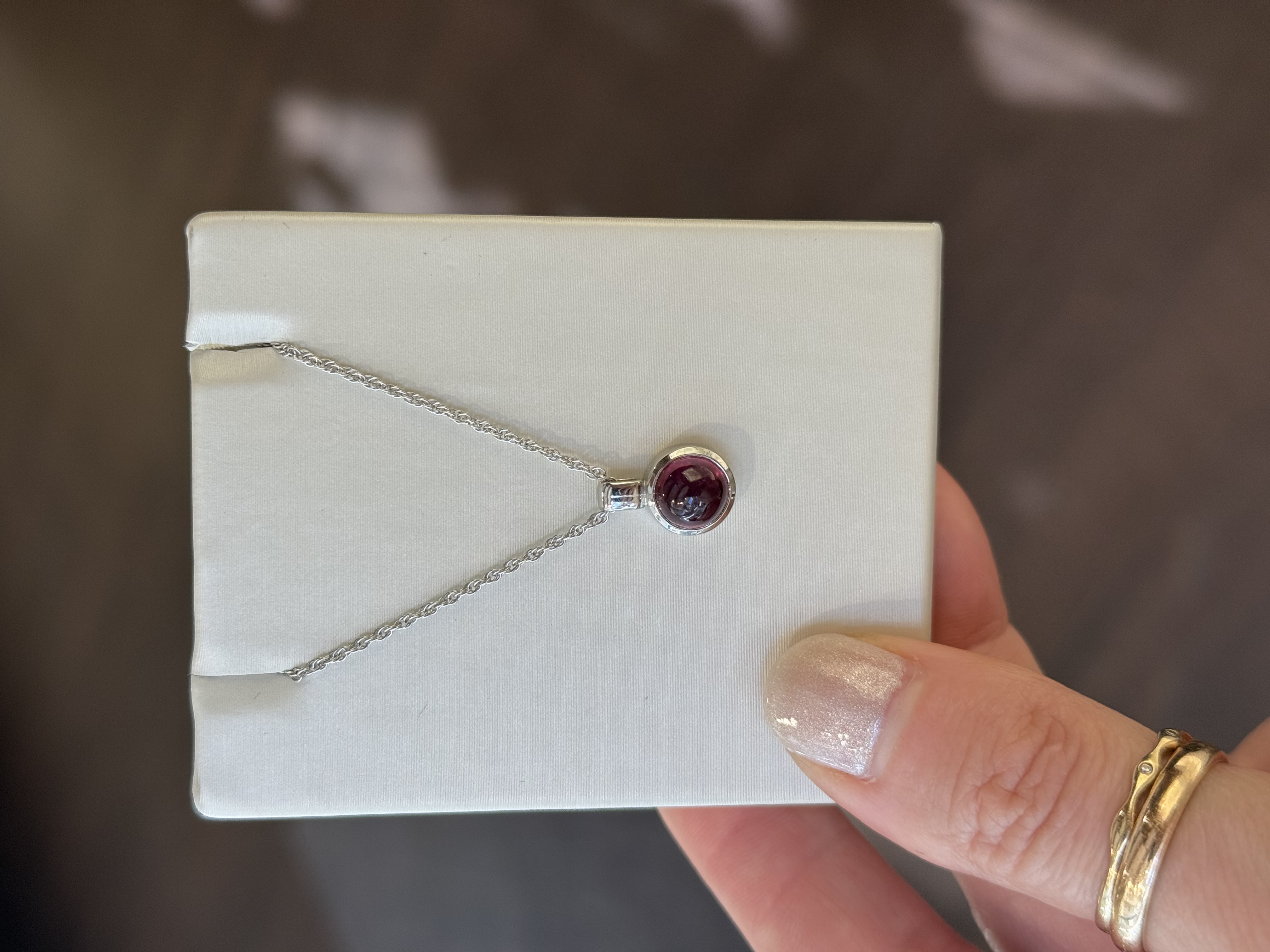 14KW GOLD "SUMMERWIND COLLECTION: JUICY GEMS" BEZEL SET CABAOCHON RHODOLITE GARNET PENDANT
