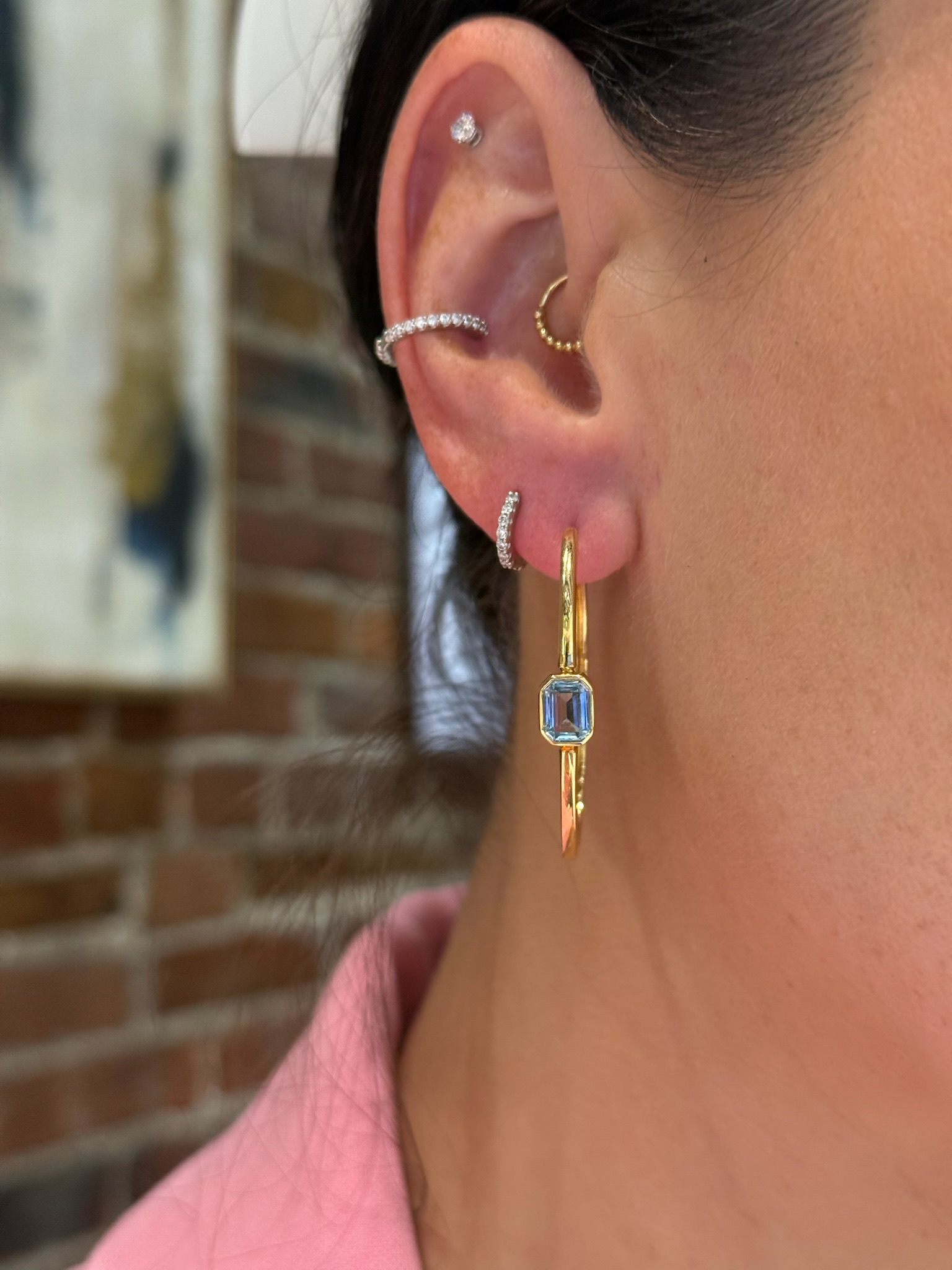 18KY GOLD HOOPS WITH BEZEL SET SKY BLUE TOPAZ 2.18CTTW