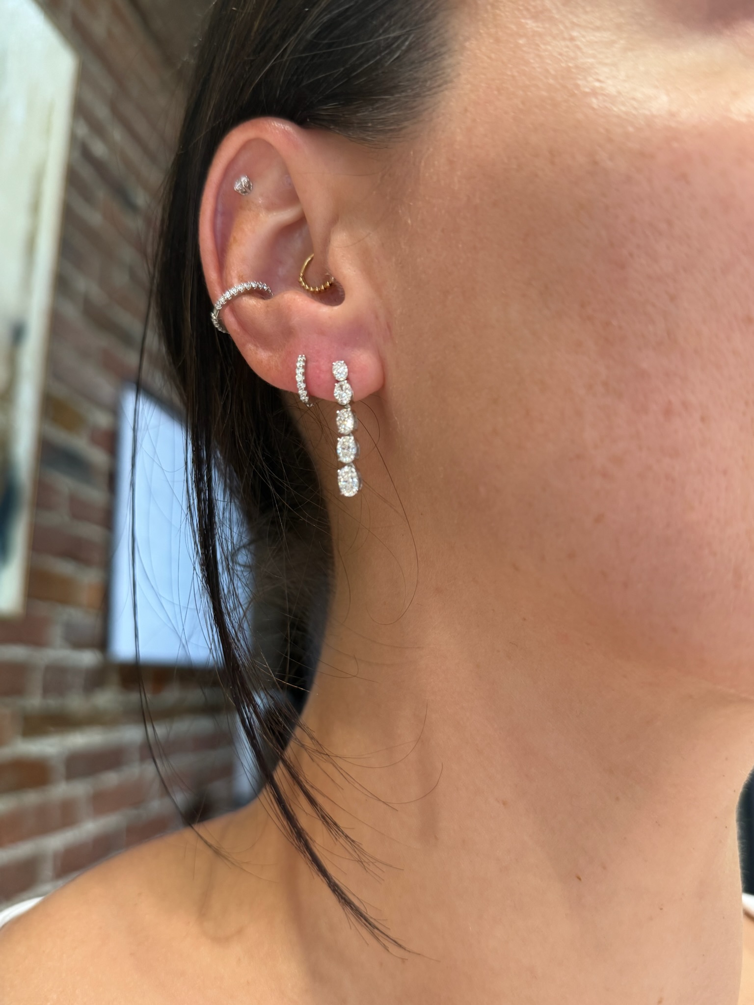 Description 14KW GOLD CASCADING OVAL DIAMOND DANGLE EARRINGS 1.90CTTW 14KT WHITE GOLD- 585, HIGH POLISH10= 1.90CTTW OVAL SHAPE DIAMONDS, G COLOR, SI-1 CLARITY, PRONG SETDOUBLE NOTCHED POST WITH FRICTON BACKS