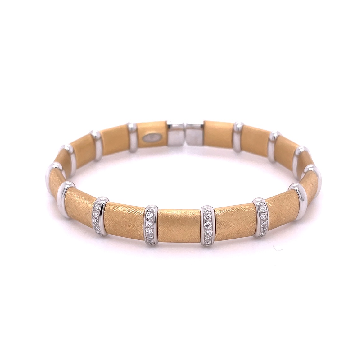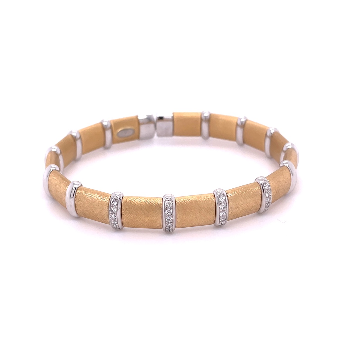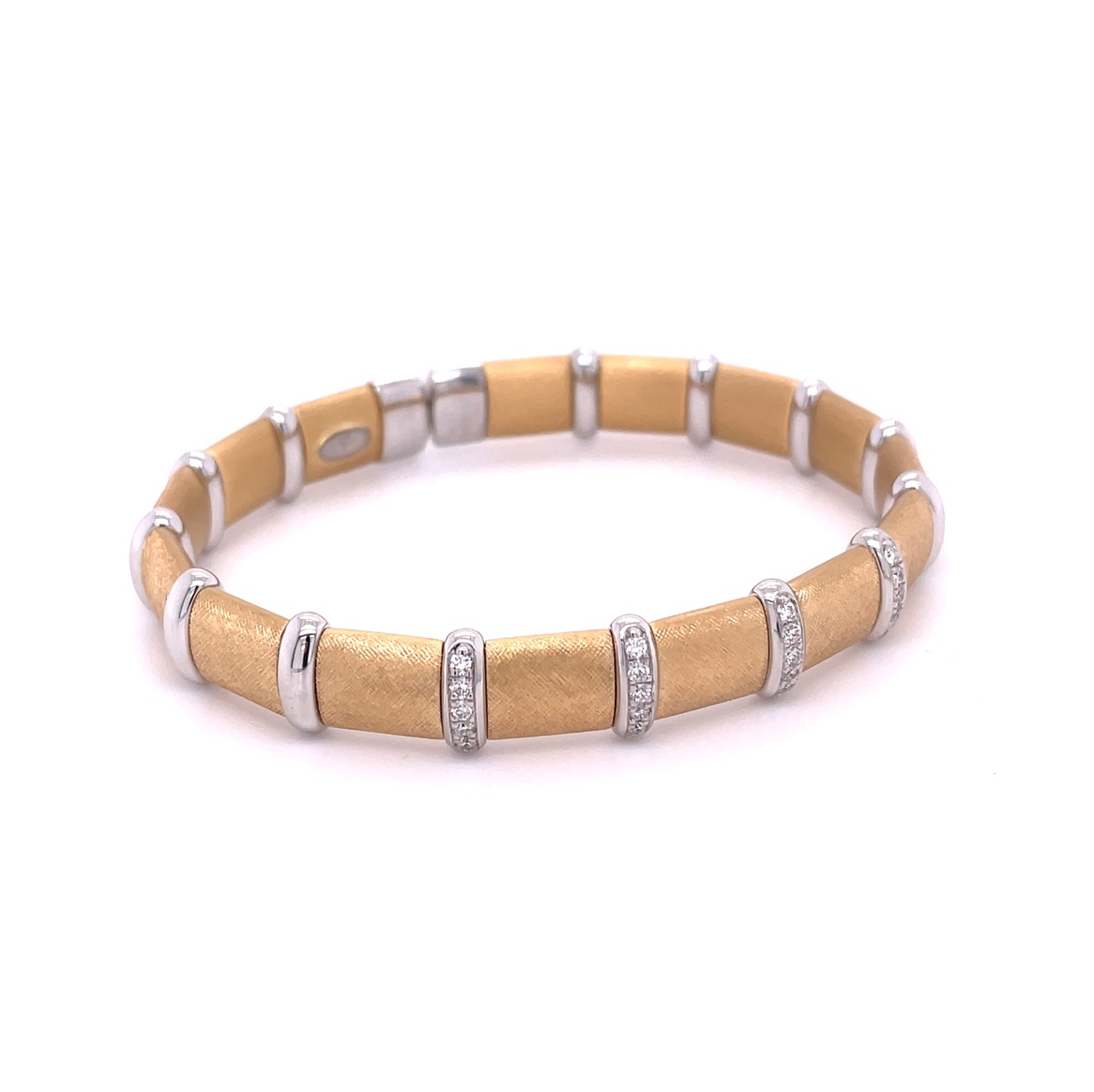 7" 18kt yellow & white gold 8mm hand-crafted "Henderson Legacy" venetian collection bangle bracelet with four single diamond bars