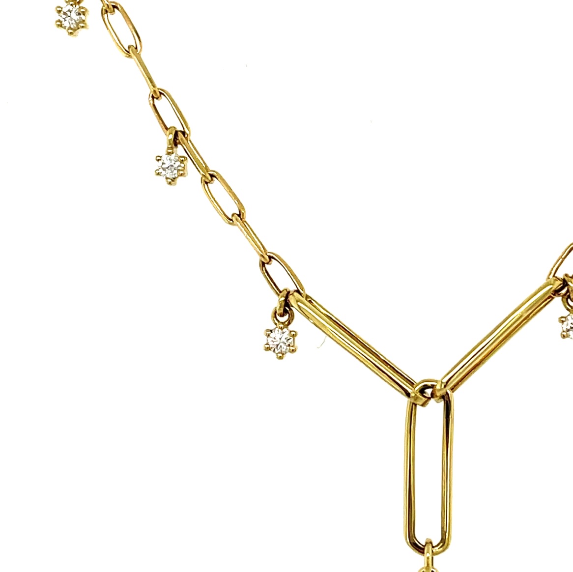 18" 14KY GOLD DIAMOND CIRCLE AND CHARM PAPER CLIP NECKLACE