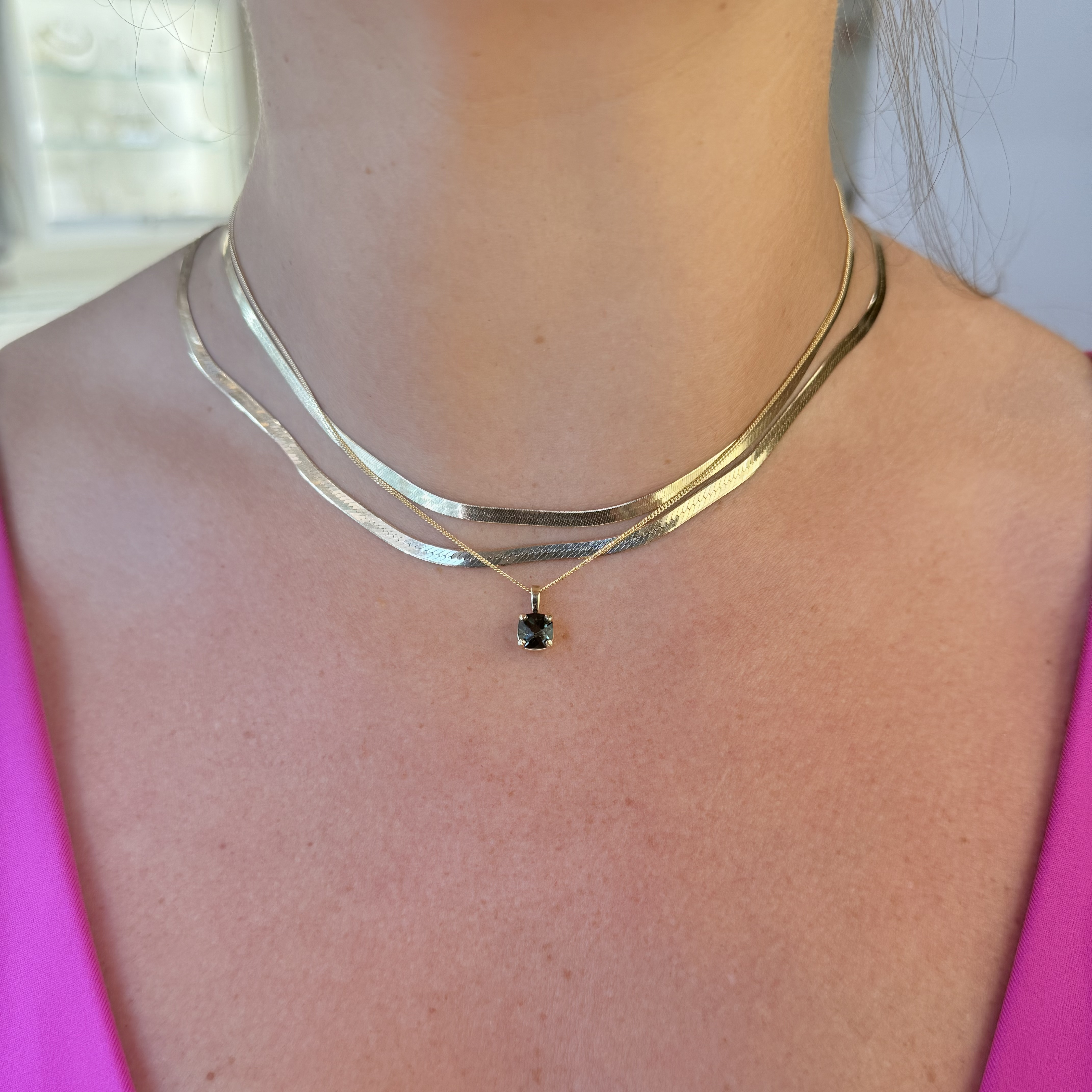 14KY GOLD "SUMMERWIND COLLECTION: JUICY GEMS" CUSHION MAINE GREEN TOURMALINE 4-PRONG PENDANT