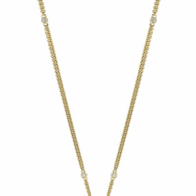 15 3/4" 18ky gold diamond fashion chain with .10cttw g-h, si round bezel set diamonds