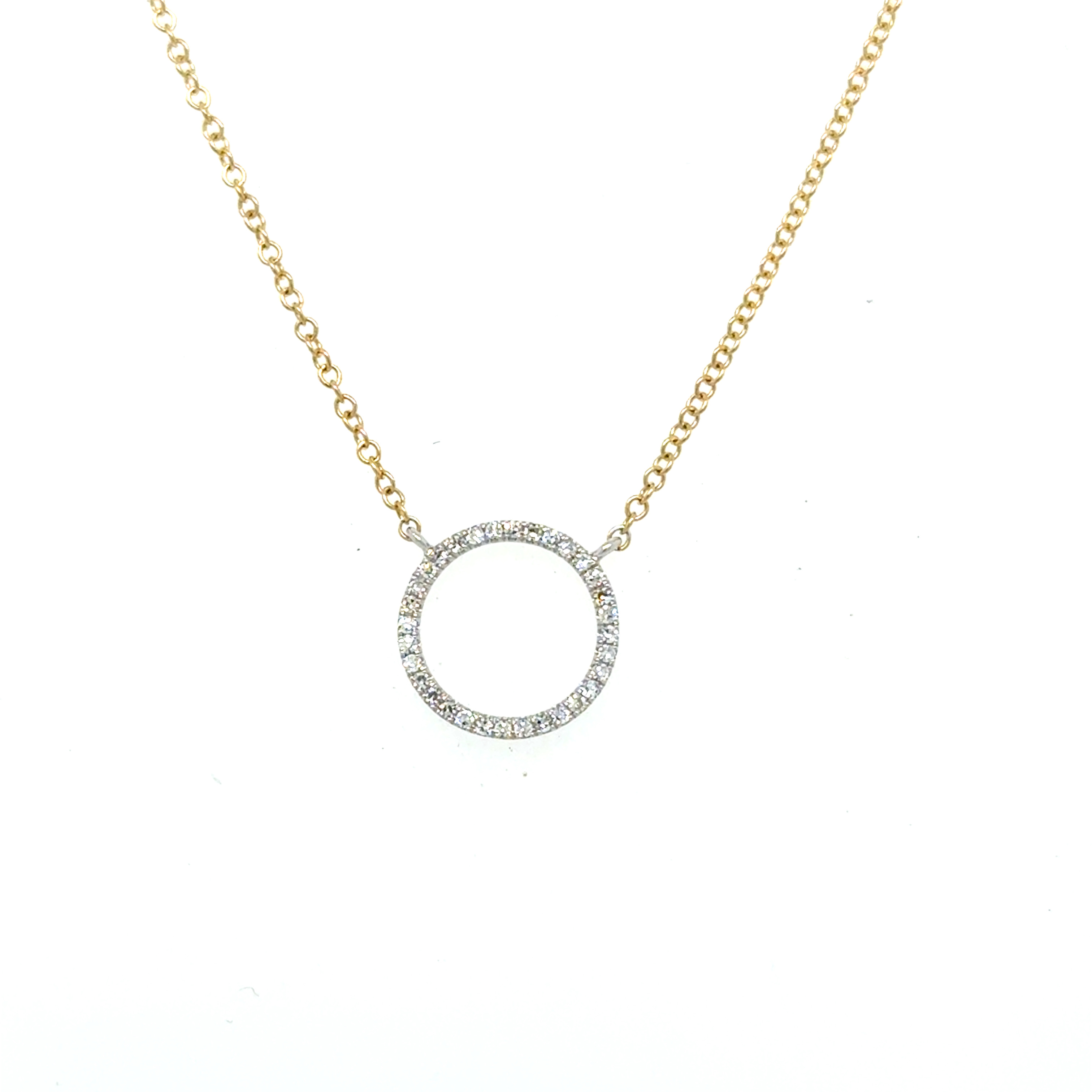 14KY&W GOLD 11MM DIAMOND CIRCLE PENDANT ON 14KY GOLD CABLE CHAIN