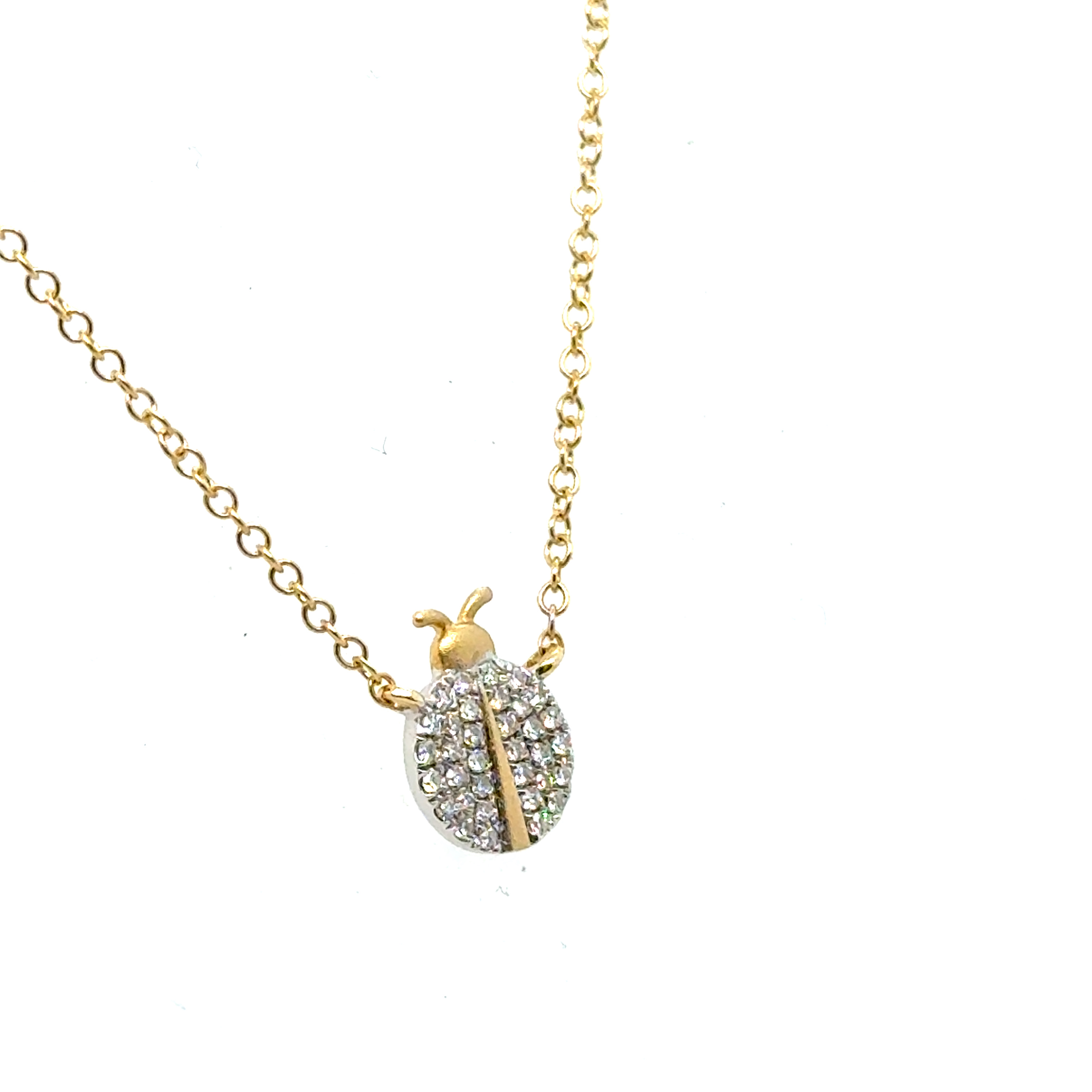 14KY&W GOLD PAVE DIAMOND LADY BUG PENDANT ON 14KY GOLD CABLE CHAIN