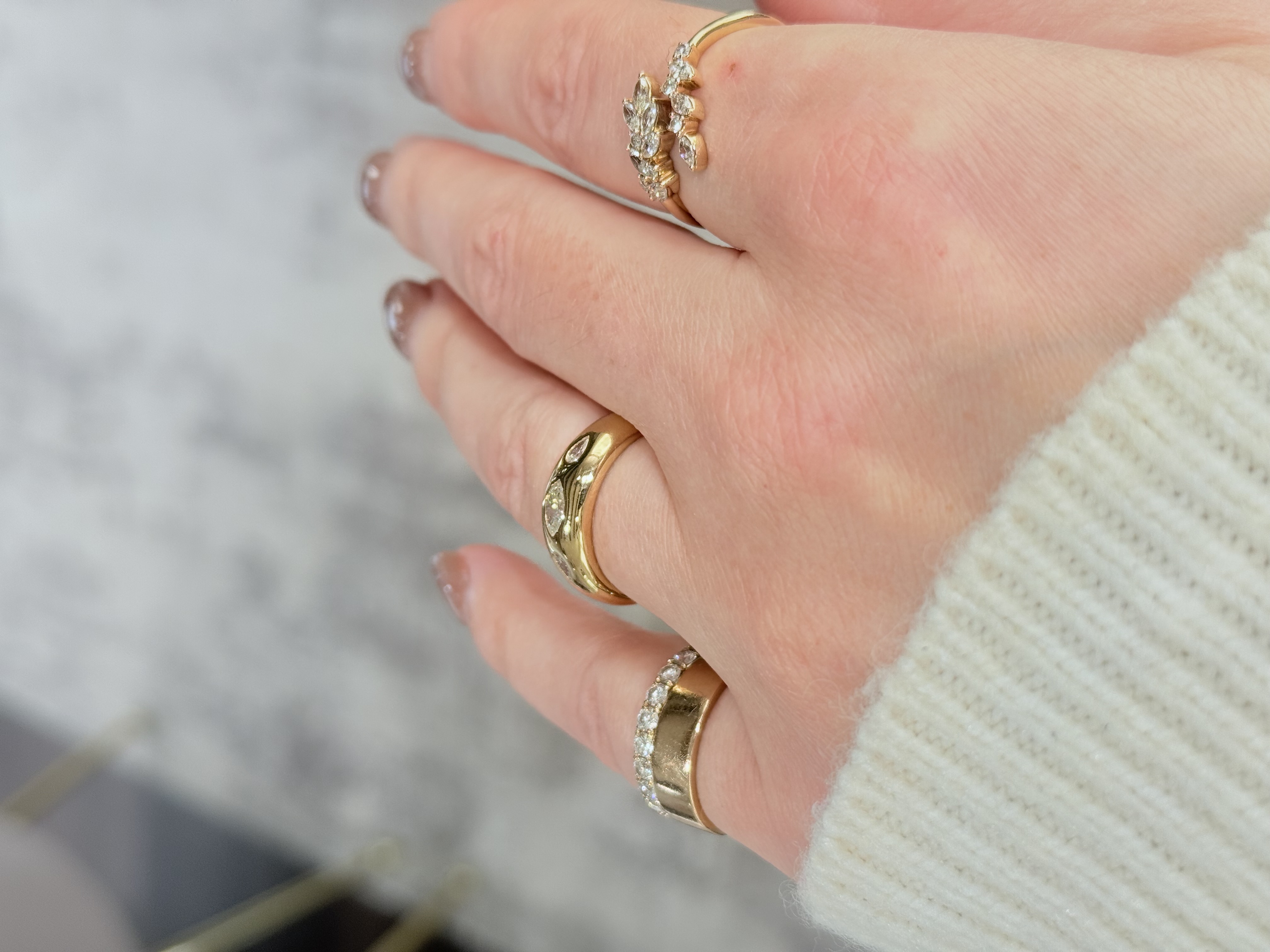 18KY GOLD DOMED FLUSH-SET DIAMOND BAND