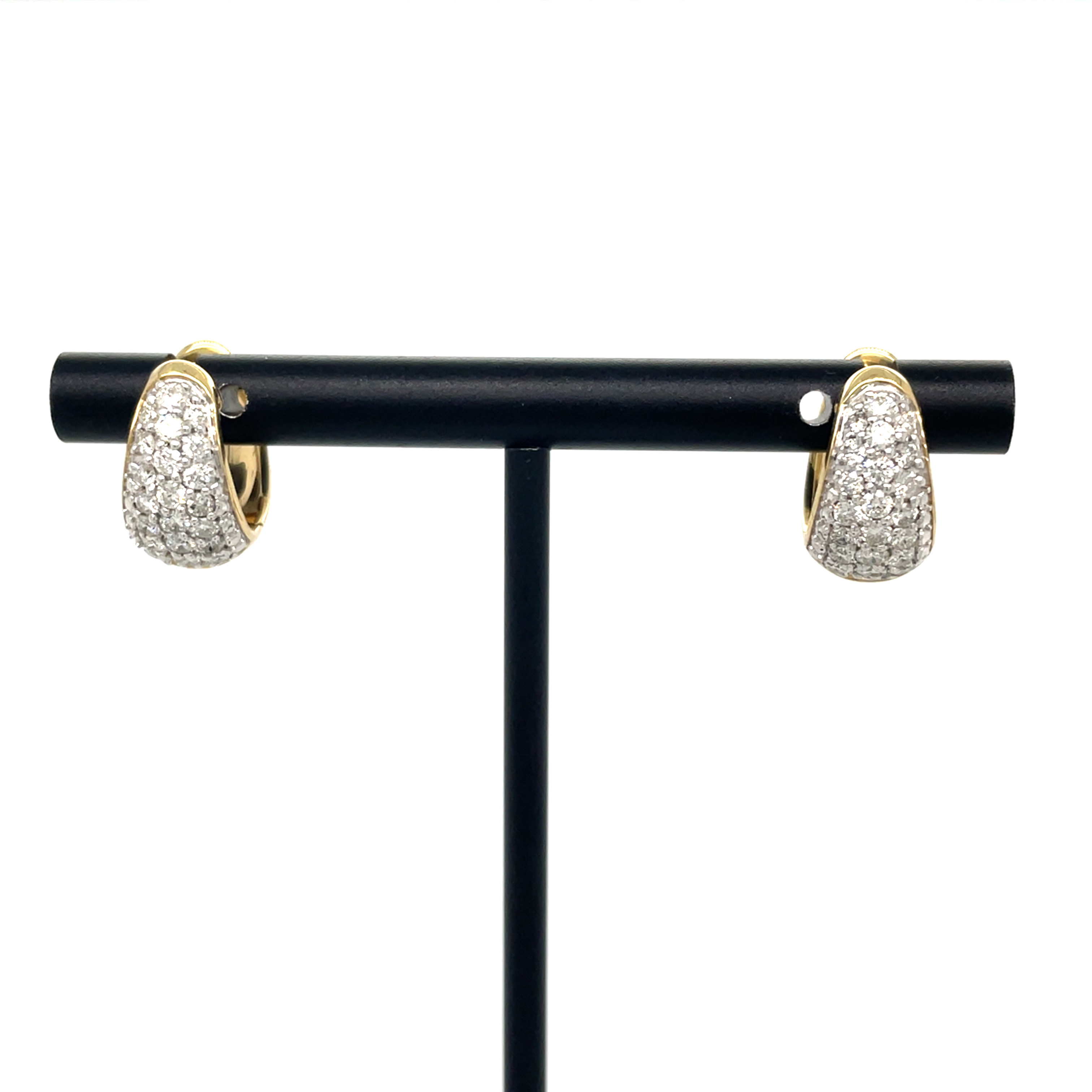14KY GOLD DOMED DIAMOND HUGGIE HOOP EARRINGS