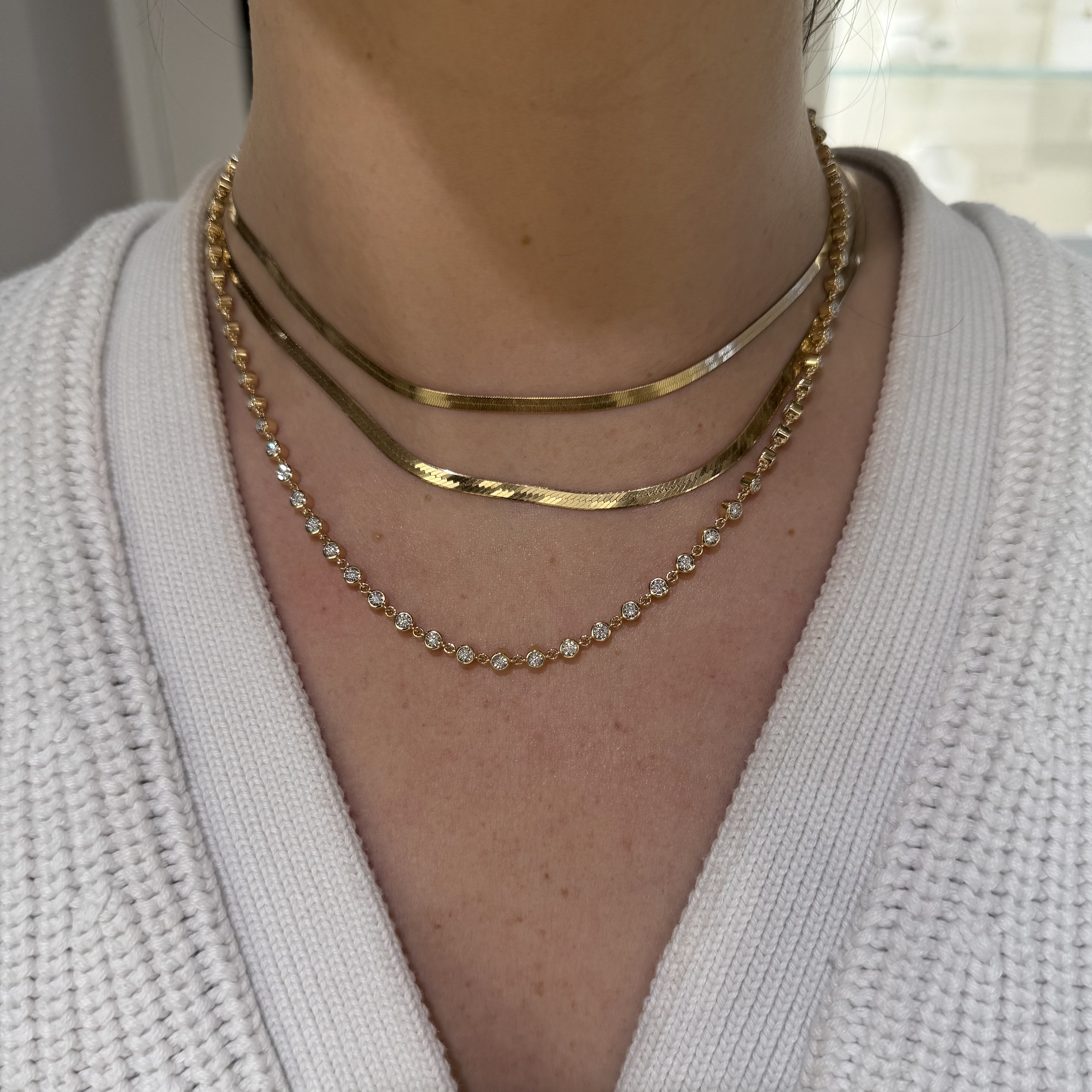 17-18" 14KY&W GOLD DOUBLE-SIDED ILLUSION BEZEL SET DIAMOND & LINK TENNIS NECKLACE