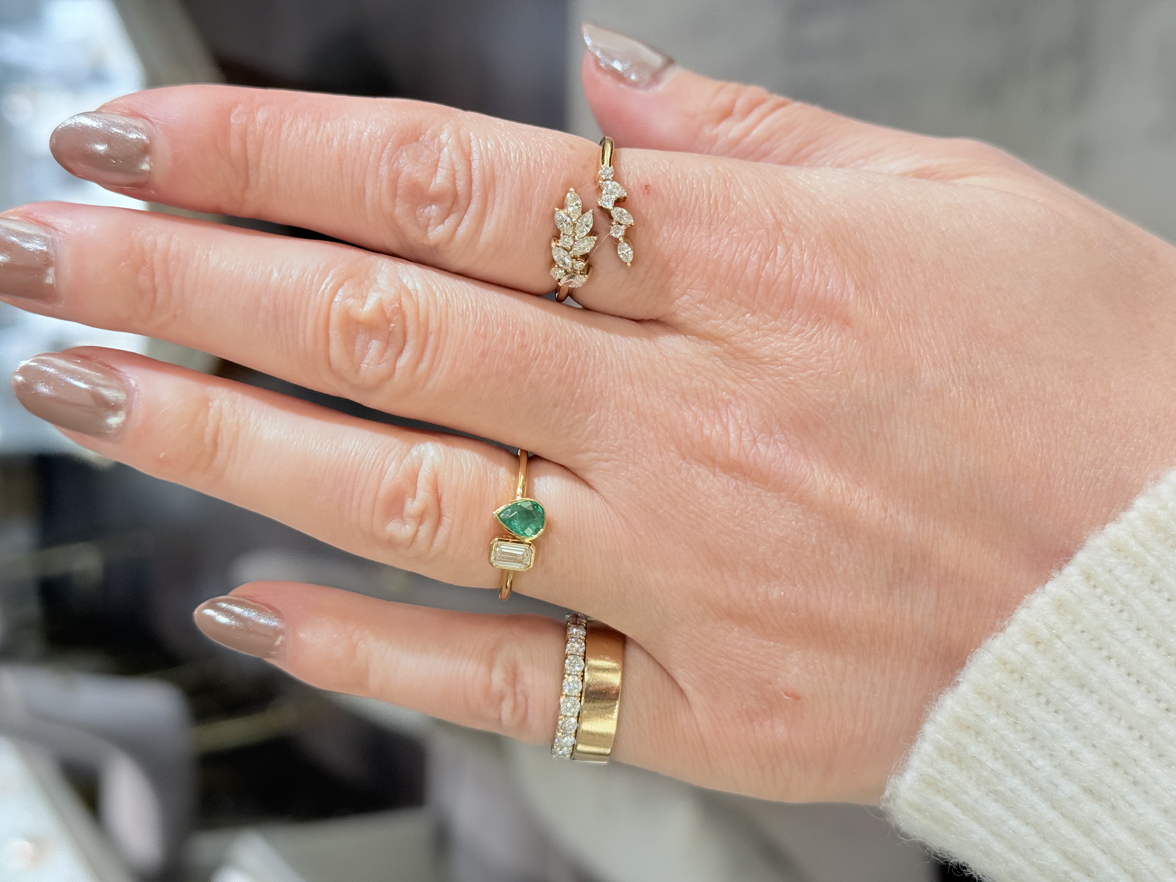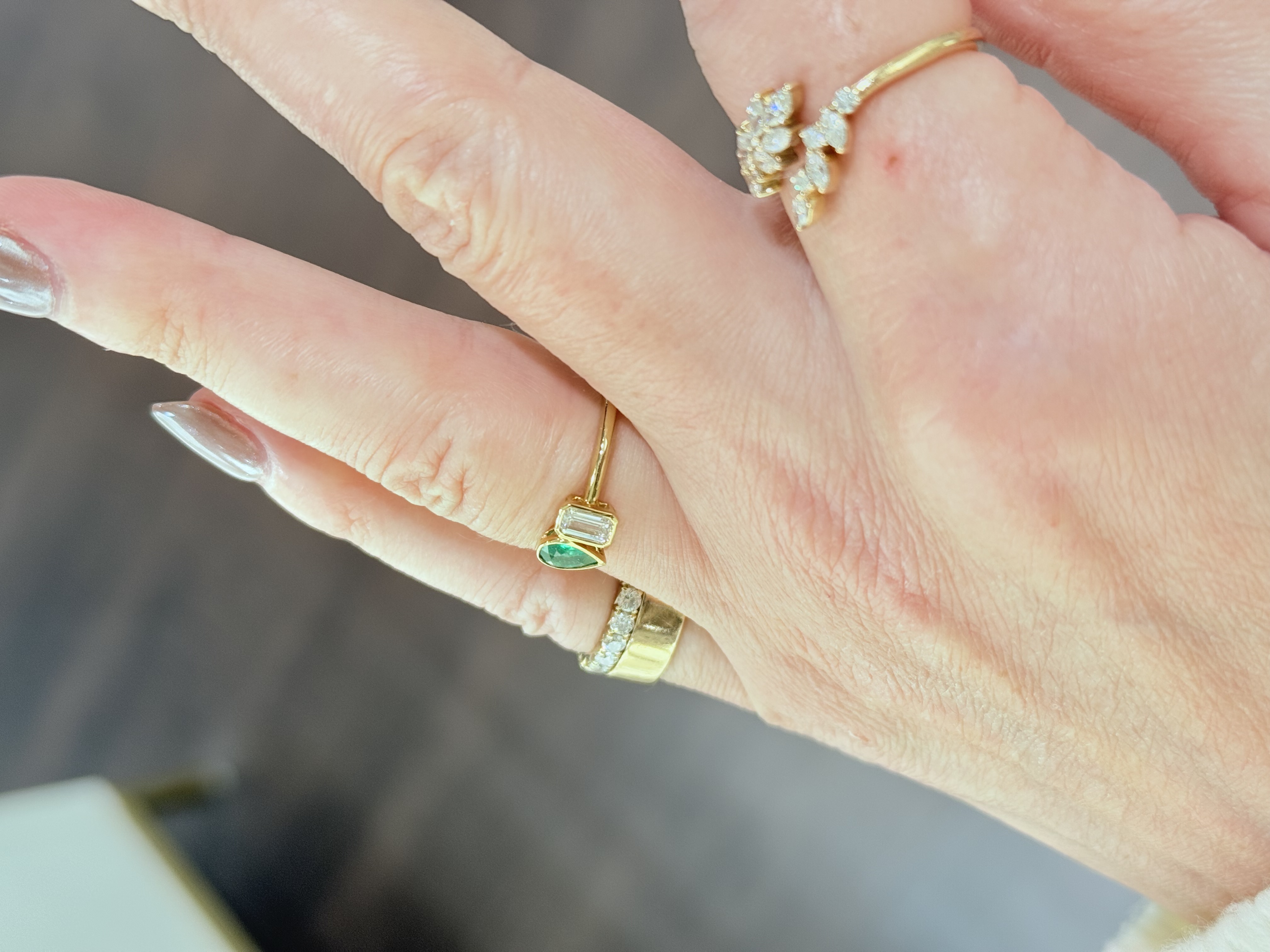 18KY GOLD BEZEL- SET TWO STONE DIAMOND & EMERALD RING